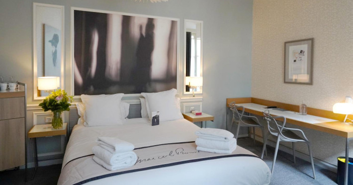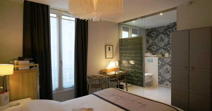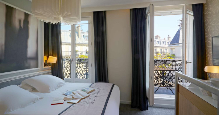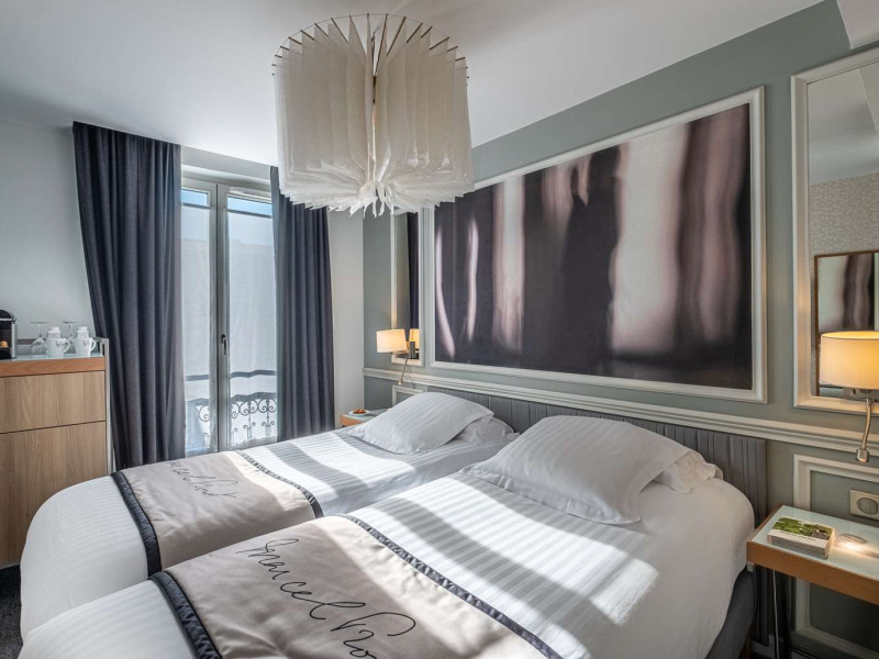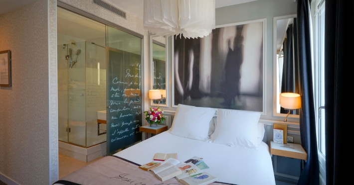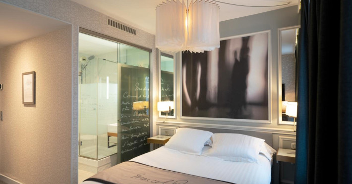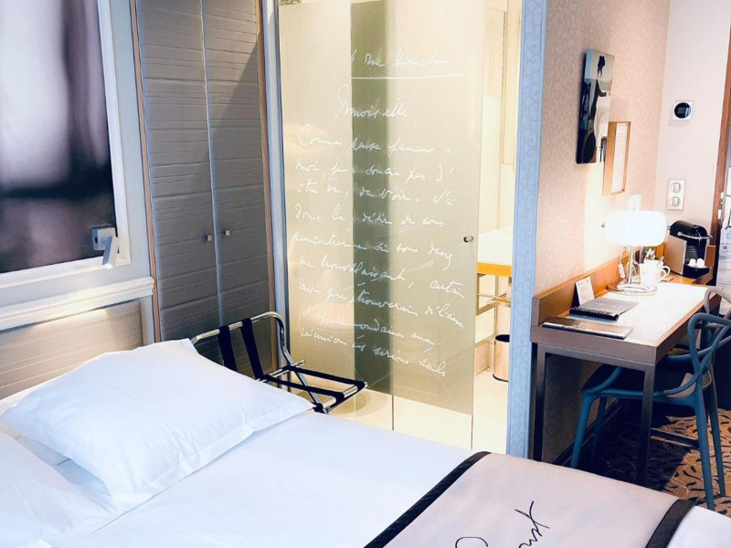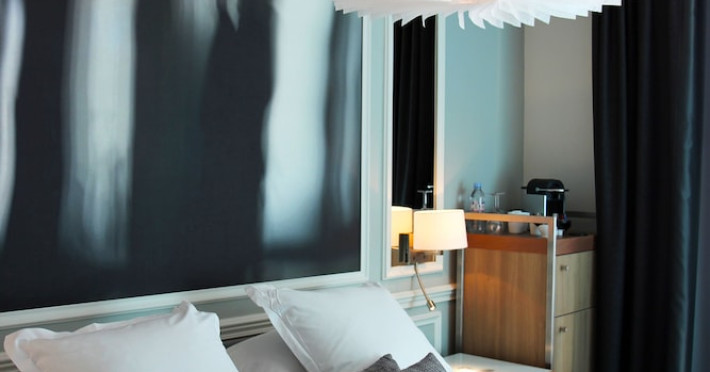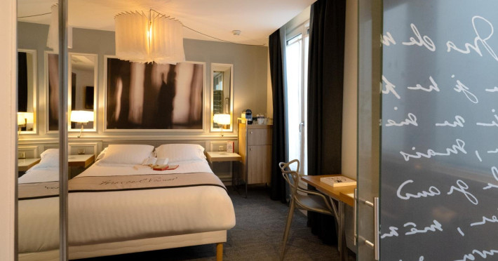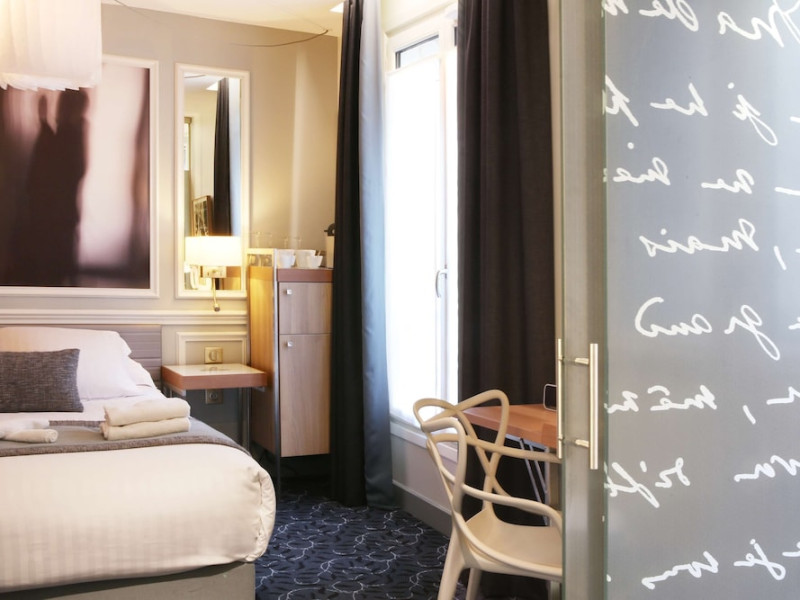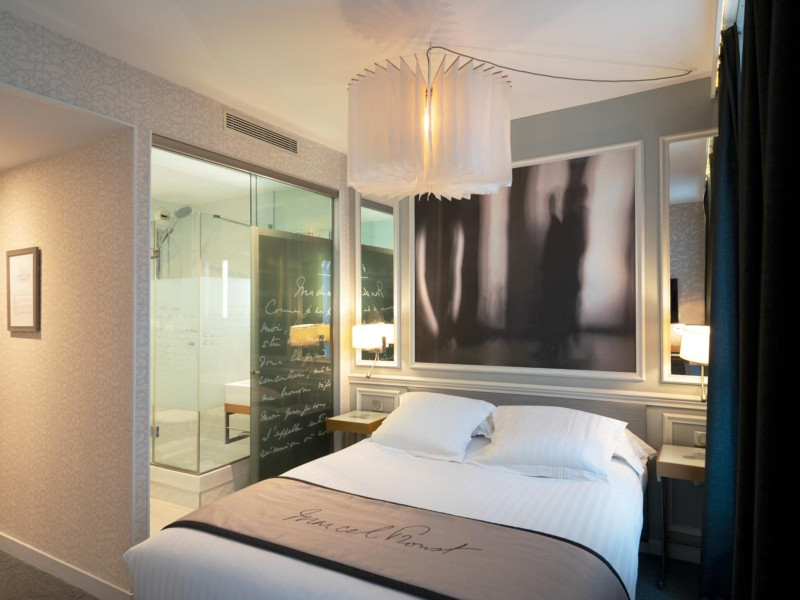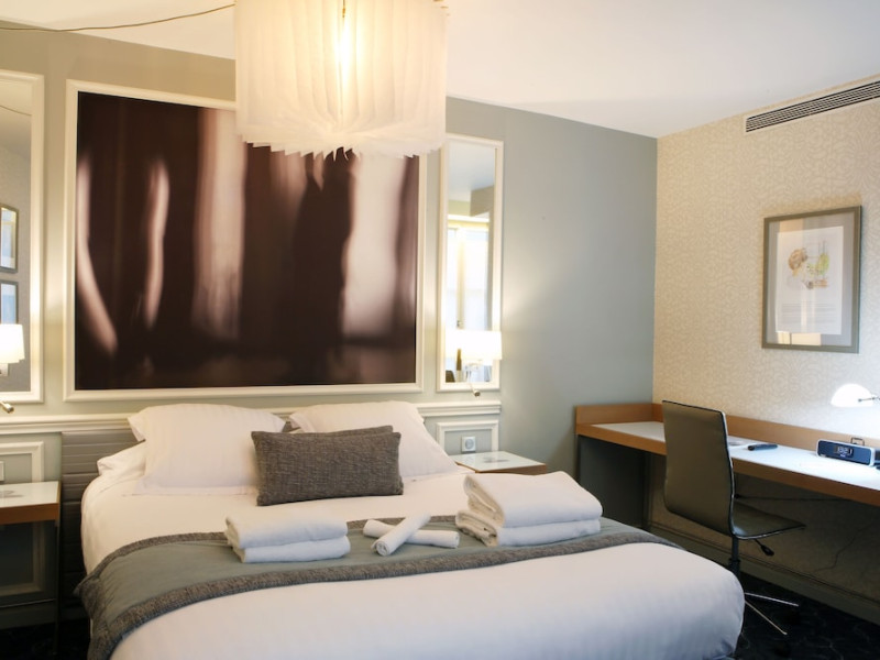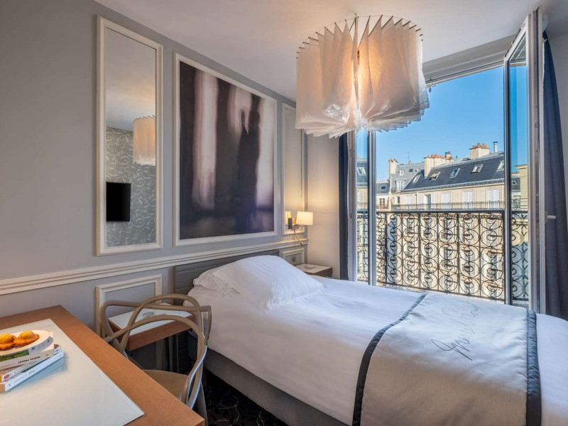 The Hôtel Littéraire Le Swann, BW Premier Collection, a fully refurbished 19th-century hotel (awarded at the 1898 World's Fair), is located in Paris' historic Luthier district, minutes from Gare Saint Lazare train station. This eco-certified hotel offers 81 air-conditioned rooms with flat-screen televisions, iPod docking stations, deep soaking bathtubs, rainfall showerheads, laptop-compatible safes, and complimentary newspapers. Amenities include complimentary wired and wireless internet access, a business center, a full-service spa, a bar/lounge, a snack bar/deli, room service (limited hours), a banquet hall, concierge services, and express check-out. A diverse buffet breakfast is served daily (7 AM to 10:30 AM, fee applies). The hotel features a lovely lobby under an Art Deco glass ceiling and a literary theme honoring Marcel Proust. Nearby attractions include Parc Monceau, Boulevard Haussmann, Place de Clichy, Theatre Mogador, Printemps Department Store, Galeries Lafayette, Rue du Faubourg Saint-Honore, Grands Boulevards, Palais Garnier, Moulin Rouge, La Machine du Moulin Rouge, Place de la Madeleine, Paris Olympia, Rue de Rivoli, Champs-Élysées, and easy access to La Défense, western suburbs, and other major tourist attractions. Metro Station Europe is a 2-minute walk away. The nearest airports are Paris Orly (ORY), Paris Charles de Gaulle (CDG), Paris Beauvais (BVA), and Paris (XCR-Chalons-Vatry). The Hotel Litteraire Le Swann, Bw Premier Collection is a Tourist hotel. The nightlife/restaurants are located in the hotel.