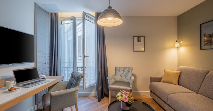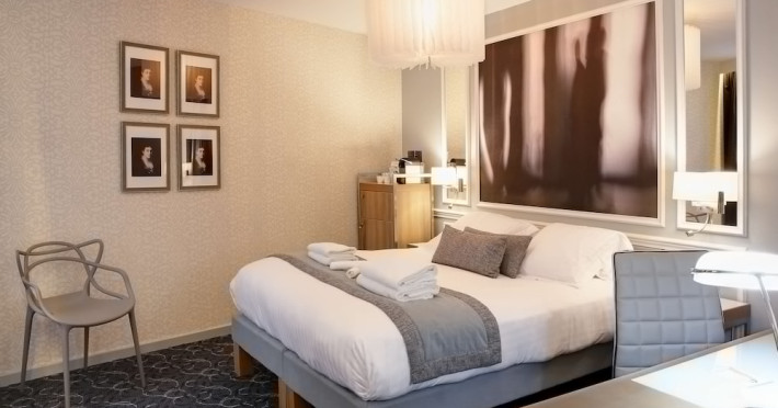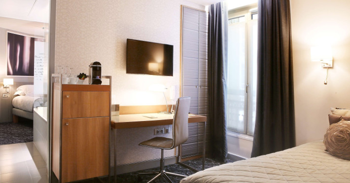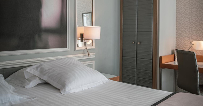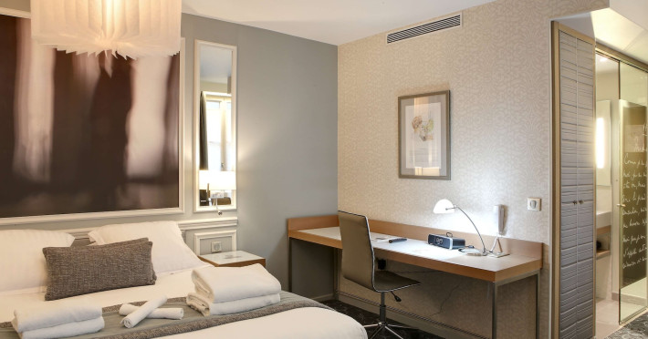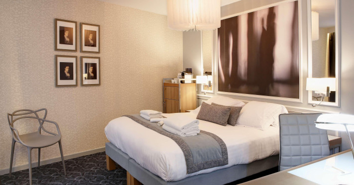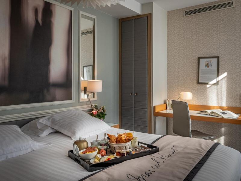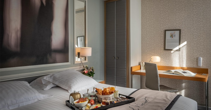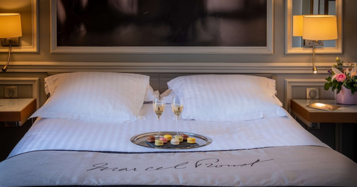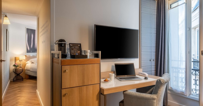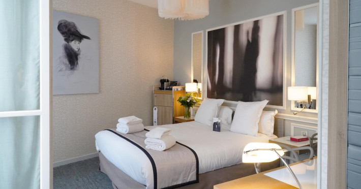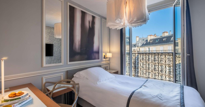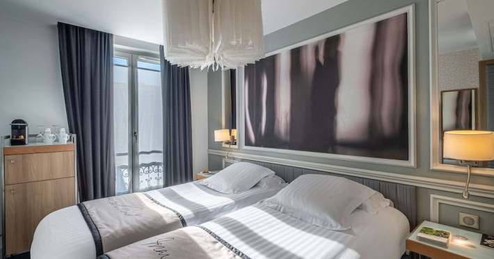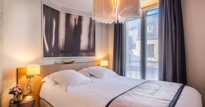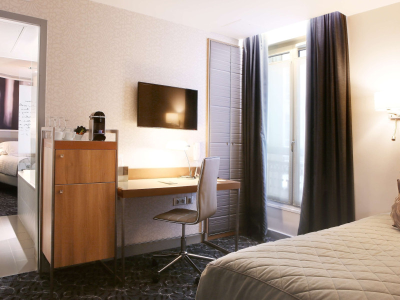 The Hôtel Littéraire Le Swann, BW Premier Collection, a fully refurbished 19th-century hotel (awarded at the 1898 World's Fair), is located in Paris' historic Luthier district, minutes from Gare Saint Lazare train station. This eco-certified hotel offers 81 air-conditioned rooms with flat-screen televisions, iPod docking stations, deep soaking bathtubs, rainfall showerheads, laptop-compatible safes, and complimentary newspapers. Amenities include complimentary wired and wireless internet access, a business center, a full-service spa, a bar/lounge, a snack bar/deli, room service (limited hours), a banquet hall, concierge services, and express check-out. A diverse buffet breakfast is served daily (7 AM to 10:30 AM, fee applies). The hotel features a lovely lobby under an Art Deco glass ceiling and a literary theme honoring Marcel Proust. Nearby attractions include Parc Monceau, Boulevard Haussmann, Place de Clichy, Theatre Mogador, Printemps Department Store, Galeries Lafayette, Rue du Faubourg Saint-Honore, Grands Boulevards, Palais Garnier, Moulin Rouge, La Machine du Moulin Rouge, Place de la Madeleine, Paris Olympia, Rue de Rivoli, Champs-Élysées, and easy access to La Défense, western suburbs, and other major tourist attractions. Metro Station Europe is a 2-minute walk away. The nearest airports are Paris Orly (ORY), Paris Charles de Gaulle (CDG), Paris Beauvais (BVA), and Paris (XCR-Chalons-Vatry). The Hotel Litteraire Le Swann, Bw Premier Collection is a Tourist hotel. The nightlife/restaurants are located in the hotel.