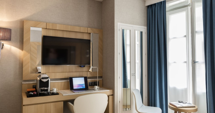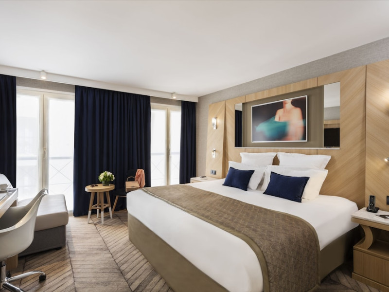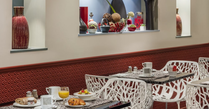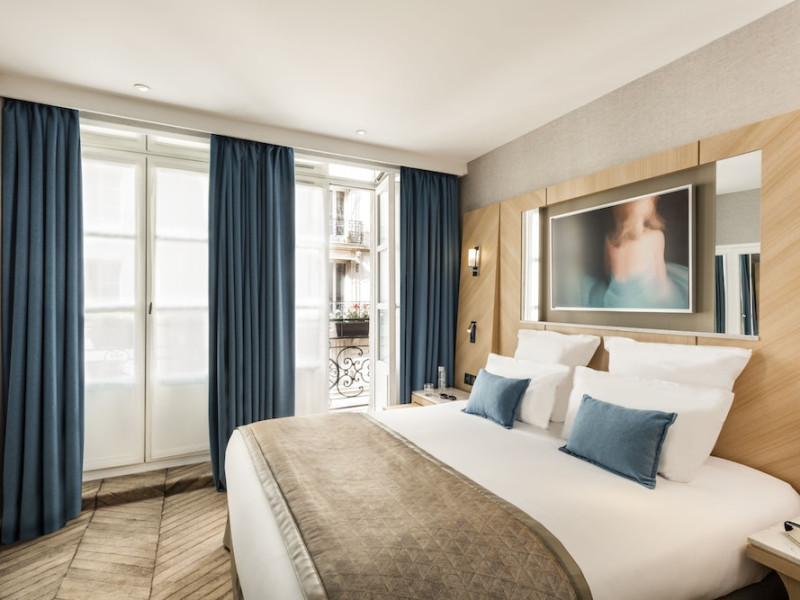 Centrally located in Paris's 1st arrondissement on Rue St. Honoré, Hotel Louvre Saint Honoré is housed in an 18th-century building, steps from the Louvre and Palais Royal. Châtelet metro station is nearby, providing convenient access to the city. The hotel offers complimentary wireless internet access, concierge services, express check-in/check-out, and dry cleaning/laundry services. Guests can enjoy a drink at the bar/lounge. Buffet breakfasts are available daily (surcharge). A roundtrip airport shuttle is available 24 hours (surcharge). The hotel is smoke-free.