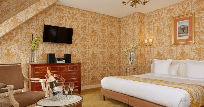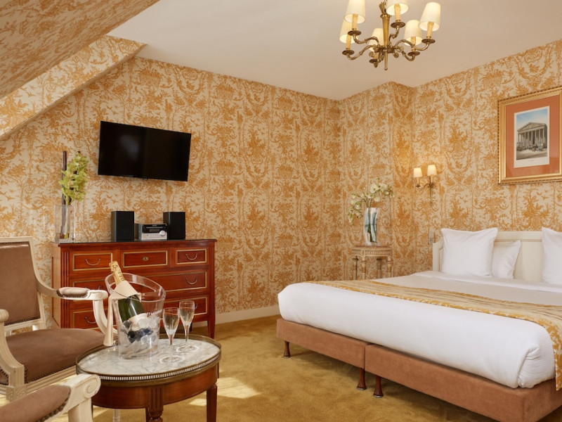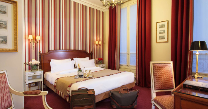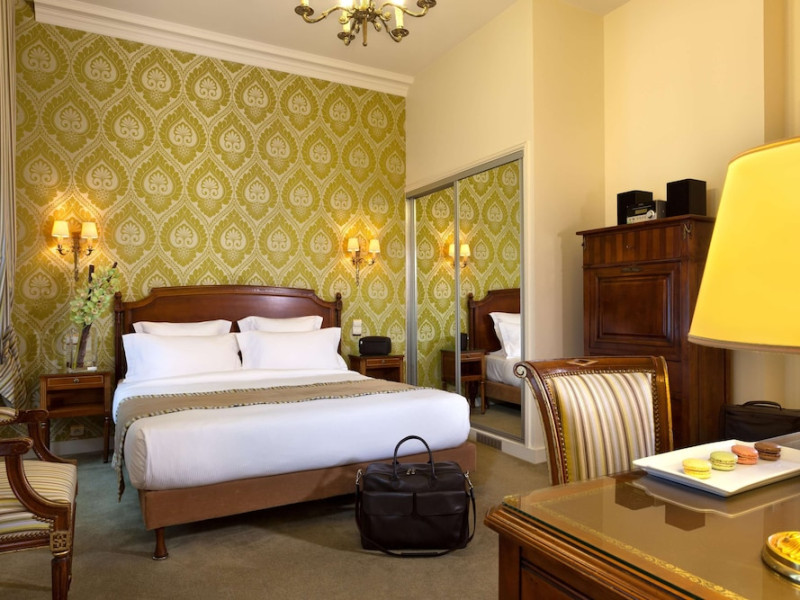 Located in central Paris, Hotel Mayfair is a 4-star Beaux Arts hotel within a 15-minute walk of the Orsay Museum and Palais Royal. This hotel offers complimentary wireless internet access, concierge services, and babysitting (surcharge). Guests can enjoy a drink at the bar/lounge, and a buffet breakfast is available daily for a fee. The hotel features a business center, express check-in, and express check-out. For events, the hotel offers conference space and a meeting room. An airport shuttle is available 24 hours (surcharge). The hotel has 47 individually decorated, air-conditioned and soundproofed guestrooms featuring minibars, LCD televisions with satellite programming, phones, laptop-compatible safes, and desks. Private bathrooms include bathtubs, complimentary toiletries, and hair dryers. Room service is available during limited hours. Guests can enjoy massages and facials at the spa. The Tuileries Garden is a short walk away, and the Concorde Metro Station provides access to the Champs Elysées. On-site parking is available. Additional amenities include luggage storage, safety deposit boxes, laundry and dry cleaning services, daily housekeeping, and a fitness center. Smoking is prohibited throughout the property. The Hotel Mayfair Paris is a Tourist hotel. The nightlife/restaurants are located in the hotel.