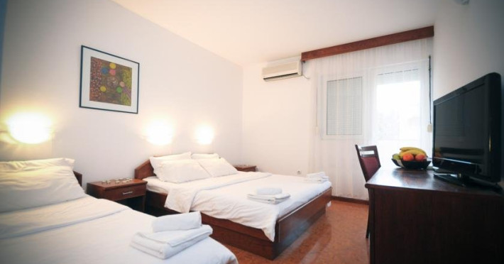 Descriere: Garni Hotel MB este situat in orasul de coasta Budva, la 350 de metri de plaja.Localizare: Acest hotel este la 3 minute pe jos fata de plaja.Facilitati hotel: cafenea, restaurant, terasa, receptie non-stop, parcare privata gratuita si pazitaDotari camere: camere cu balcon, aer conditionat, internet, seif, TV prin cablu, baie privata cu uscatorWebsite: http://www.hotelmb.co.me/