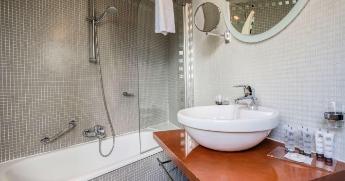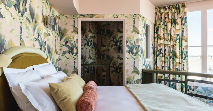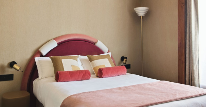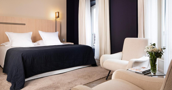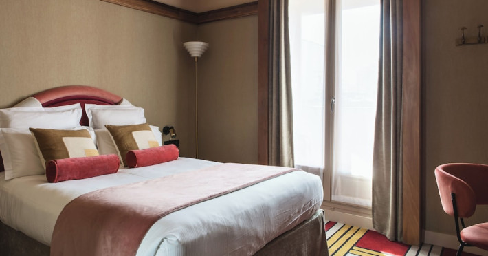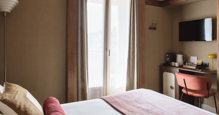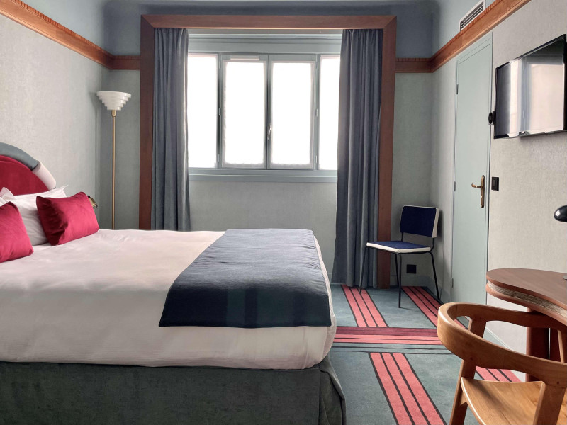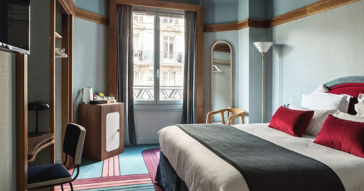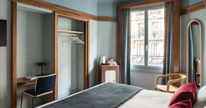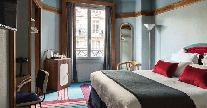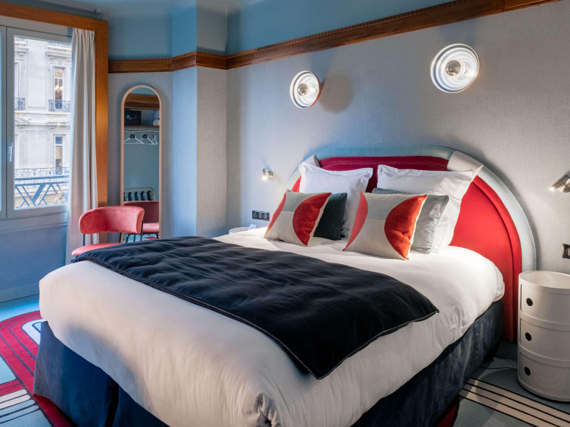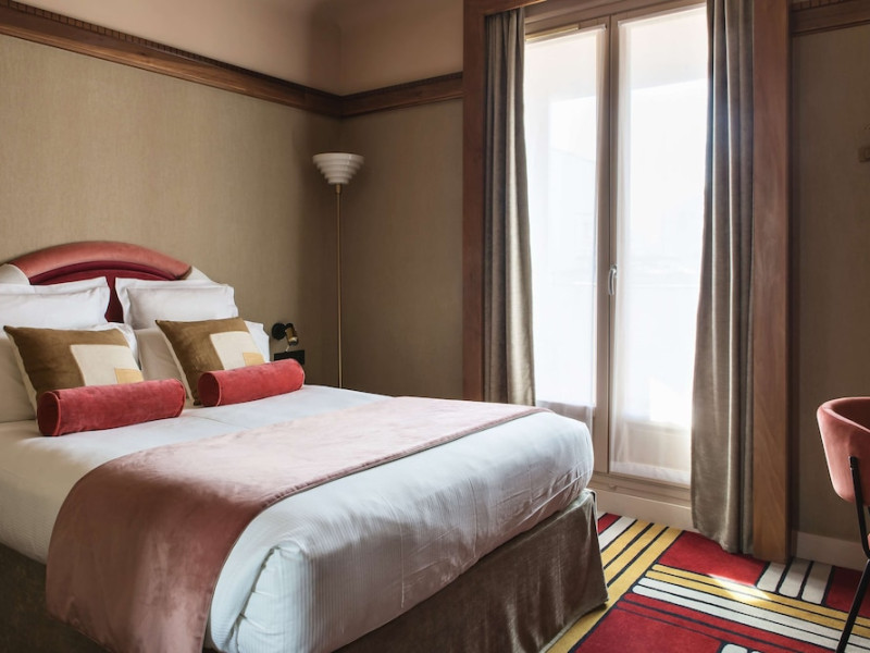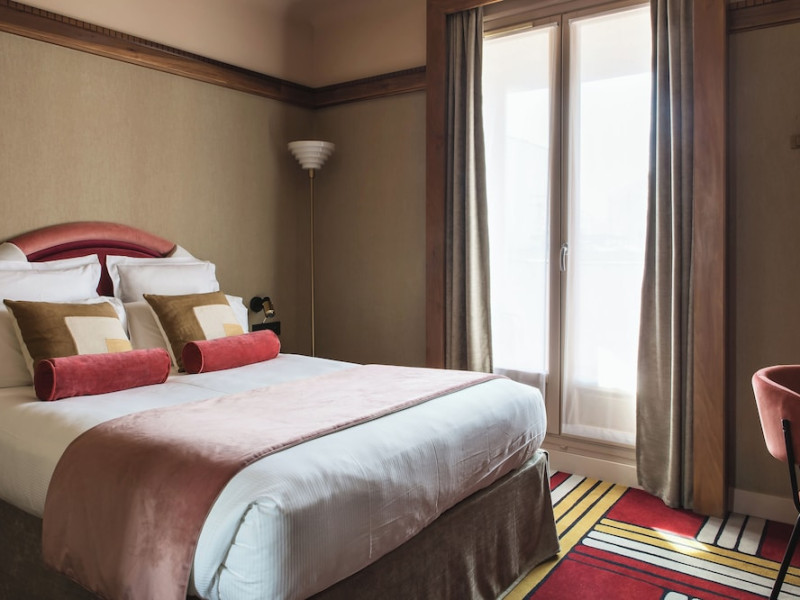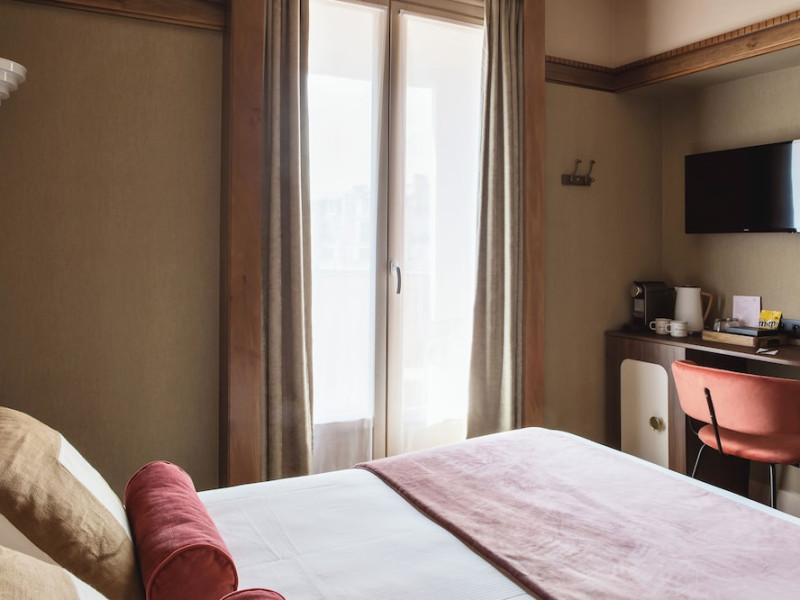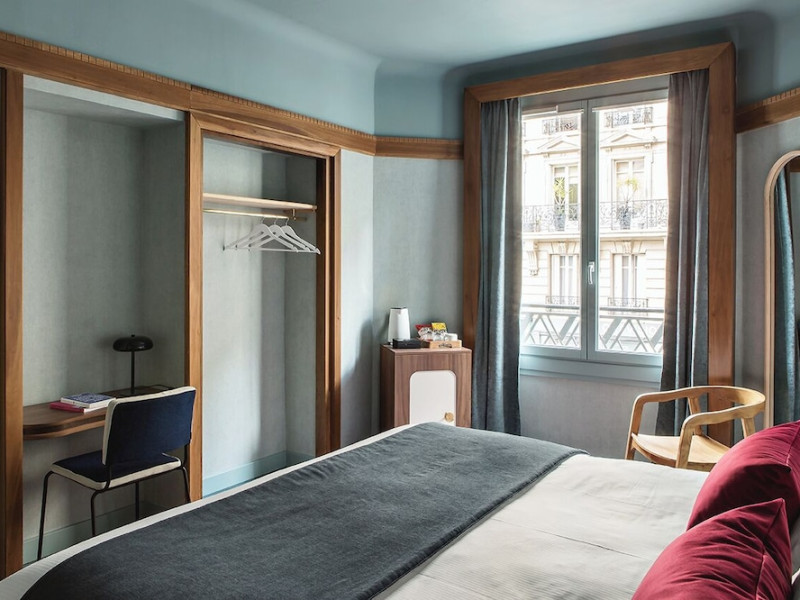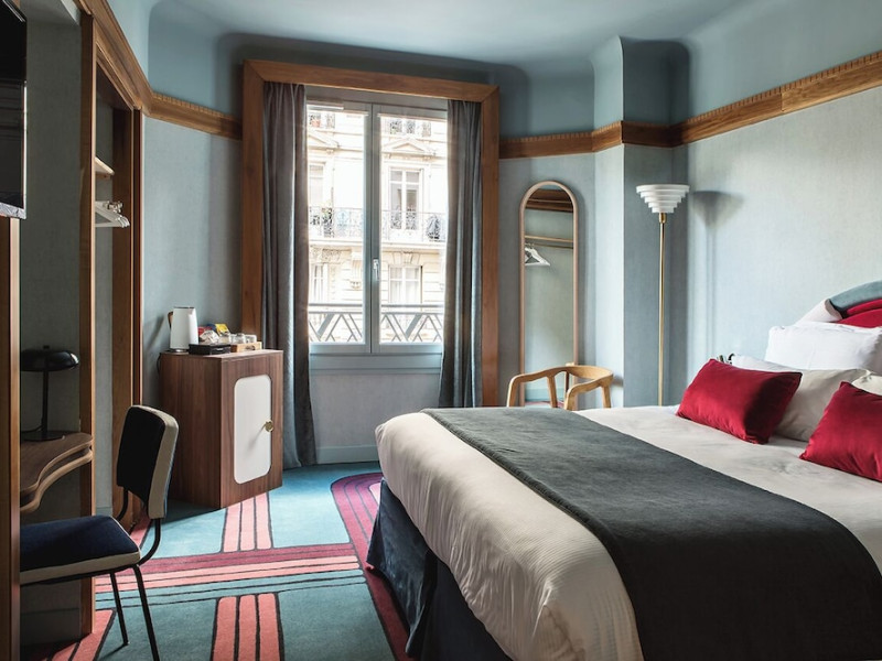 Hôtel Mercedes, a completely refurbished 1930s Art Deco hotel in the heart of Paris, is located a short distance from the Champs-Élysées and Arc de Triomphe. This eco-certified hotel features 37 individually furnished guestrooms, each with a pillowtop bed, premium bedding, minibar, espresso maker, 26-inch flat-screen TV with satellite programming, free Wi-Fi, and a private bathroom with rainfall showerhead and complimentary toiletries. Amenities include complimentary Wi-Fi, concierge services, room service (limited hours), a daily buffet breakfast (fee applies), express check-in/check-out, complimentary lobby newspapers, and a 24-hour airport shuttle (surcharge). The hotel is a 2-minute walk from Wagram Metro Station and a 10-minute walk from Parc Monceau. Nearby attractions include Rue du Faubourg Saint-Honore (0.9 km), Boulevard Haussmann (1.5 km), and Palais des Congrès de Paris (1.7 km). Paris Charles de Gaulle Airport (CDG) is the preferred airport. The Hotel Mercedes is a Tourist hotel. The nightlife/restaurants are easily accessible by taxi or bus from the hotel.