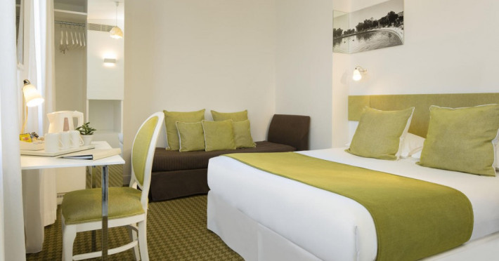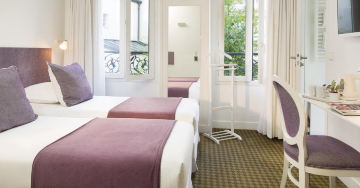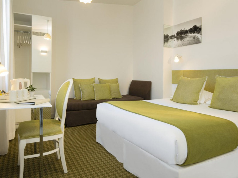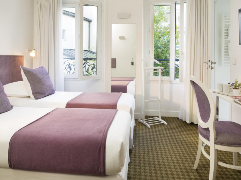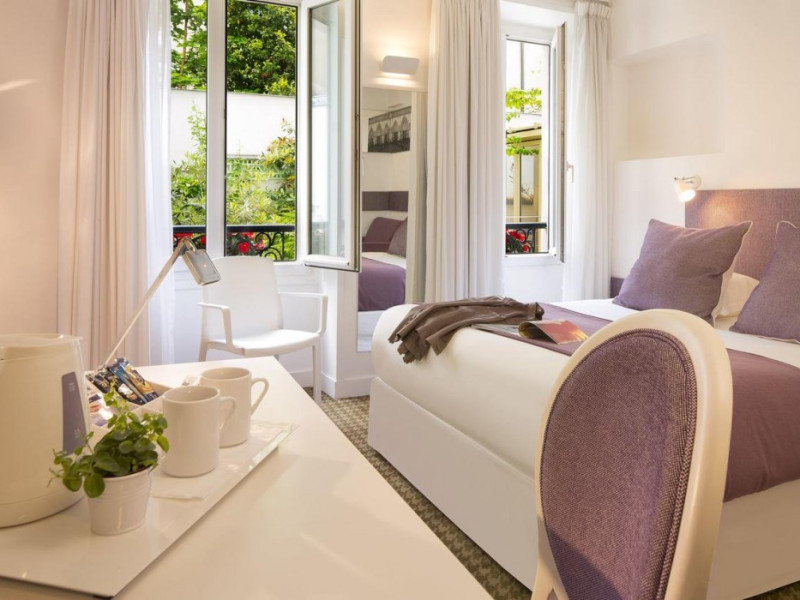 Located in the Montparnasse area, Hôtel Mistral offers a blend of modern comfort and aesthetic appeal in a peaceful setting. The hotel is close to the Montparnasse Train Station and the Gaîté Metro stop, providing easy access to attractions like the Montparnasse Tower and Luxembourg Gardens. The hotel features 37 air-conditioned guest rooms with complimentary wired and wireless internet access, satellite TV, a minibar, a telephone, a safe, and a desk. Private bathrooms include complimentary toiletries and a hair dryer. Guests can enjoy a garden, terrace, bar/lounge, and arcade/game room. Amenities include a 24-hour front desk, concierge services, luggage storage, and a computer station. A cooked-to-order or buffet breakfast is available for a fee. The hotel offers airport shuttle service for a surcharge and provides services such as dry cleaning and laundry. The Hotel Mistral is a hotel.