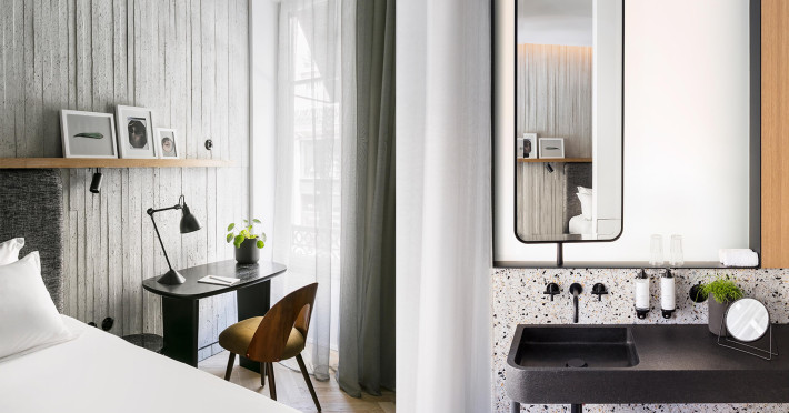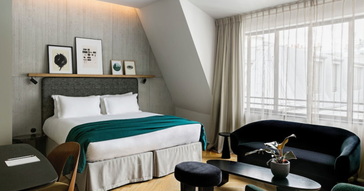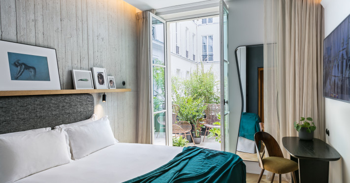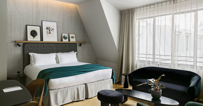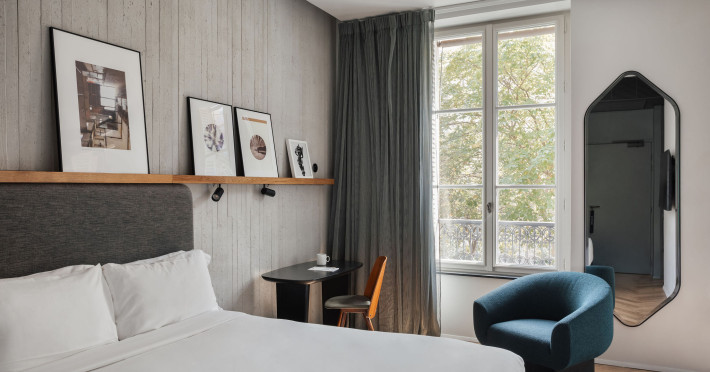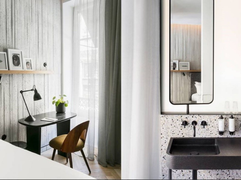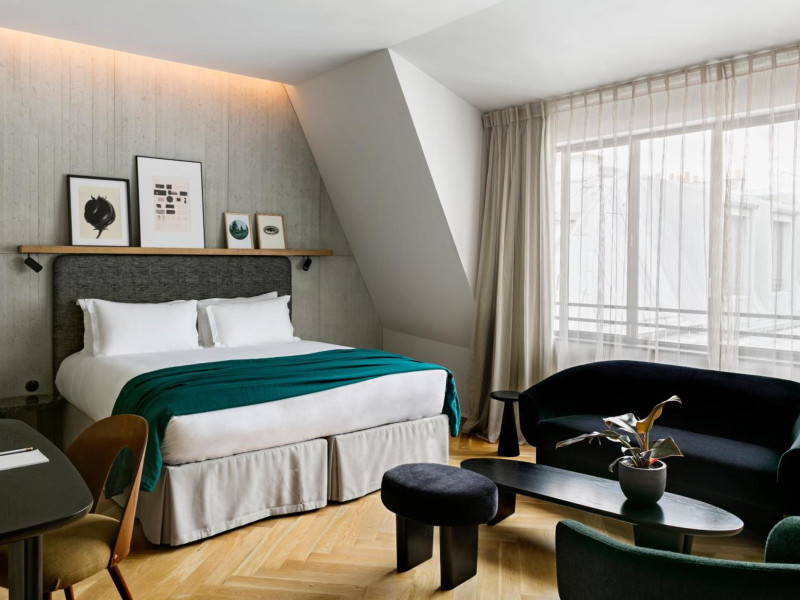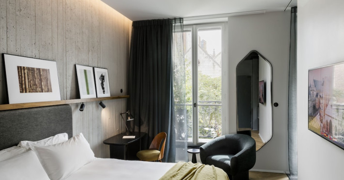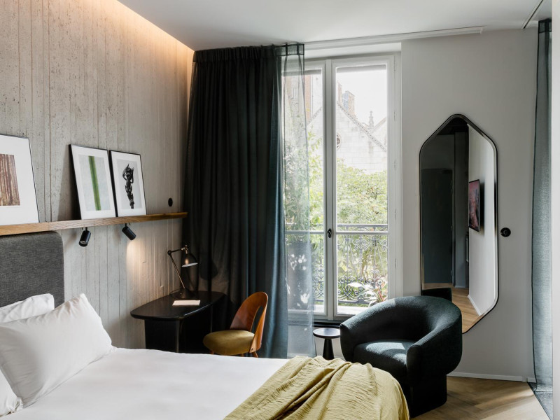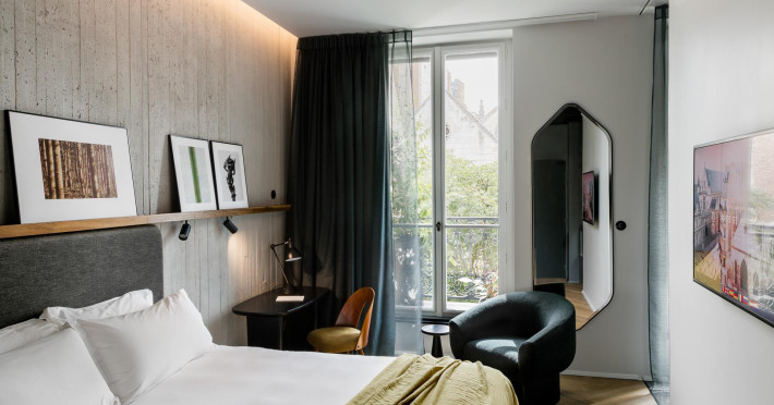 Located in Paris, between the historic Marais and the lively Montorgueil quarter, Hôtel National des Arts et Métiers is a design hotel offering a modern experience behind a classic Haussmannian façade. The hotel features a restaurant and bar, crafted with noble materials by artisans. Guests can enjoy complimentary wireless internet access, concierge services, a rooftop terrace, and a garden. Other amenities include a coffee shop/cafe, dry cleaning/laundry services, a 24-hour front desk, and multilingual staff. Buffet breakfast is served on weekdays and weekends for a fee. The hotel offers meeting/conference space. Guestrooms feature minibars, flat-screen televisions, satellite programming and private bathrooms with showers, designer toiletries, hair dryers, phones, laptop-compatible safes, and desks. Room service is available. Please note that the rooftop is closed until summer. The Hotel National Des Arts Et Metiers is a hotel.