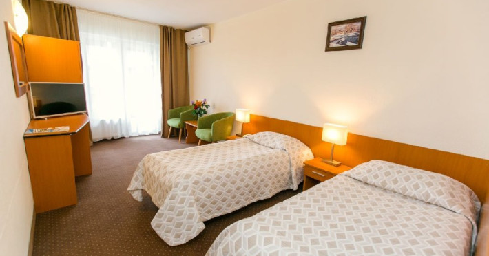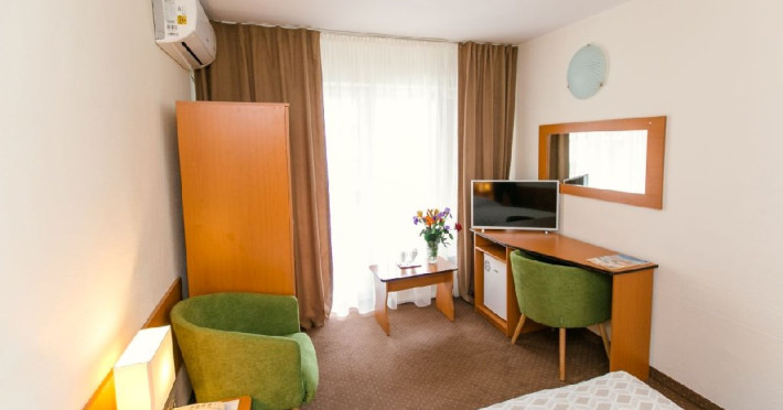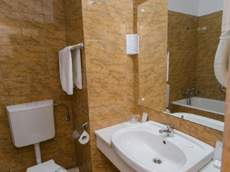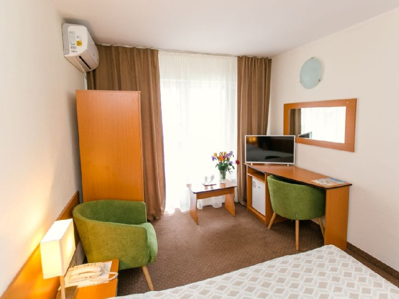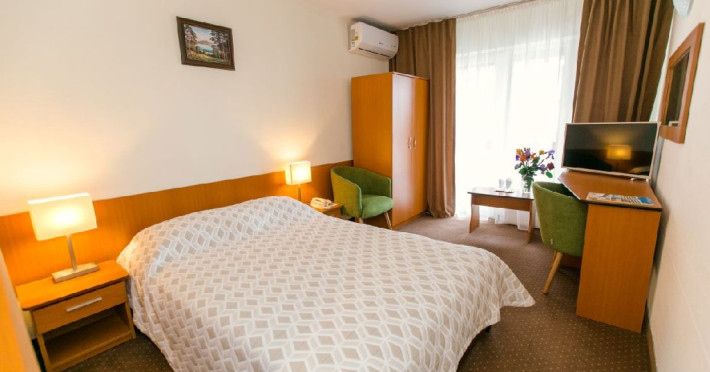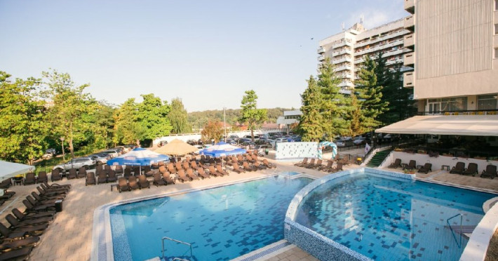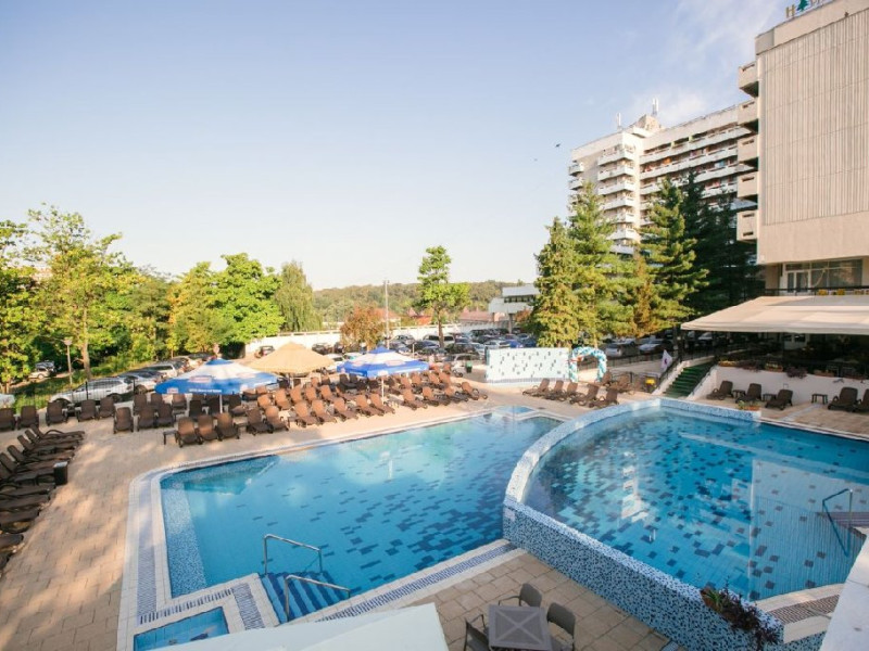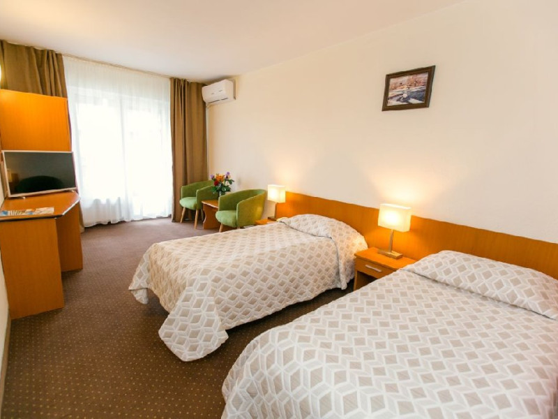Tratamentul balnear se acorda pentru minimum 5 zile si include: 1 consultatie medicala; 3 proceduri /zi cu exceptia zilelor de sambata, duminica si a sarbatorilor legale, procedurile corespunzatoare zilelor exceptate se reprogrameaza in zilele lucratoare. Tarife pentru pachetul cu tratament sunt valabile pentru turistii care prezinta medicului din hotel dovada de asigurat in Romania:bilet de trimitere si cardul de sanatate pentru serviciile medicale in sistemul asigurarilor sociale de sanitate Pachetul TRATAMENT BALNEAR PENTRU SENIORI este accesibil pensionarilor ( si persoanelor insotitoare) si persoanelor peste 55 ani ( fara a fi necesara dovada de pensie). Dovada de pensionar se face in momentul cazarii prin prezentarea cuponului de pensie sau deciziei de pensionare. Restaurantul dispunde de 300 locuri in salon, 40 de locuri pe terasa hotelului si 40 de locuri pe terasa din parcul hotelului. Micul dejun si cina - sistem bufet suedez Pranz - fisa cont 70 lei/persoana/zi Camerele duble dispun de pat matrimonial sau twin, aer conditionat, balcon, TV, fotolii si masuta de cafea, birou de lucru cu internet Wi-Fi, mocheta, telefon. Baia este dotata cu cada Patul suplimentar este un pat pliant ce se aduce si se monteaza in camera.