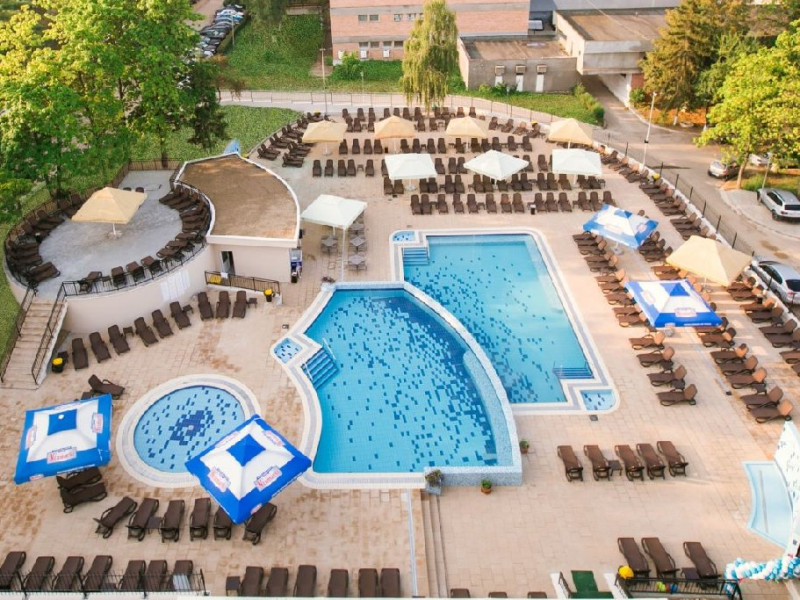 Este situat in Baile Felix in aproprierea drumului national Oradea - Deva, la 100 metri de statia de autobuz, la 300 metri de centrul comercial al statiunii, de parc si de lacul cu nuferi. Hotelul dispune de: 140 de camere duble si 14 camere single si 4 apartamente, restaurant propriu, tereasa, sala de conferinta (80 locuri), 2 piscine cu apa termala, piscina pentru copii (mai-septembrie),spatiu de plaja generos, sezlonguri, zone de luat masa, bar, teren de mini-golf, asistenta medical, in sezon program de animatie la piscine (aquagym, aquazumba, jocuri si activitati pentru copii), petreceri cu spuma, dj si animatoare, baza de tratament, parcare exterioara disponibila 24/7, acces persoane cu dizabilitati (inclusiv cu carucior), camera depozitare bagaje, acces la sala de fitness si sauna, servicii masaj,servicii de balneo-fizioterapie, billiard, inchiriere jocuri (sah, table). Animalele de companie nu sunt acceptate Check-in: incepand cu ora 14:00 Check-out: Pana la ora 12:00 Tarifele nu includ taxa speciala pentru promovarea turismului de 1% din tariful de cazare pentru intreg sejurul. Includ accesul gratuit la piscine, sezlong gratuit,sala de fitness si sauna. Program piscine: Zilnic 9:00 - 19:00