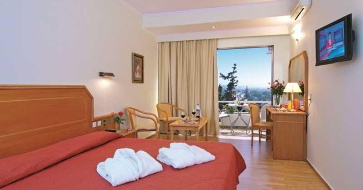 The luxury and comfort, combined with the aesthetic and beautiful environment provide high quality accommodation. After the last renovation in 2018-2019, your stay in comfortably appointed rooms RETHYMNO MARE & WATER PARK now combine not only traditional but also modern styling and all the amenities you need. In addition, the notable gardens and the endless beach lying ahead offer the visitors the world-famous Cretan hospitality. Rethymno Mare & Water Park Hotel consists of 6 buildings and offers: Bar-Cafeteria Aphrodite (air-conditioned) with privileged terrace and panoramic view, spacious lounges and a TV room (air-conditioned). Two conference rooms (fully air-conditioned) Ariadne with capacity of 120 persons & Pasiphae for 180 persons. Water park (7 water slides in 2 new pools), one big fresh water swimming pool for adults with large sun terrace, one freshwater sharing pool for adults and two freshwater swimming pools for children. Children’s playground, children’s animation, children’s buffet and Mini Club (from 4 years old). Pool Bar Poseidon, Snack Pool Bar Jasmine, Beach Bar Anemos. Multiple space for events and meetings “Mousses“. The Water Park resort consists of the 130-sqm pool for adults into which five colourful Water Slides, a Rafting one, a Free Falling one and between them a three-canal Multi Slide, dive.The Water Park resort also includes a 178-sqm swimming pool with two children-size Slides in front of which towers a Giant Mushroom with its waterfalls splashing on to a beautiful small dolphin.Special highlight is the Thematic Cretan Restaurant “Jasmine”, where delicious dishes from the Cretan local cuisine are prepared from our Chef. Guests can visit this restaurant at least once during their stay (with reservation, free of charge). Room service at extra charge. The restaurant Hermes (air-conditioned) provides enriched buffets for breakfast, lunch and dinner with Cretan (local) specialities & live cooking. With theme nights such as Italian, Greek, BBQ buffet with Cretan (local) specialities. Early breakfast & late breakfast available. Tennis court free of charge (charge for floodlight). Billiard (at extra charge). Sun beds & umbrellas at the pool, table-tennis, darts, volleyball, water polo, boccia, aerobics, water gym (free of charge). Daily animation program, including Greek evenings & Cretan Folklore nights (with live music and dancers), BBQ, pool/beach parties, shows & games. Sun beds and umbrellas are available on the beach free of charge. Beach towel service with deposit. Open-air theatre. Wellness Centre (at charge). Air-conditioned Mini Market (daily newspaper, stamps, tobacco, etc.). Jewellery shop (air-conditioned). Free Wi-Fi free access in public areas of the hotel. Clothing iron service (at charge). Bars. Restaurants. À la carte Restaurant on the beach (full payment). Wi-Fi in public areas, free of charge. Clothing iron service, Room service (at charge)