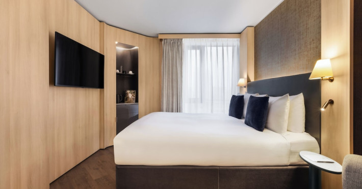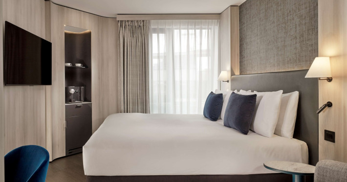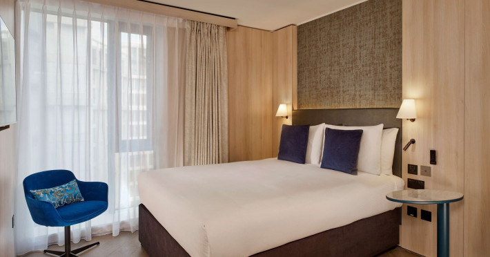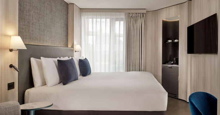 The Hotel Riu Plaza London The Westminster is a stylish hotel located in the heart of historic London, a short walk from iconic landmarks such as the Houses of Parliament, Westminaster Abbey, and Big Ben. The hotel offers 464 guestrooms, each featuring a flat-screen TV, complimentary Wi-Fi, and a private bathroom with designer toiletries. Amenities include a 24-hour front desk and concierge services, a fitness center, dry cleaning/laundry services, and self-parking (fees apply). Dining options include the Westminster Bar & Grill (serving breakfast, lunch, and dinner), Bao Yum (Eastern-inspired buns with a Western flair), and the STK Westminster (Modern Steakhouse & Chic Lounge with a bowling alley). Room service is available 24 hours (with limited options overnight). English breakfast is available daily (fee applies). The hotel also has three meeting rooms. Pimlico Underground Station is within walking distance. The hotel is approximately 0.8 km from Houses of Parliament and 1.3 km from Big Ben. Heathrow Airport (LHR) is the preferred airport. The Hotel Riu Plaza London The Westminster is a Business, City hotel, Design Trendy, Full Service, Modern, Tourist hotel. The nightlife/restaurants are within walking distance from the hotel.