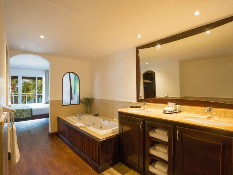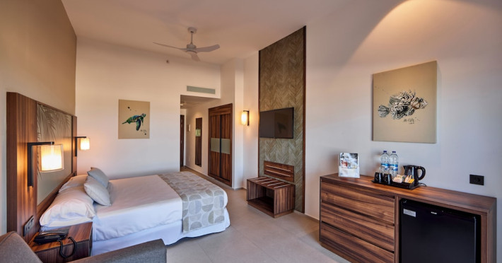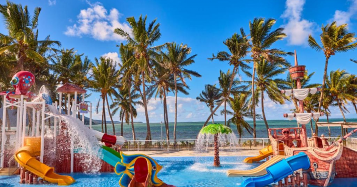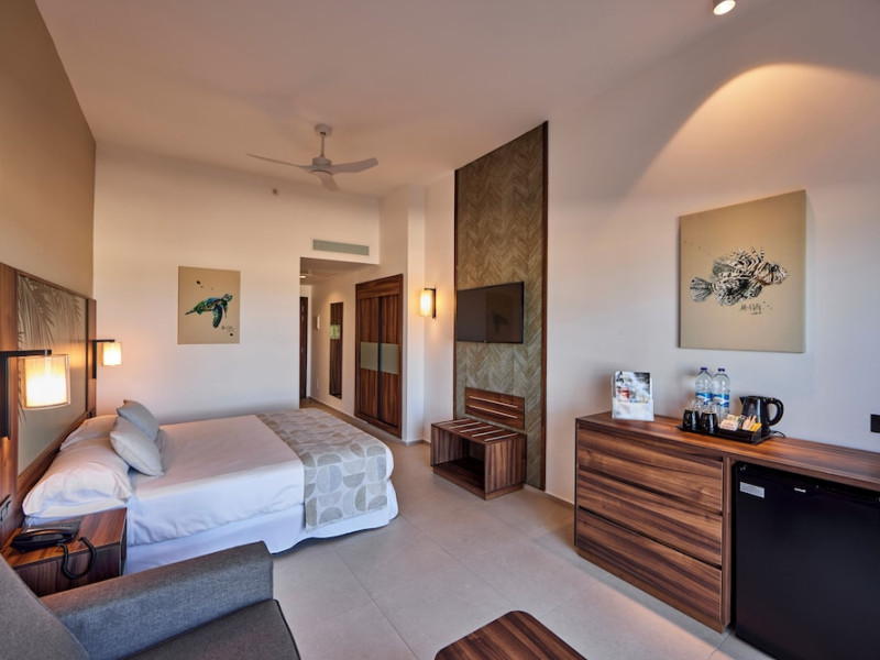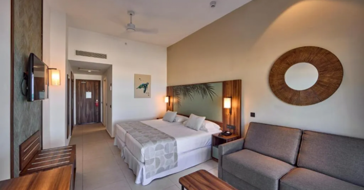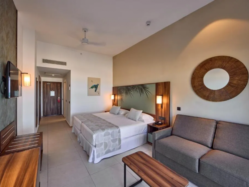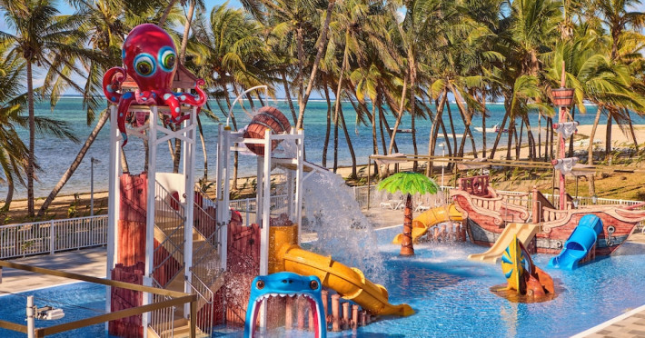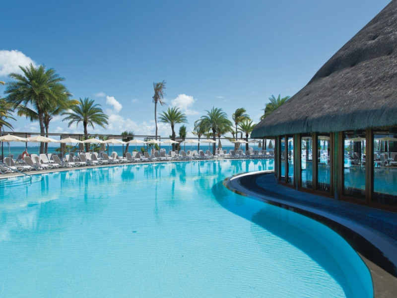 Located on Le Morne Beach in Mauritius, the Hotel Riu Turquoise offers an all-inclusive experience with 390 air-conditioned rooms featuring minibars, private balconies or terraces, and complimentary Wi-Fi. Guests can enjoy multiple outdoor swimming pools, a health club, a waterslide, and a range of activities including snorkeling and the Riu Fit program. Dining options include a main buffet restaurant with international cuisine and live cooking stations, as well as à la carte Indian and steakhouse restaurants. Several bars, including a swim-up bar, offer drinks and snacks. The hotel provides a kids' club, children's playground, and a pool with slides for children. Additional amenities include a 24-hour front desk, multilingual staff, gift shops, a hair salon, and a Renova Spa with pools and treatments. The hotel is situated within driving distance of Le Morne Mountain and Paradis Golf Club. The Hotel RIU Turquoise - All Inclusive is a hotel.