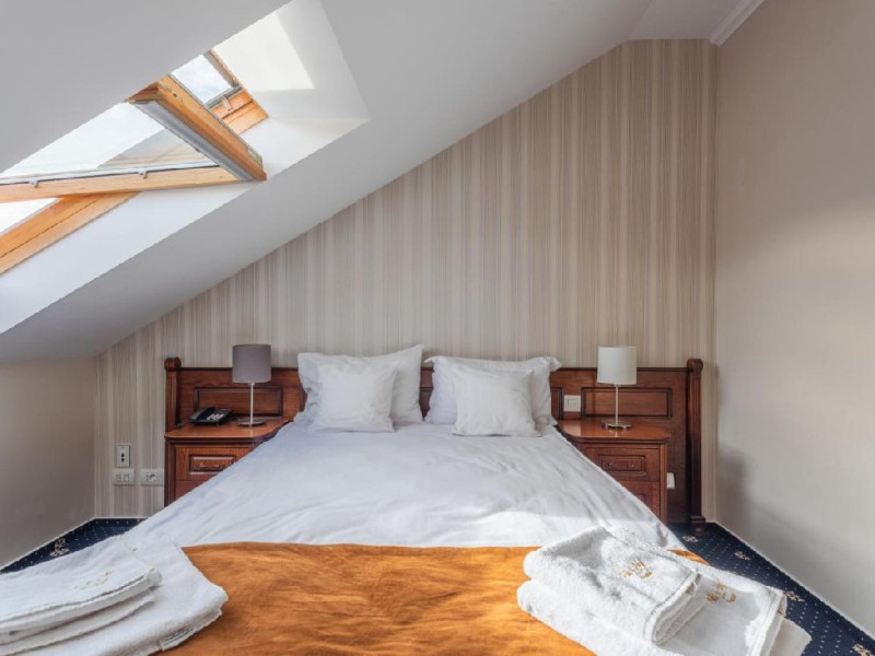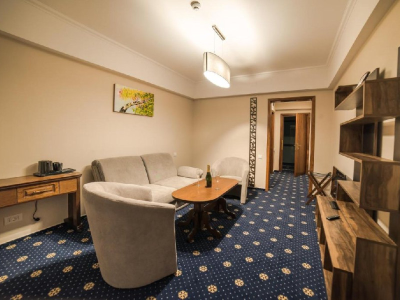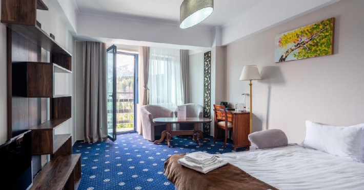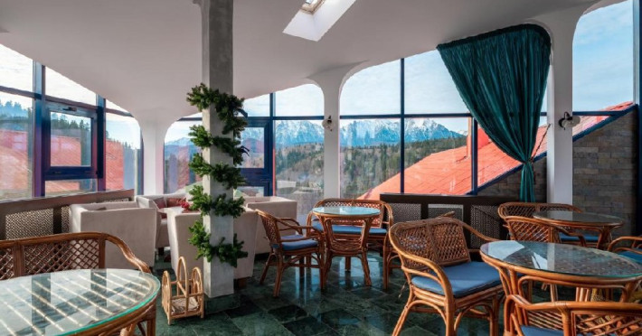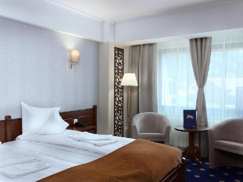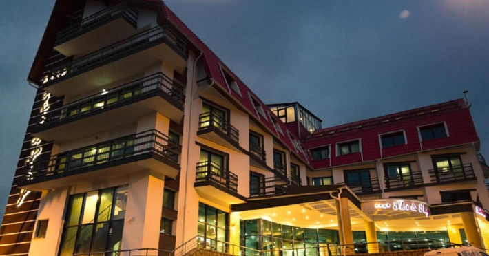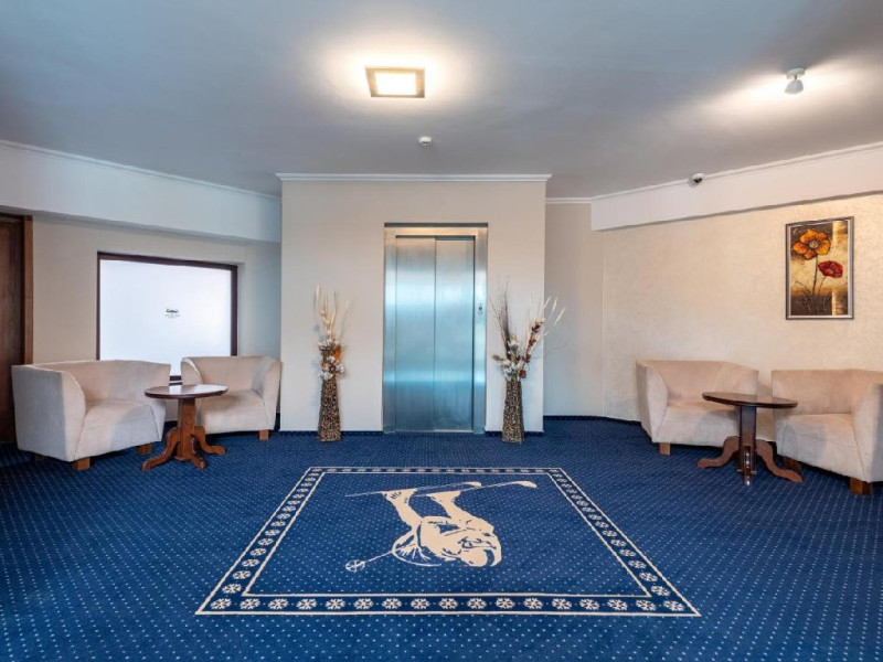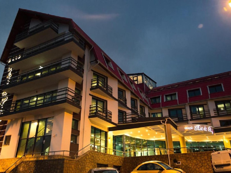 INFORMATII GENERALE Hotel Ski Sky se afla in statiunea Predeal si este situat la aproximativ 5 minute de mers pe jos de la telescaunul Clabucet. FACILITATI UNITATE Turistii au la dispozitie restaurant cu terasa, bar, parcare (contra cost), sauna, internet Wi-Fi. DESCRIERE CAMERE Camerele duble economy se afla la mansarda si dispun de un pat matrimonial. Camerele duble standard ofera un pat matrimonial sau doua paturi twin, iar unele dispun si de balcon. Apartamentele sunt formate din doua camere, o camera cu pat matrimonial si in cealalta camera se afla o canapea extensibila, ideal pentru familiile cu copii. Pe langa acestea dispun de 2 bai si balcon/terasa. Toate camerele sunt dotate cu TV, Wi-Fi, baie proprie. LOCALIZARE Hotel Ski Sky se afla in statiunea Predeal si este situat la aproximativ 5 minute de mers pe jos de la telescaunul Clabucet. ATRACTII TURISTICE Manastirea Predeal, Pestera de Gheata, Canionul Sapte Scari. POLITICI Nu se accepta animale de companie. SERVICII DE MASA Mesele se servesc in restaurantul propriu. FACILITATI EVENIMENTE Hotelul dispune de sala de conferinte cu o capacitate de 30 locuri.