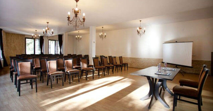 INFORMATII GENERALE Hotel Soimul se afla in statiunea Poiana Brasov la o altitudine de 1030 m, foarte aproape de partiile de schi si de traseele montane. FACILITATI UNITATE Hotelul dispune de parcare proprie, restaurant cu terasa, Lobby Bar, sauna, sala de fitness, loc de joaca exterior. DESCRIERE CAMERE Camerele duble fara balcon dispun de un pat matrimonial sau doua paturi twin. Cele matrimoniale se afla la etajul 5, iar cele twin se gasesc si la parter. Camere duble cu balcon dispun de un pat matrimonial sau doua paturi twin. Printre dotarile camerelor se numara: baie proprie, TV, Wi-Fi. LOCALIZARE Hotel Soimul se afla in statiunea Poiana Brasov la o altitudine de 1030 m, foarte aproape de partiile de schi si de traseele montane. ATRACTII TURISTICE Masivul Postavaru, Muntele Tampa, Canionul Sapte Scari, Biserica Neagra, Pietrele lui Solomon. POLITICI Nu se accepta animale de companie. SERVICII DE MASA Restaurantul Bavaria are o capacitate de pana la 250 locuri si serveste preparate romanesti dar si internationale. Turistii se pot bucura de bauturi variate in Lobby Bar sau pe terasa. FACILITATI COPII Loc de joaca exterior. FACILITATI EVENIMENTE Hotelul dispune de trei sali de conferinte.