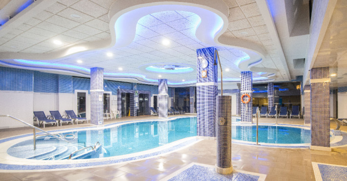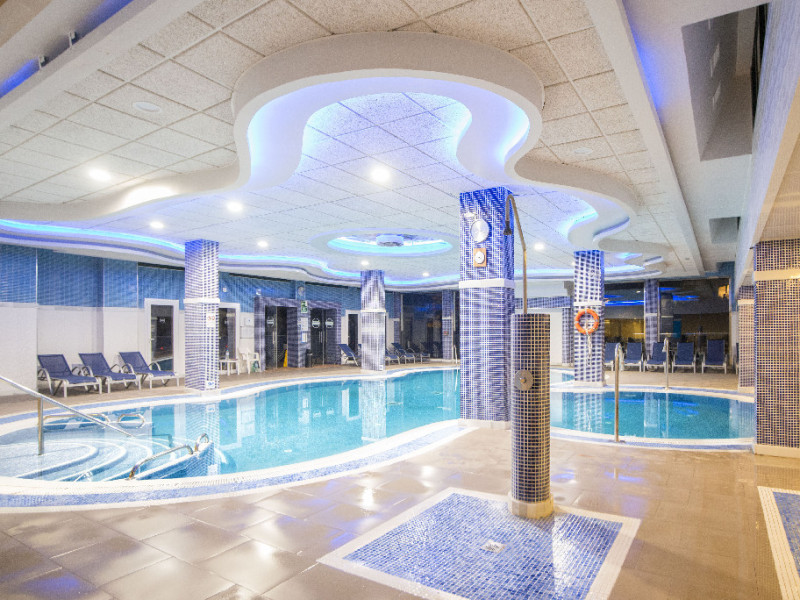 Facilitati hotel: Hotelul este dotat cu aer conditionat, receptie 24h, restaurant bufet cu terasa, 2 baruri, cafenea, bar la piscina, Wi-Fi, 4 lifturi, jacuzzi, salon TV cu TV satelit, gradina, piscina exterioara cu sezlonguri si umbrele de soare, piscina pentru copii, piscina interioara incalzita, discoteca, loc de joaca, biliard, tir cu arcul, zona wellness.