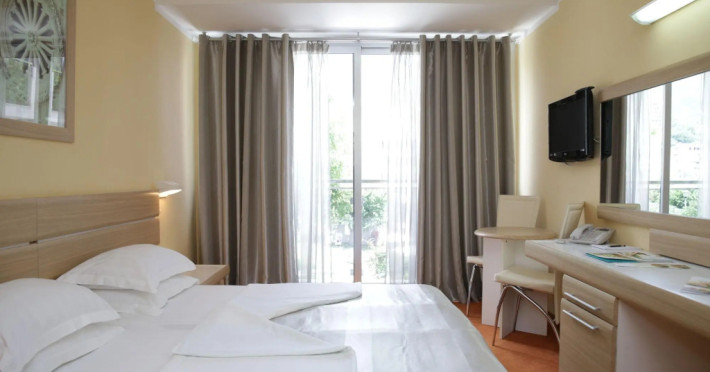 Good choice if you’re looking forward to taking some rest at the hotel as much as to walking around the city. Hotel «Hotel Tara» is located in Budva. This hotel is located nearby from the city center. You can take a walk and explore the neighbourhood area of the hotel — Becici Beach, Slovenska Beach and Hawaii Beach.,Spend an evening in a nice atmosphere of the bar. You can stop by the restaurant. Guests can choose between full board and half board. Free Wi-Fi on the territory will help you to stay on-line.,If you travel by car, you can park in a parking zone. Sports fans will be able to enjoy a fitness center. Swimming fans are going to enjoy an outdoor pool. The staff of the hotel will order a transfer for you.,Accessible for guests with disabilities: the elevator helps them to go to the highest floors. Additional services that the hotel offers to its guests: a laundry, ironing, car rental and a concierge. The staff of the hotel speaks English, Spanish, Italian, German, Polish and Russian.,In the room, there is a TV. The room equipment depends on its category.,No-show availability: unspecified. No-show day period: unspecified. No-show time: ,Visa support: No information on the Visa support, Number of floors: 7., Number of rooms: 227., Frequency: 50., Voltage: 230., Sockets: Type c. Type f.