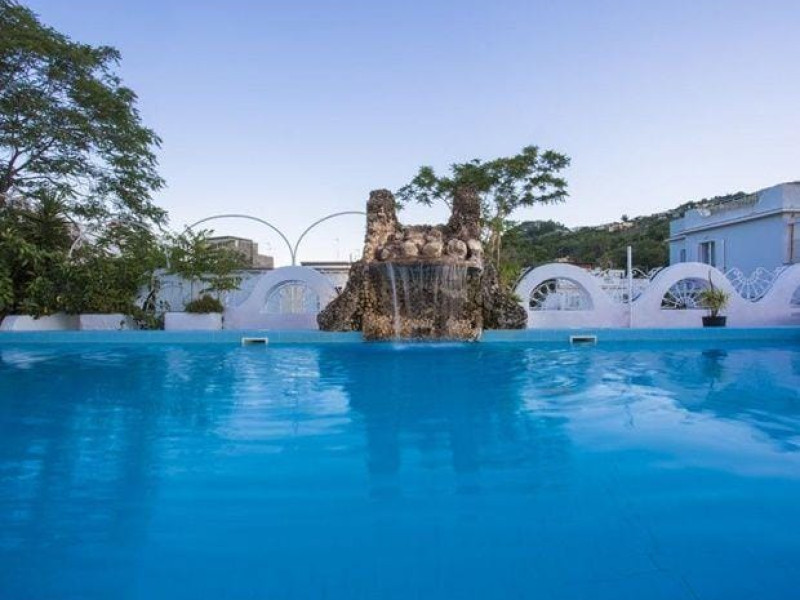 Hotel Terme Tirrenia is a three-star hotel located a short distance from the central Via Roma, the heart of the island's shopping. The affiliated lido, with a sandy beach, is about 700 meters away, while the town center, with shops, restaurants and pizzerias, is only 400 meters away.This hotel, in typical Mediterranean style and with a lovely garden, is composed by a central body on four levels with the main services and rooms, and a secondary body on two levels. The common services include a hall, a reception, a lift, a large room with a bar corner and a TV room. There is also a swimming pool and solarium terraces with sun umbrellas and sun beds.
