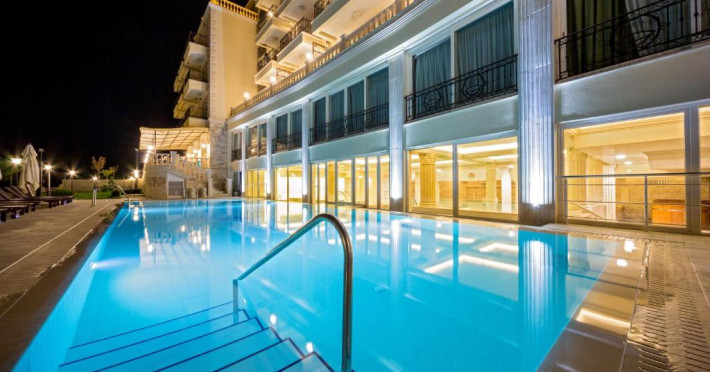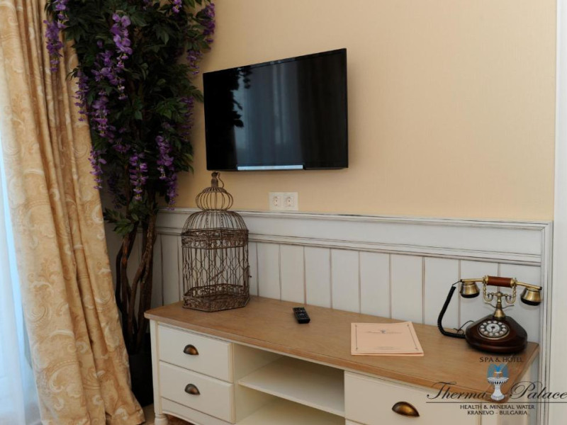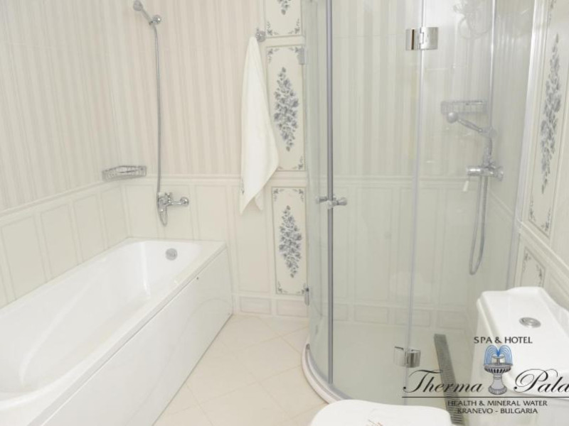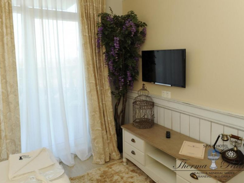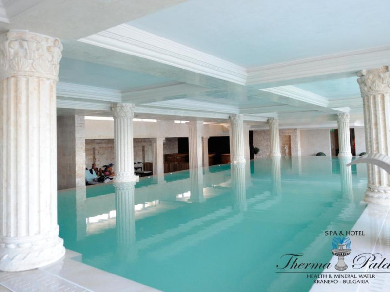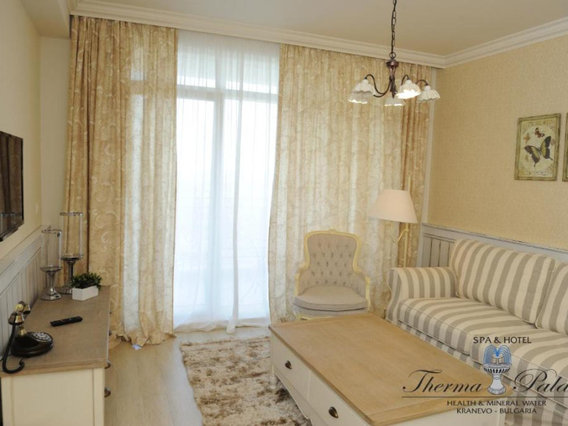 Therma Palace - Privat Beach & Free Parking este o proprietate cu un design unic, situată la 5 minute de mers pe jos de plaja din Kranevo. Oferă o piscină in aer liber disponibilă gratuit și unități de cazare cu aer condiționat și WiFi gratuit. Oaspeții au la dispoziție gratuit o saună, o baie de aburi aromatică, o cameră de terapie cu sare, o cadă cu hidromasaj și piscine in interior și in aer liber.