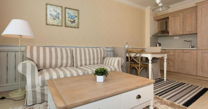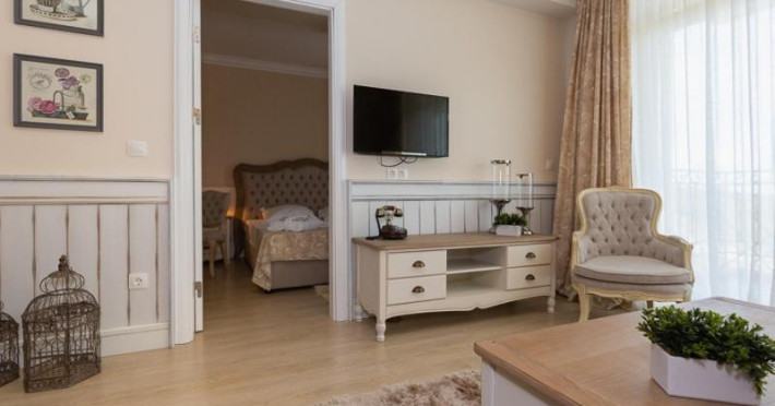Unitățile de cazare sunt mobilate modern și includ TV cu ecran plat cu canale prin satelit, zonă de relaxare cu o canapea sau un fotoliu și cutie de valori. Apartamentele au chicinetă cu zonă de luat masa. Baia este dotată cu o cadă, uscător de păr și articole de toaletă gratuite. De asemenea, sunt puse la dispoziție un halat de baie și papuci. Toate unitățile au balcon cu vedere la mare.