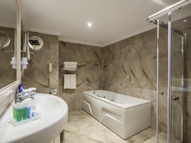 Baie proprie cu cada, aer conditionat centralizat si individual, televizor, telefon, minibar,ceainic electric, balcon ( 25 camere fara balcon).