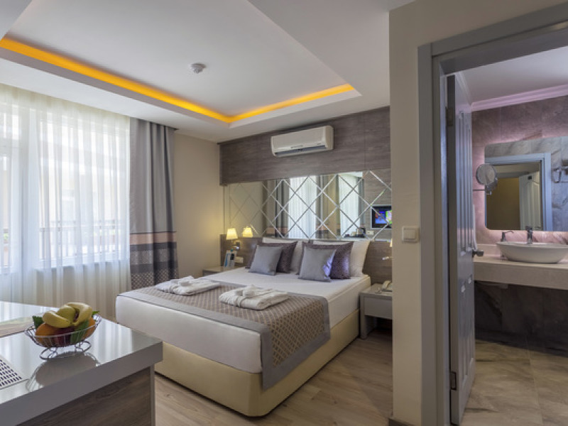 Hotelul dispune de restaurant principal, meniu diabetic, 3 restaurante A la Carte( Italian, turcesc, pescaresc) , piscina exterioara si interioara, 3 tobogane, cntru SPA, baie turceasca, sauna, jacuzzi, aerobic, aqua aerobic, volei pe plaja, baschet, mini fotbal, teren cu tenis, tenis de masa, darts, bocce, masaj, biliard, bowling, program de animatie, muzica live, discoteca. Plaja proprie cu nisip, Ponton. Pentru copii: piscine, 4 tobogane acvatice, loc de joaca, mini club.