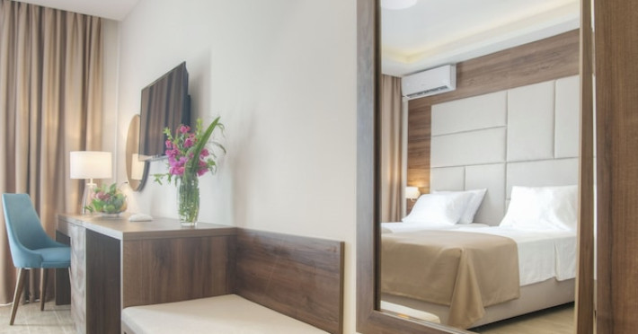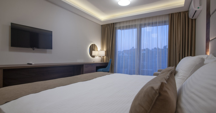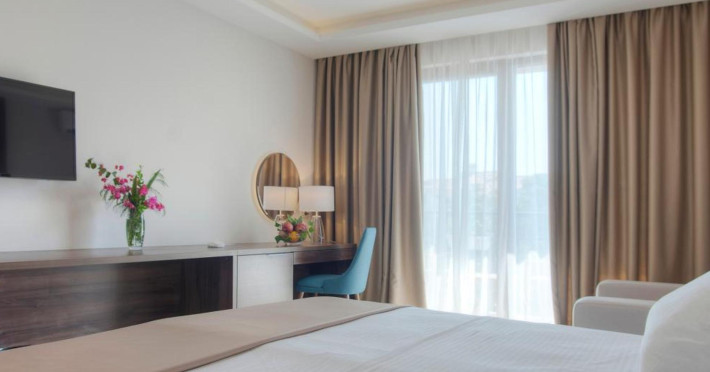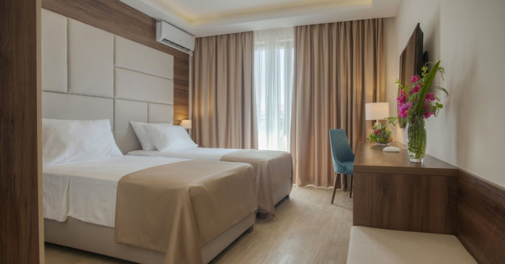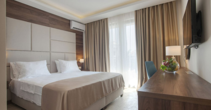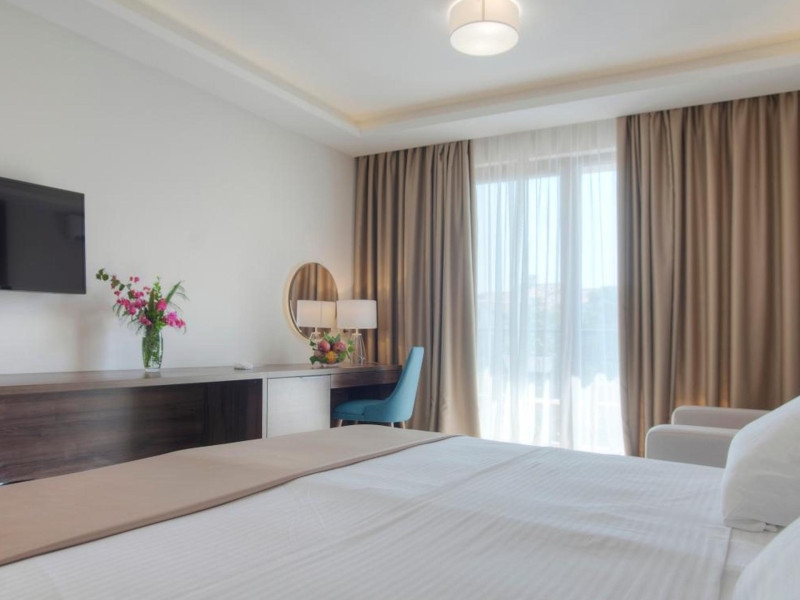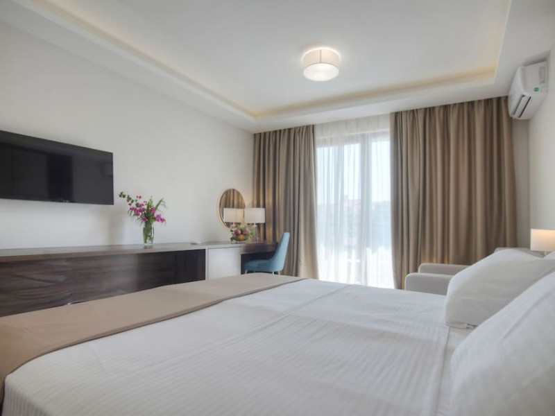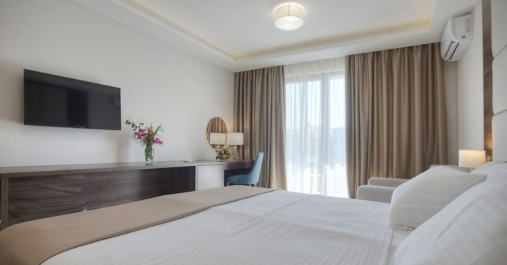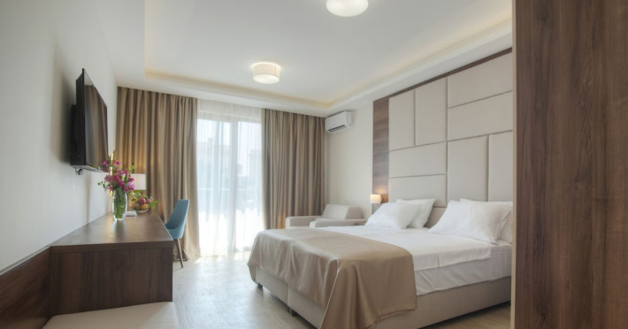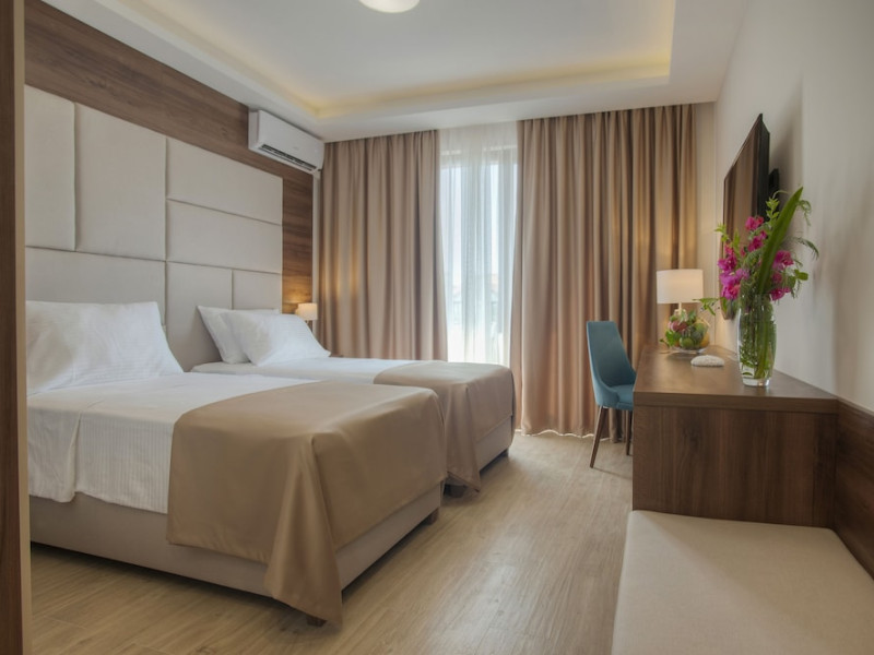 Located in Budva, Hotel Twelve by Aycon offers a comfortable stay with 12 air-conditioned rooms, each featuring a balcony, minibar, flat-screen TV with cable programming, and a private bathroom with a shower, complimentary toiletries, and a hairdryer. Guests can enjoy complimentary Wi-Fi, a seasonal outdoor swimming pool, a terrace, and a restaurant. A complimentary buffet breakfast is served daily. The hotel provides a 24-hour front desk, multilingual staff, luggage storage, and free private parking. An airport shuttle service is available for a surcharge. The hotel is centrally located, close to Slovenska Beach and other attractions. The HOTEL TWELVE by Aycon is a hotel.