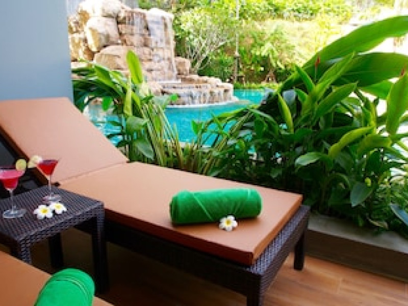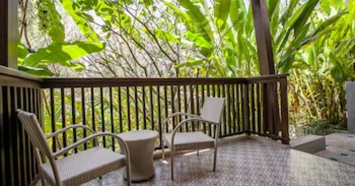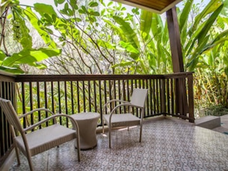 Cu un decor în culori tropicale și perne care au ca motiv ananasul, camerele sunt prevăzute cu mobilier din lemn autentic. Acestea includ un minibar, un TV cu ecran plat şi un fierbător electric. Băile private sunt dotate cu papuci şi articole de toaletă gratuite cu parfum de frangipani. Camerele au un balcon sau un patio cu acces direct la piscină. Printre elementele speciale se numără opere de artă originale, create de pictori locali din Krabi.