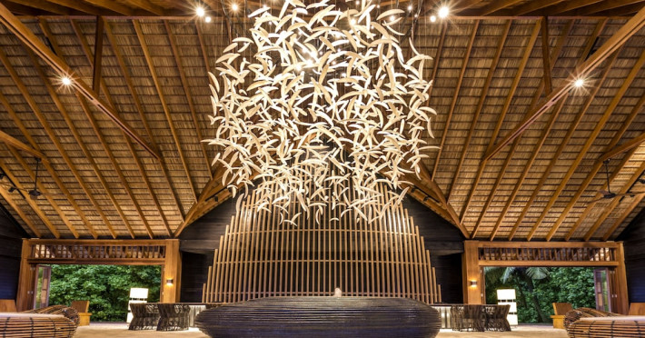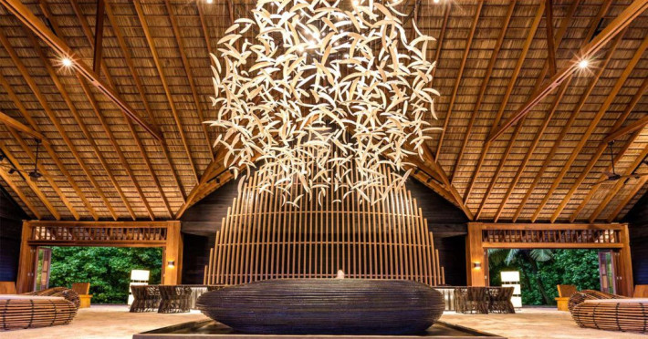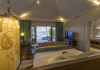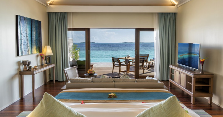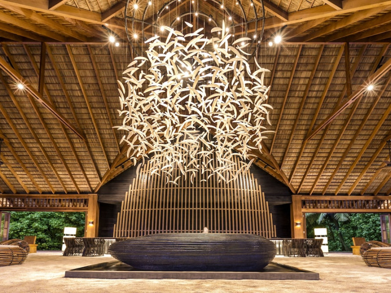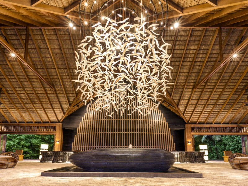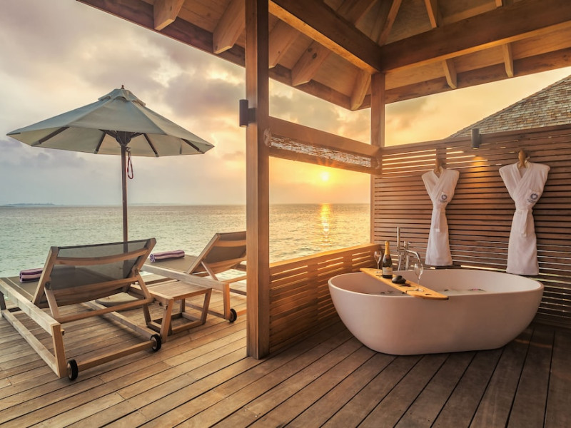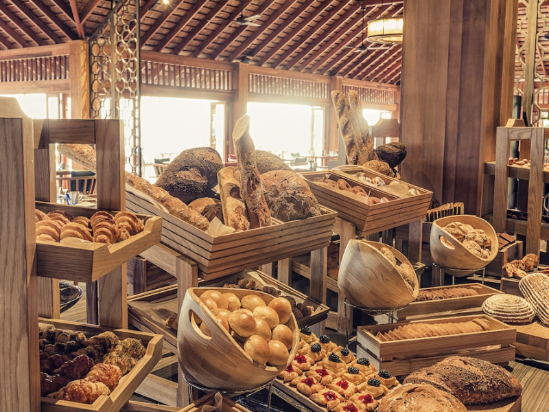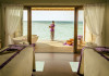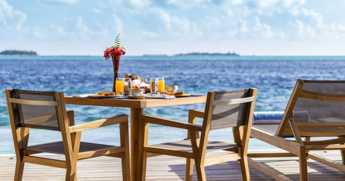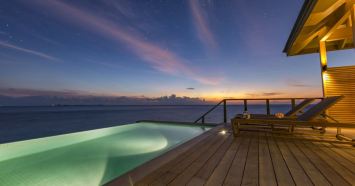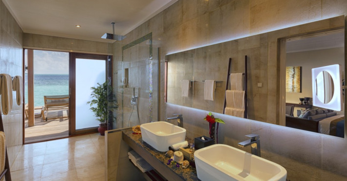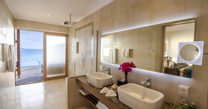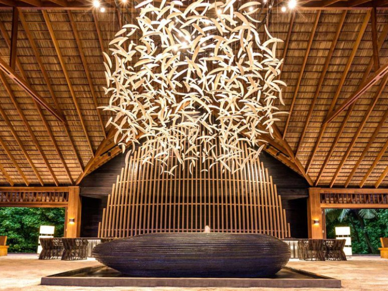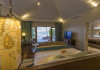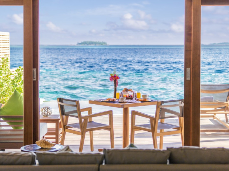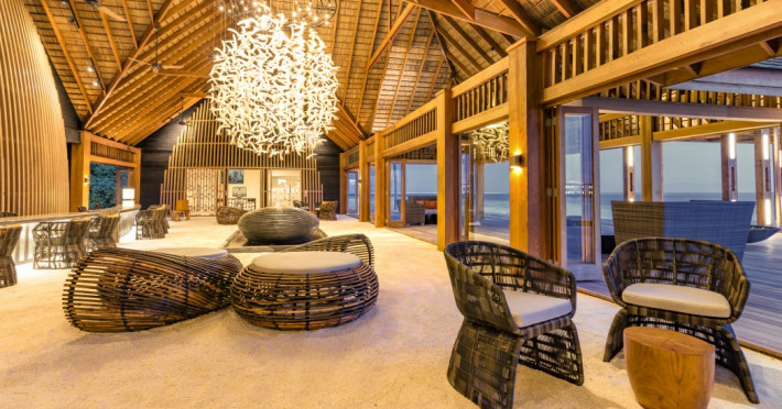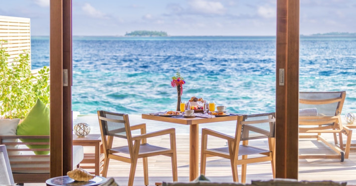 Canneli Restaurant, on the beach, serves “all you can eat” buffet style meals for breakfast, lunch and dinner, in a traditional open-air dining room with live action cooking stations. 5.8 Undersea Restaurant serves a world-class tasting menu and offers a selection of fine wines from our cellar. Guests walk down a spiral staircase, are seated at 1 of 12 tables located 5.8 meters (18 feet) beneath the lagoon and watch an exciting show of marine life swimming about the surrounding coral reef. Aquarium Restaurant, over-the-water, serves an international menu specialising in fresh seafood, prime beef and a variety of Asian cuisines including the flamboyant Teppanyaki show cooking, as well as a selection of fine wine. Dining options are the Snack Menu at the Bars and Pool, In-Villa Dining and Candlelight Dinners on the beach