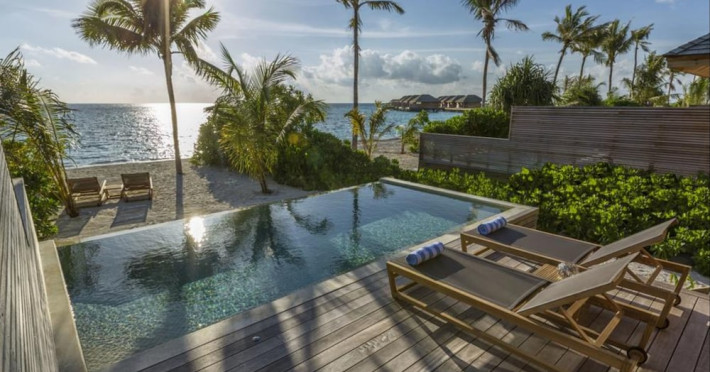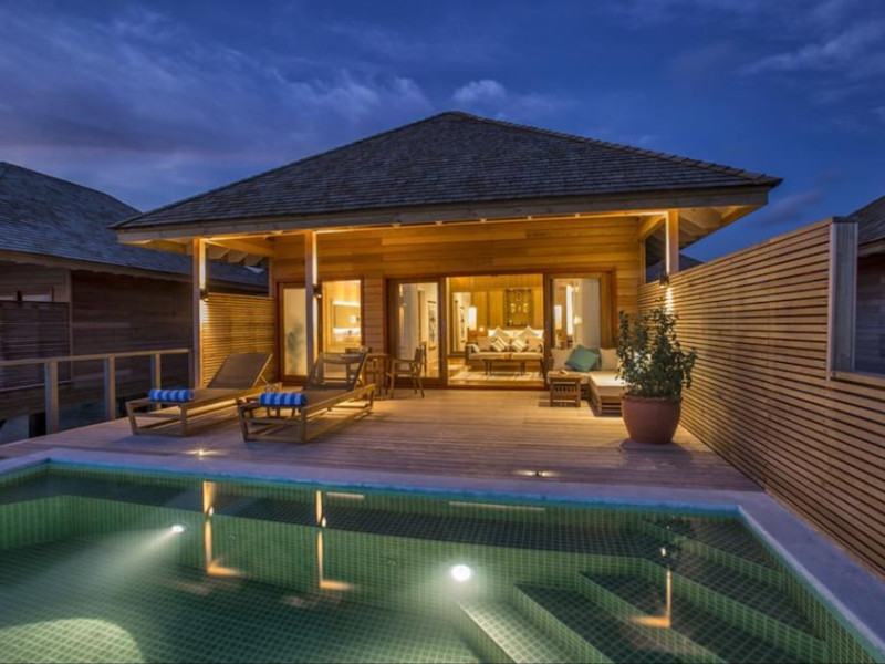 Hurawalhi is surrounded by a beautiful lagoon, an excellent house reef and long stretches of white, sandy beach. It is the only Resort on the island of Hurawalhi, in Lhaviyani Atoll, about 400 meters long by 165 meters wide, 6.5 hectares (16 acres). Your seaplane transfer from Ibrahim Nasir International Airport is a scenic, 40 minute flight. 90 Villas, half with private, infinity pools where guests can cool off while enjoying stunning sunrise or sunset views, are strung across the glittering lagoon or perfectly positioned along the beautiful beach. These contemporary, 105 sqm Villas are designed as the epitome of tropical chic with clean lines, earth tone colours and natural materials which harmonise flawlessly with the surrounding lushly vegetated, unspoiled island. Privacy, spaciousness and comfort define these Villas, furnished in tropical décor and equipped with the latest technology including broad band Internet connection, Bluetooth sound bar, 48-inch flat screen TV and DVD player. In Villa furnishings include a king size bed, a sitting area, wood floors, spacious wardrobe and vanity area, air conditioning, overhead ceiling fan, personal safe, IDD telephone, and private sundeck with chaise lounges, table and chairs. Amenities include a wine refrigerator, stocked mini bar, espresso machine and complimentary tea and coffee. The indoor bathroom features a luxurious rain shower, double sinks, hairdryer, bathrobes, slippers and nightly turn-down service. Guests also enjoy complimentary use of chaise lounges at the beach and pool, and beach towels. Electricity is 220VAC, 50HZ. Reception for check-in/check-out, Guest Services, Excursion Desk, Gift Shop, Sifani Jewellers and Pix Maldives, a custom photography service.