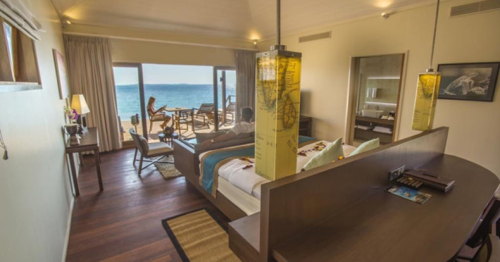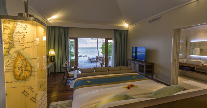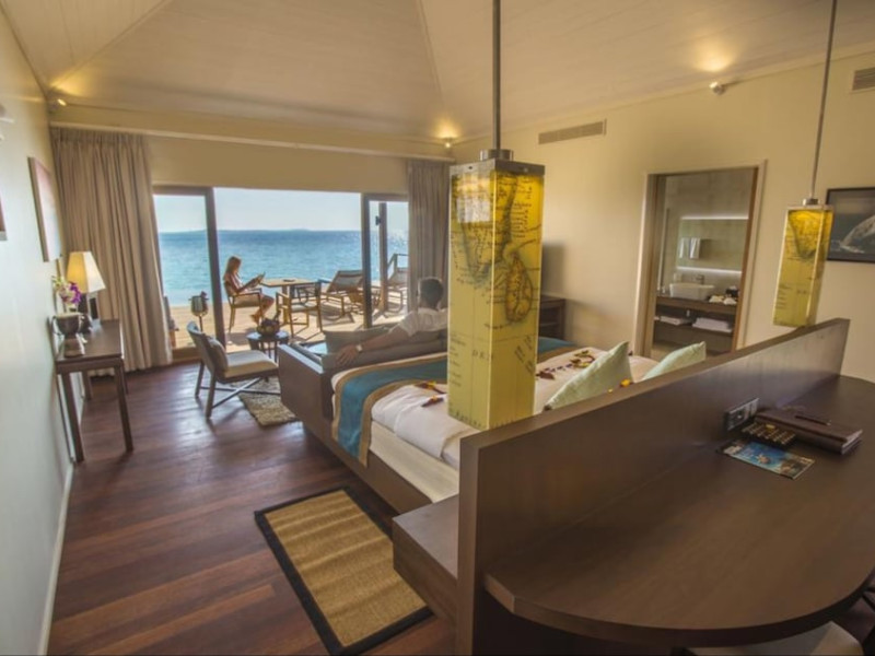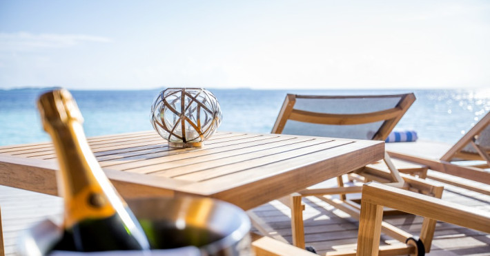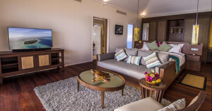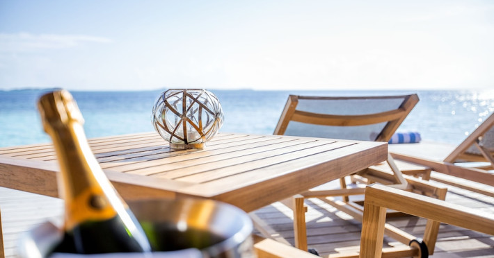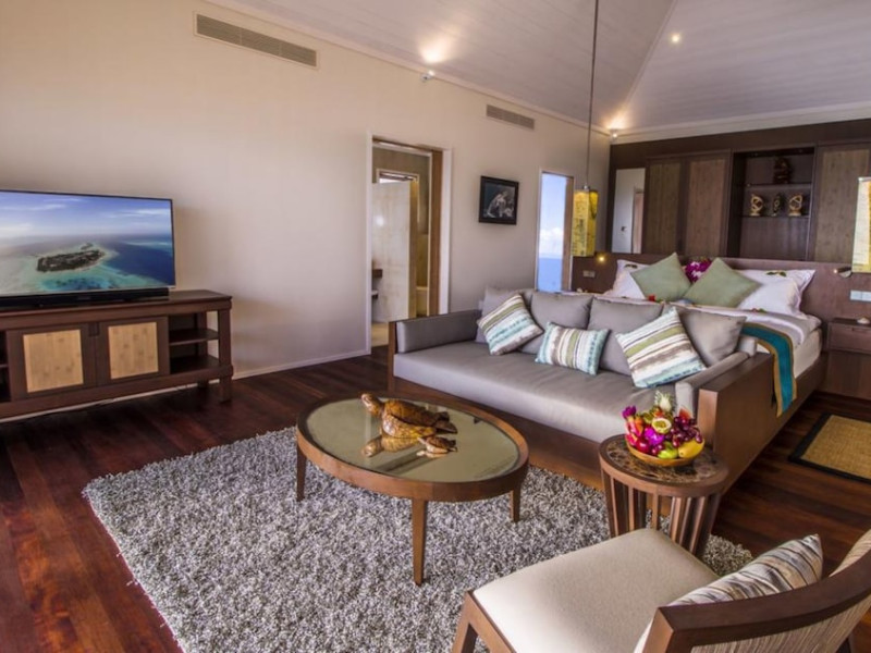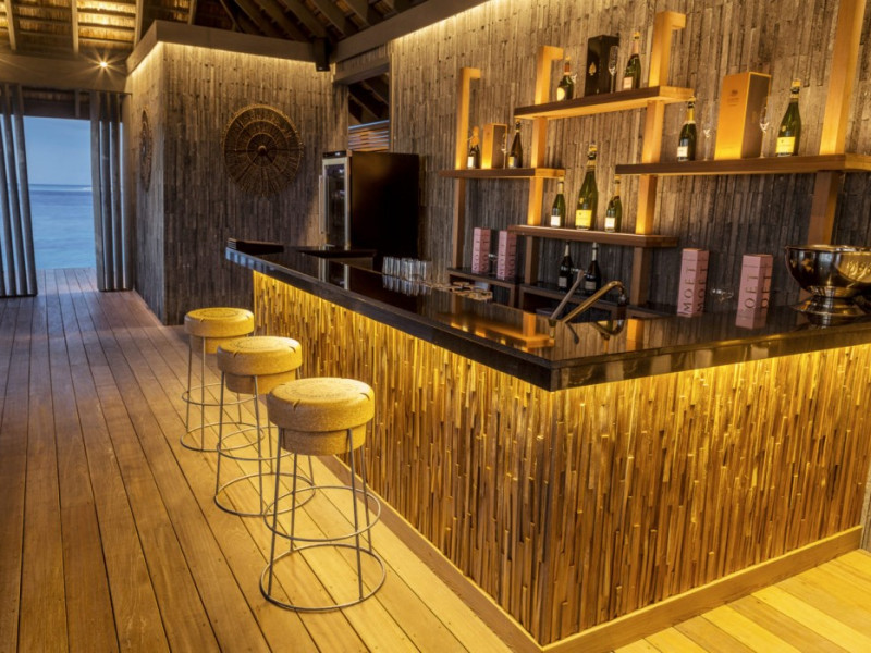 Coco Bar, on the beach with al fresco deck overlooking the lagoon, the place to enjoy your favourite drinks watching the beautiful sunset or after dinner, your sports teams on the big screen. Aquarium Bar at the Aquarium Restaurant, over-the-water. Champagne Pavilion at the end of the Ocean Villa jetty is the perfect romantic spot to get away from everyone to celebrate your romance with a Champagne toast and Canapés