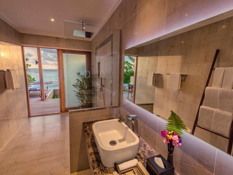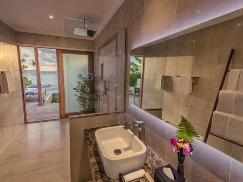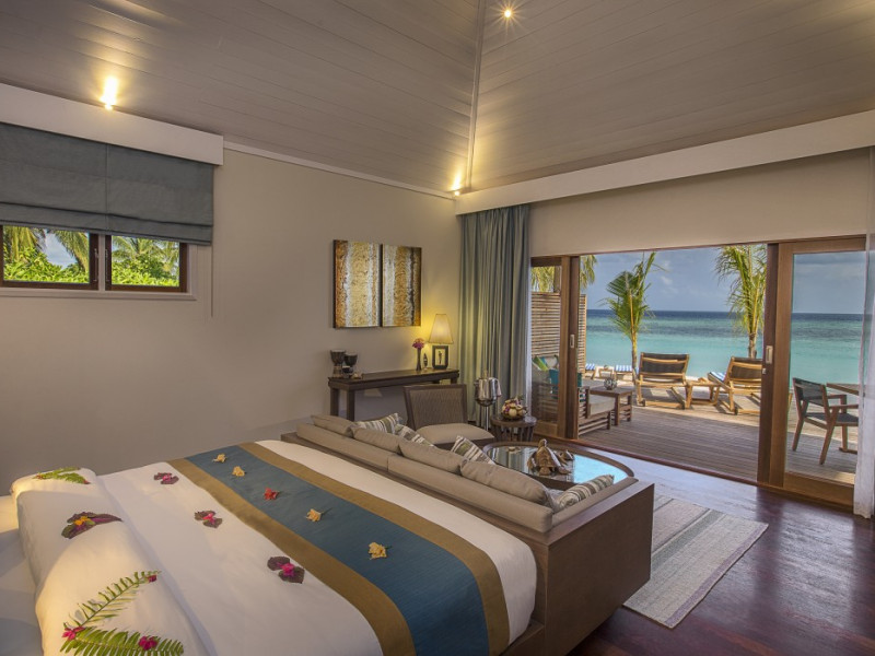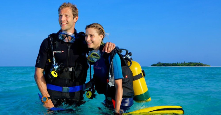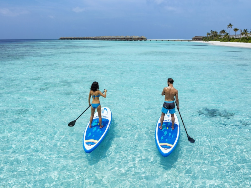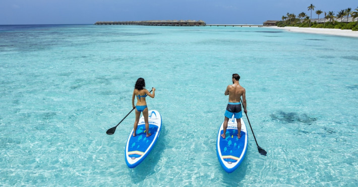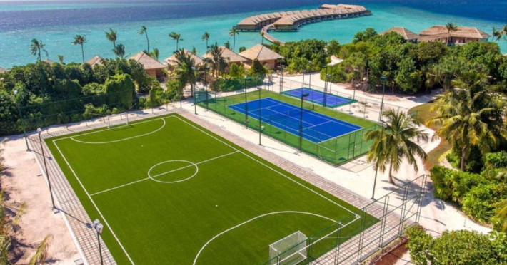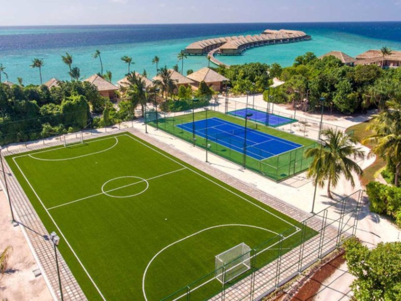 Beautiful white sand beach, a magnificent lagoon and an excellent house reef for snorkelling. A sparkling clear, freshwater infinity swimming pool overlooking the beach; a multipurpose, outdoor athletic court with all weather, courtflex interlocking plastic tile surface for futsal; an artificial turf tennis court, a badminton court, a beach volleyball court; a Fitness Center with Personal Trainer, and a sports fishing boat for deep sea fishing. The Games Center with table tennis, billiards, darts, foosball, mahjong and chess tables. Pro-divers featuring guided diving and snorkelling boat trips, equipment and accessory sales, rental and repair, and a complete PADI 5 Star training center. A hyperbaric chamber is located nearby at Kuredu. Ocean Watersports for rental and instruction including jet skis, parasailing, water skiing, wake boarding, banana boat rides, windsurfing, kayaks and catamaran sailing.