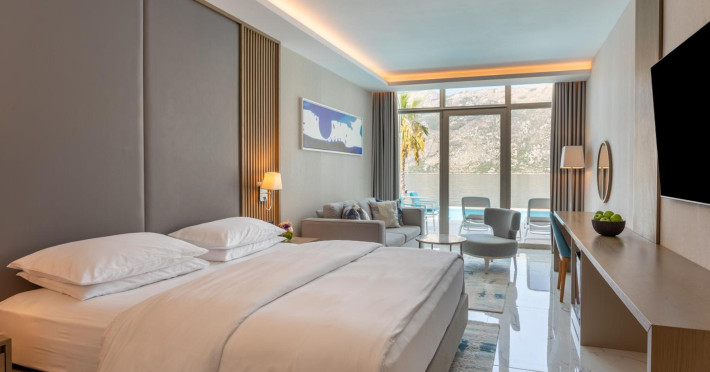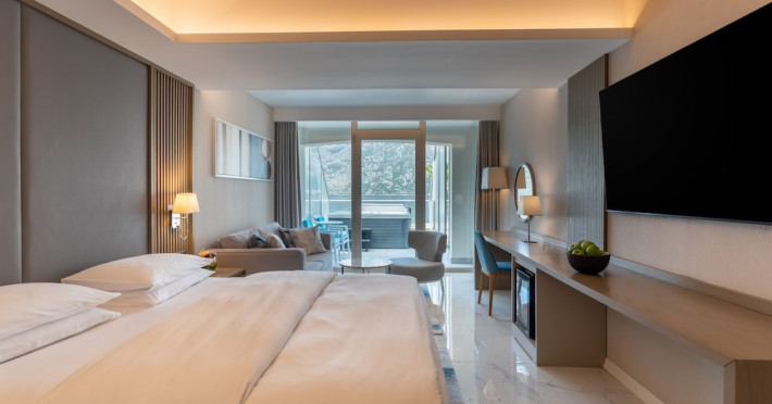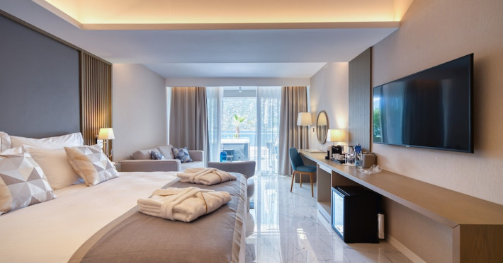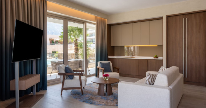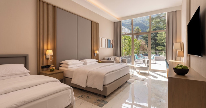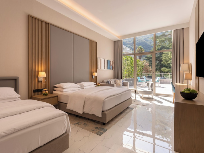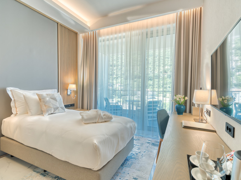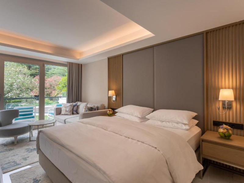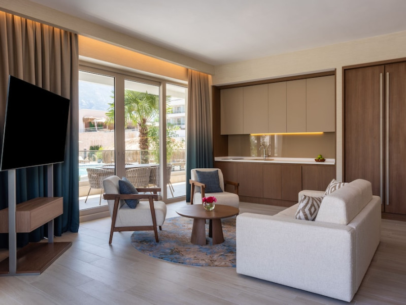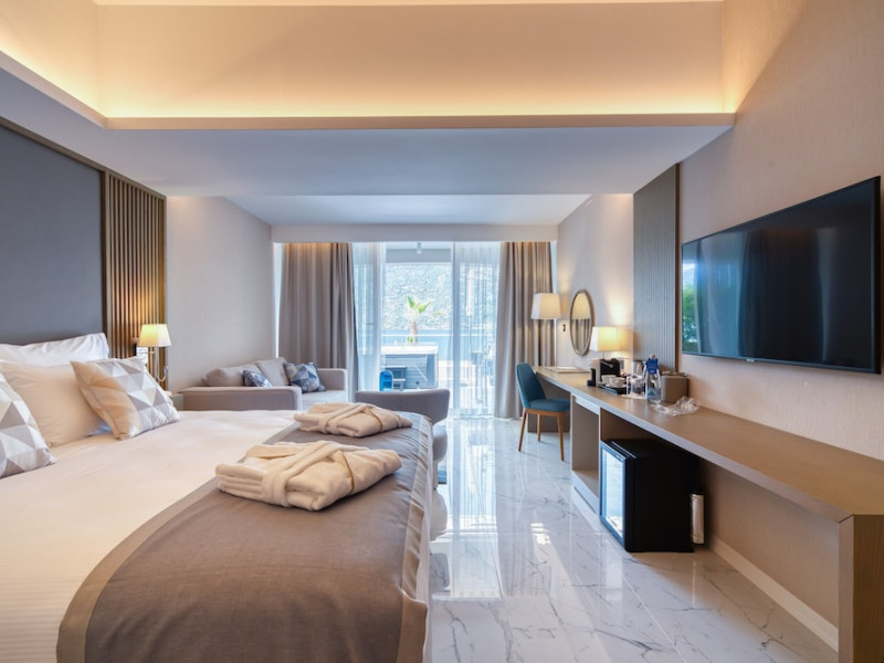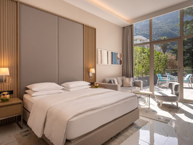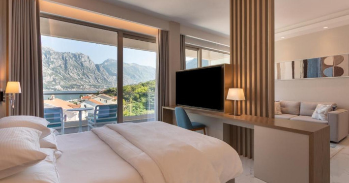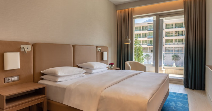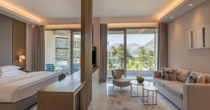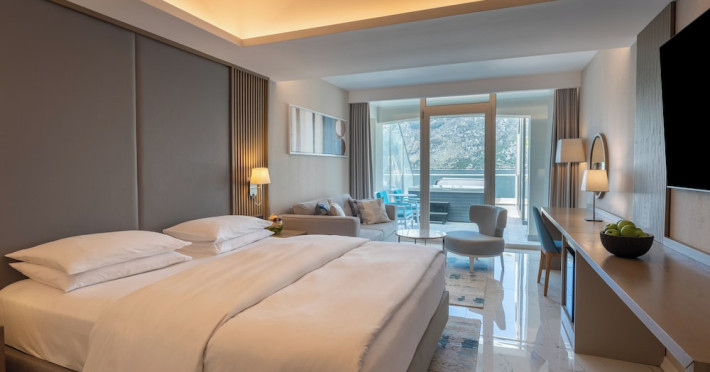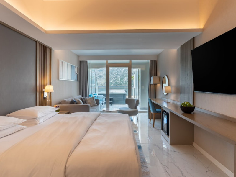 Located in Donji Stoliv, near Kotor Bay, the Hyatt Regency Kotor Bay Resort offers access to a private beach and is approximately 6 km from Kotor's town center. The resort features a full-service spa with massages, body treatments, and facials, as well as two outdoor swimming pools. Guests can enjoy on-site dining at the restaurant, beach restaurant, or coffee bar, and relax at the bar/lounge, beach bar, or poolside bar. A complimentary self-serve breakfast is served daily. The hotel provides complimentary wireless internet access, concierge services, dry cleaning/laundry services, a 24-hour front desk, luggage storage, and valet parking. Event facilities include conference space and meeting rooms. Individually decorated guestrooms feature minibars, Smart TVs, premium bedding, private bathrooms with showers, complimentary toiletries, and hair dryers. The hotel offers transfer services and an airport shuttle for a surcharge. Pets are not allowed. Tivat Airport is approximately 13-15 km away. The Hyatt Regency Kotor Bay Resort is a hotel.