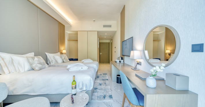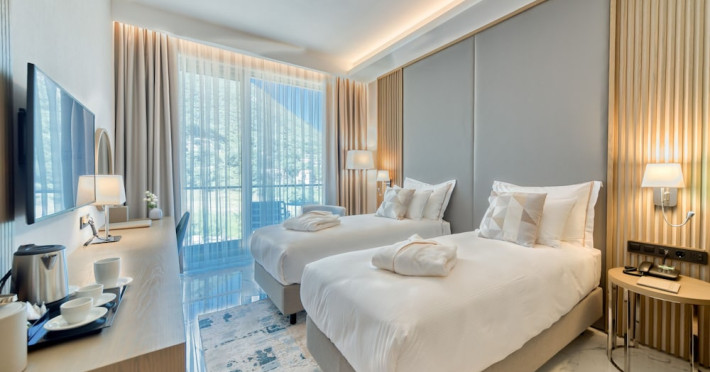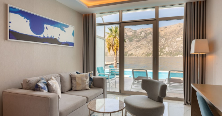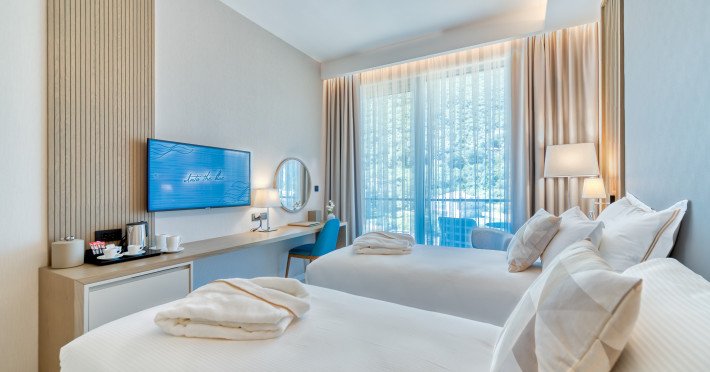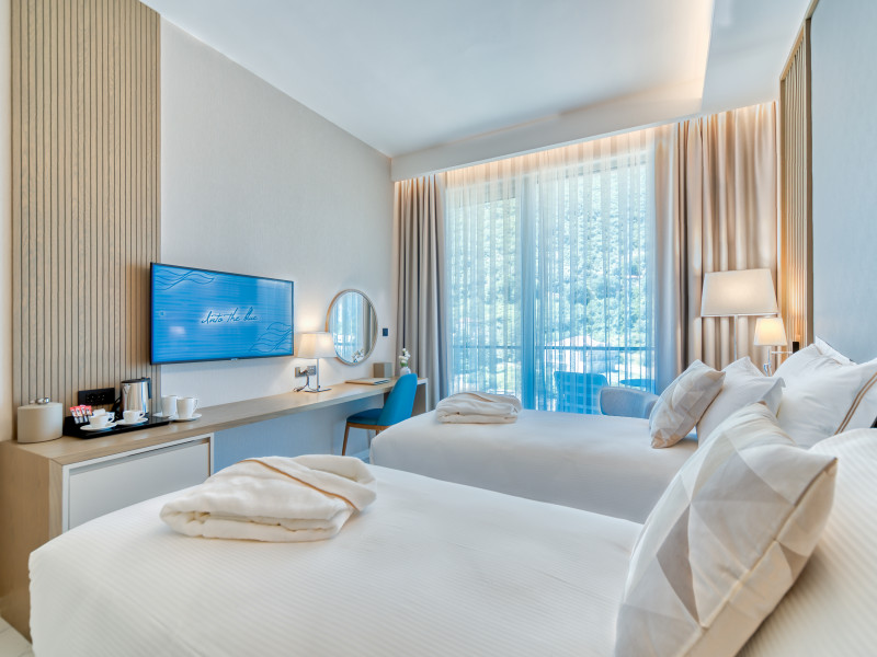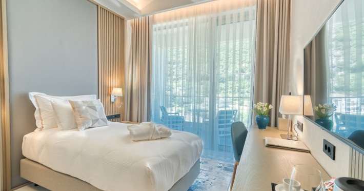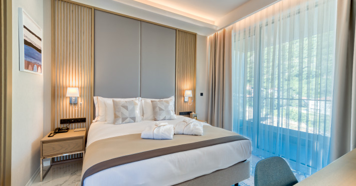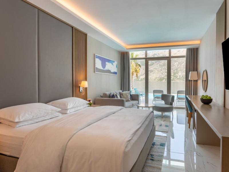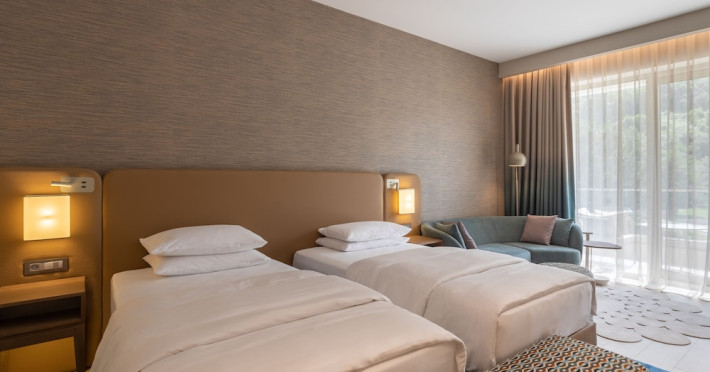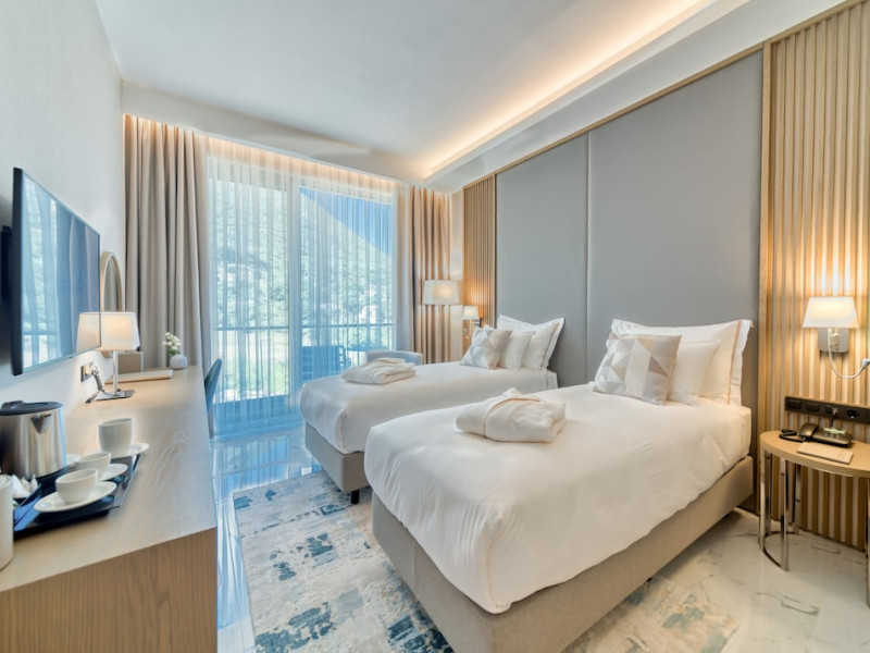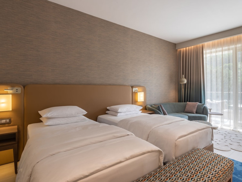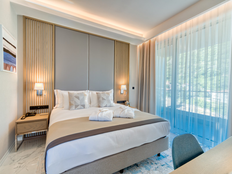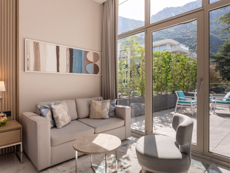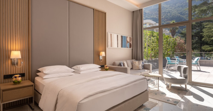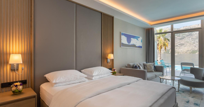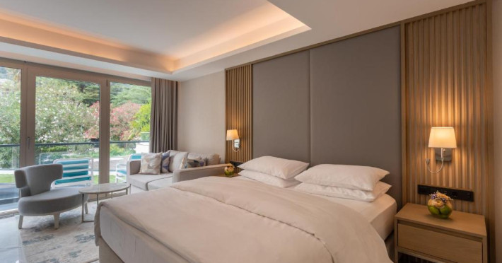 Located in Donji Stoliv, near Kotor Bay, the Hyatt Regency Kotor Bay Resort offers access to a private beach and is approximately 6 km from Kotor's town center. The resort features a full-service spa with massages, body treatments, and facials, as well as two outdoor swimming pools. Guests can enjoy on-site dining at the restaurant, beach restaurant, or coffee bar, and relax at the bar/lounge, beach bar, or poolside bar. A complimentary self-serve breakfast is served daily. The hotel provides complimentary wireless internet access, concierge services, dry cleaning/laundry services, a 24-hour front desk, luggage storage, and valet parking. Event facilities include conference space and meeting rooms. Individually decorated guestrooms feature minibars, Smart TVs, premium bedding, private bathrooms with showers, complimentary toiletries, and hair dryers. The hotel offers transfer services and an airport shuttle for a surcharge. Pets are not allowed. Tivat Airport is approximately 13-15 km away. The Hyatt Regency Kotor Bay Resort is a hotel.