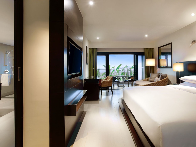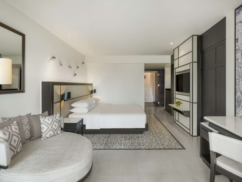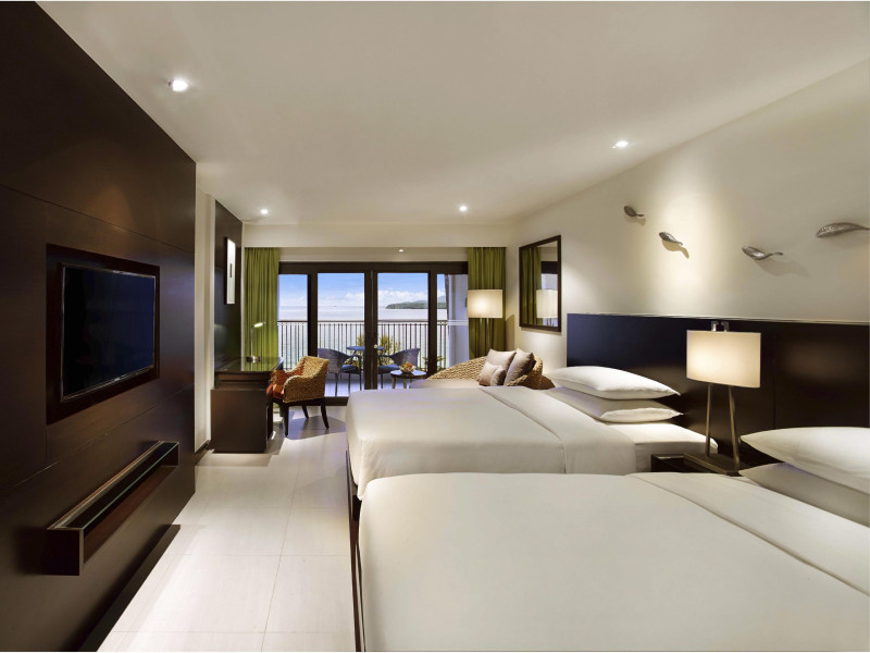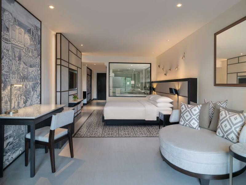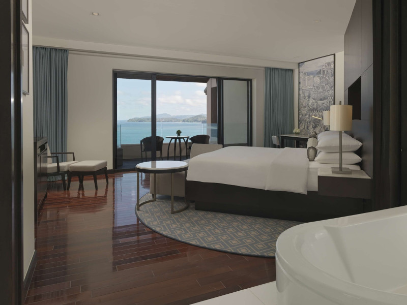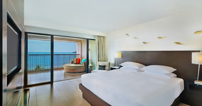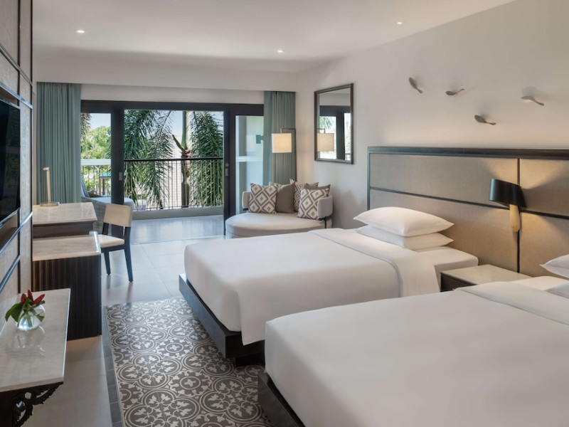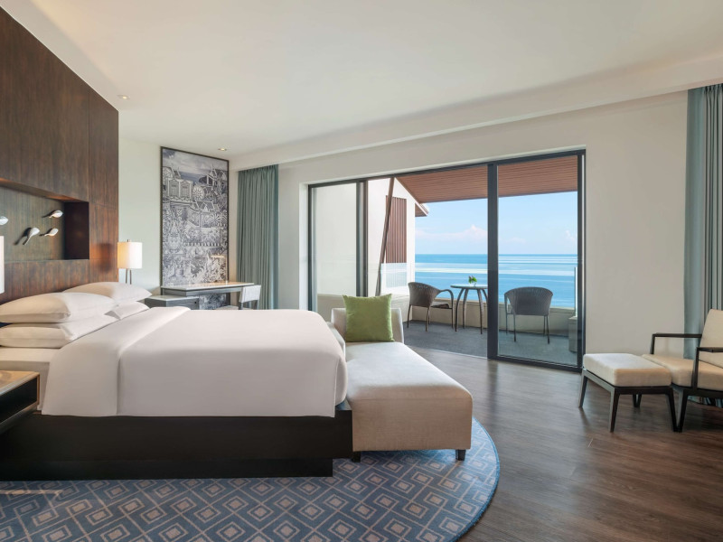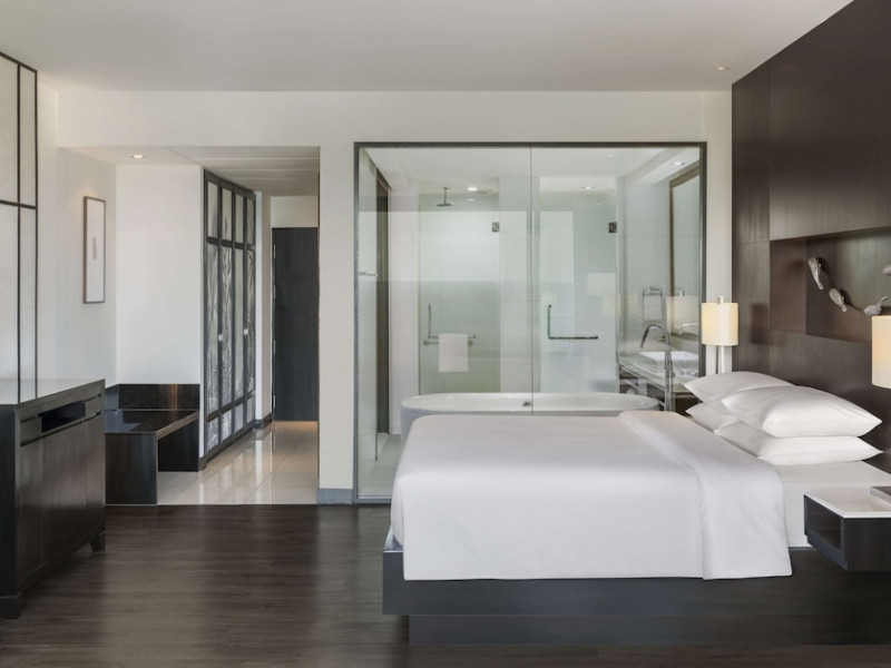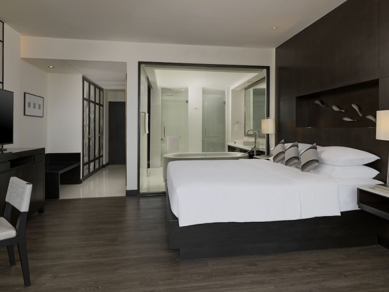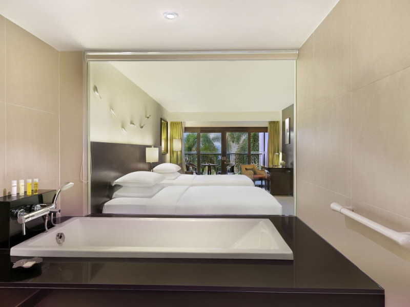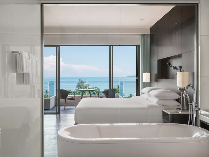 Located near Kamala Beach, the Hyatt Regency Phuket Resort offers a beachfront experience with views of the Andaman Sea. It features multiple dining options including The Pool House Kitchen serving international cuisine, Mizu offering Teppanyaki, 180 Degrees poolside bar, and Casa Boho with Latin American flavors. Guests can enjoy recreational facilities such as an outdoor pool, a 24-hour fitness center, and the Nahm Spa offering massages, body treatments, and facials. Amenities include complimentary wireless internet access, concierge services, babysitting (surcharge), limo/town car service, a computer station, and dry cleaning/laundry services. The resort also offers 2325 square feet of conference space with 6 meeting rooms and event spaces like White Canvas. Buffet breakfasts are available daily (surcharge). Onsite parking is complimentary, and a roundtrip airport shuttle is available (surcharge). The resort has air-conditioned rooms with refrigerators, LCD televisions, private balconies, and bathrooms with separate bathtubs and showers featuring deep soaking bathtubs and rainfall showerheads. The Hyatt Regency Phuket Resort is a Beach Resort, Tourist hotel. The nightlife/restaurants are easily accessible by taxi or bus from the hotel.