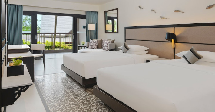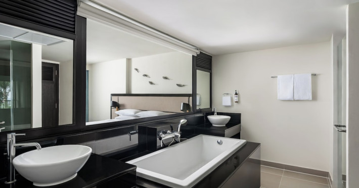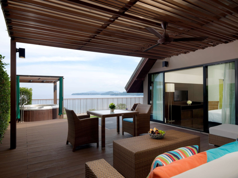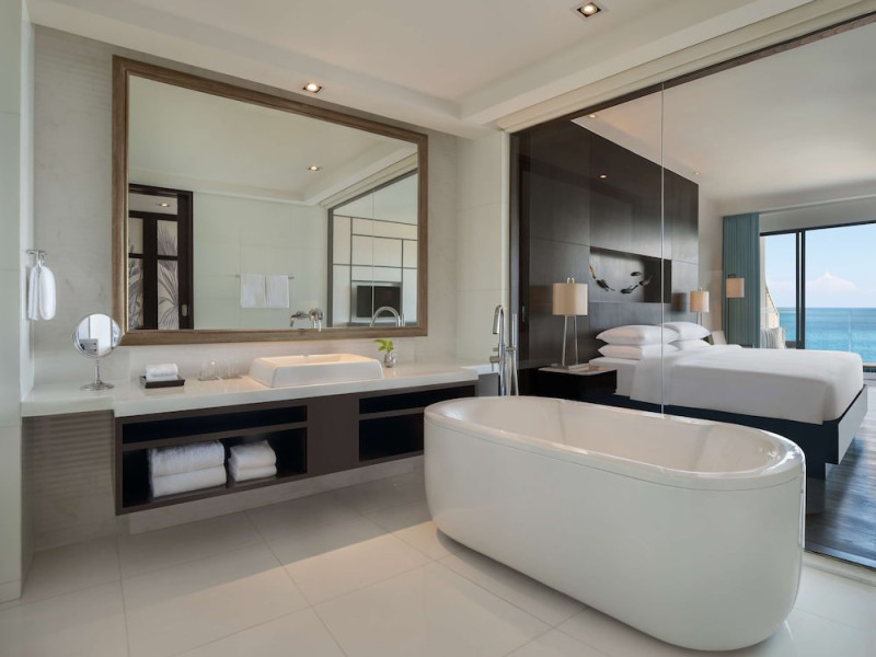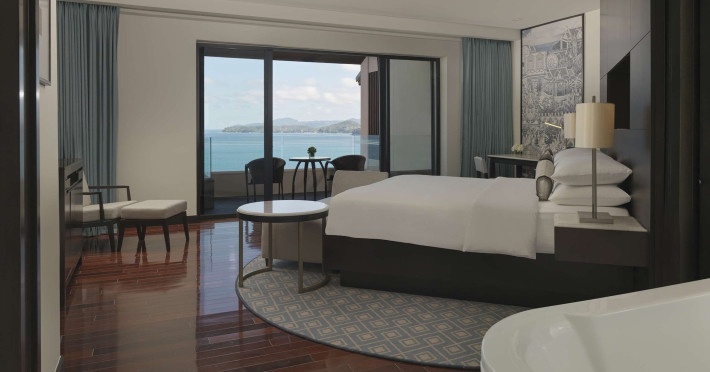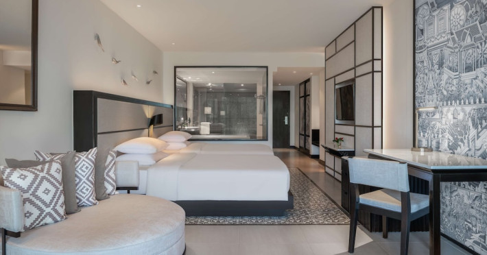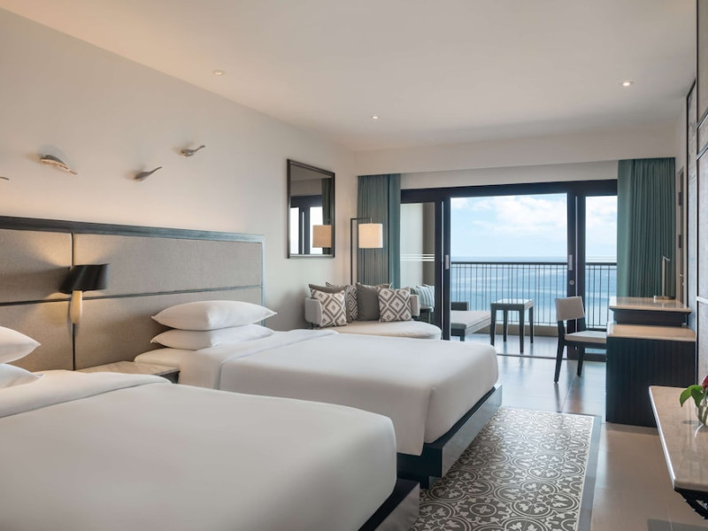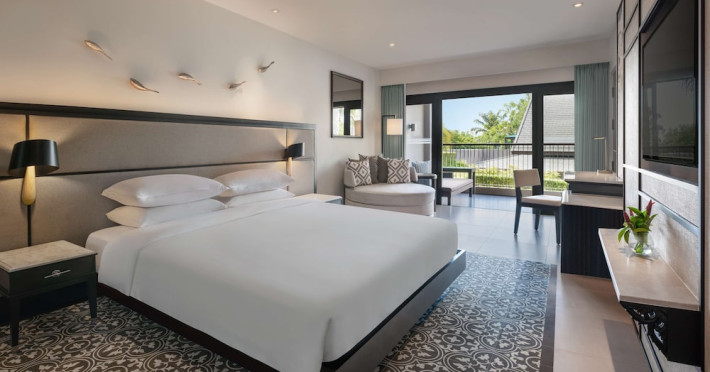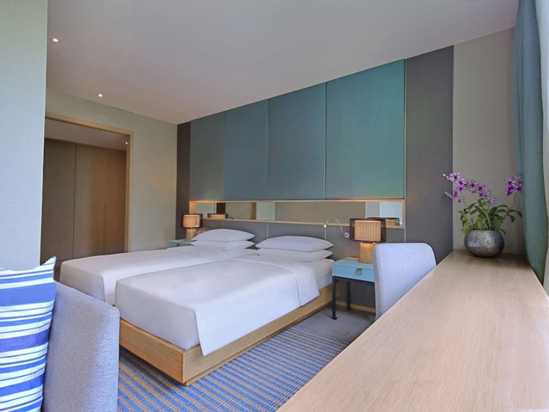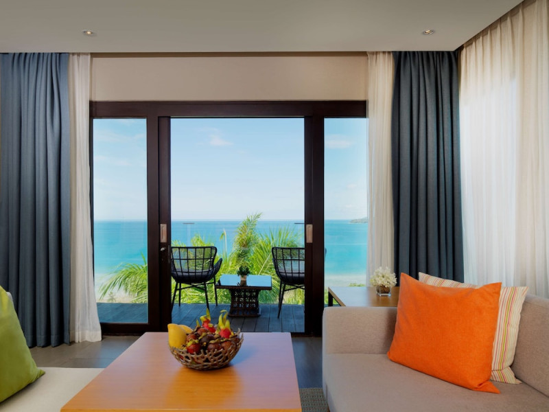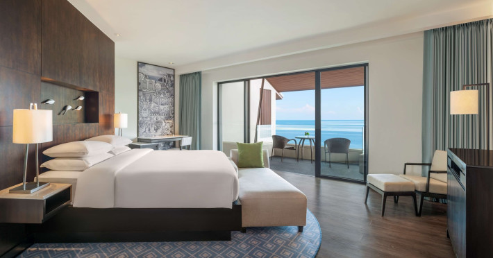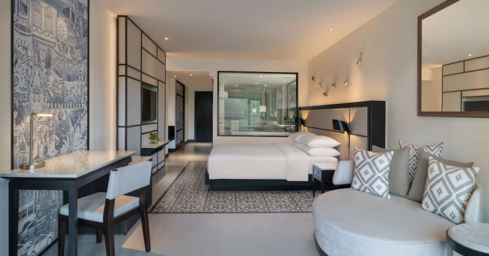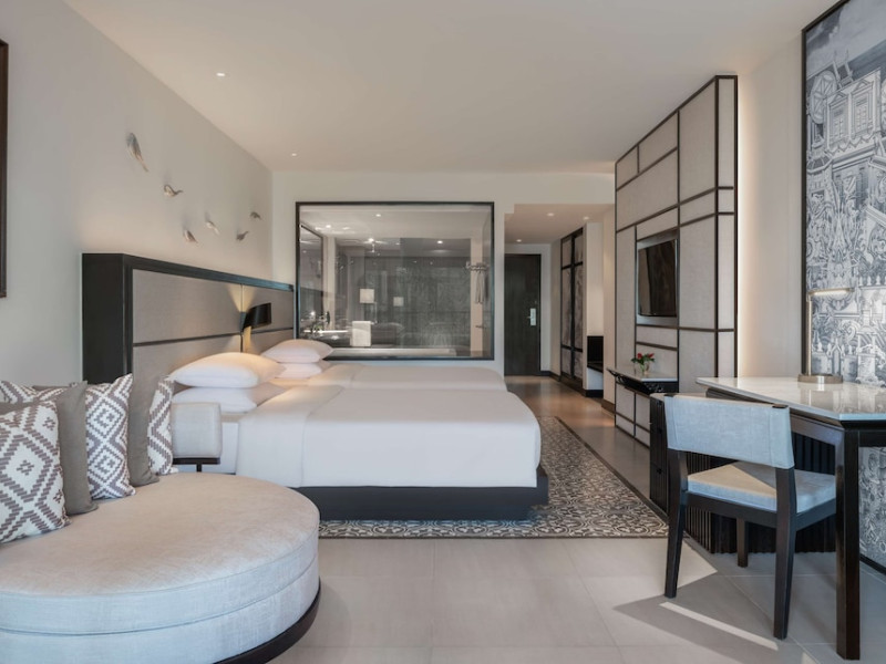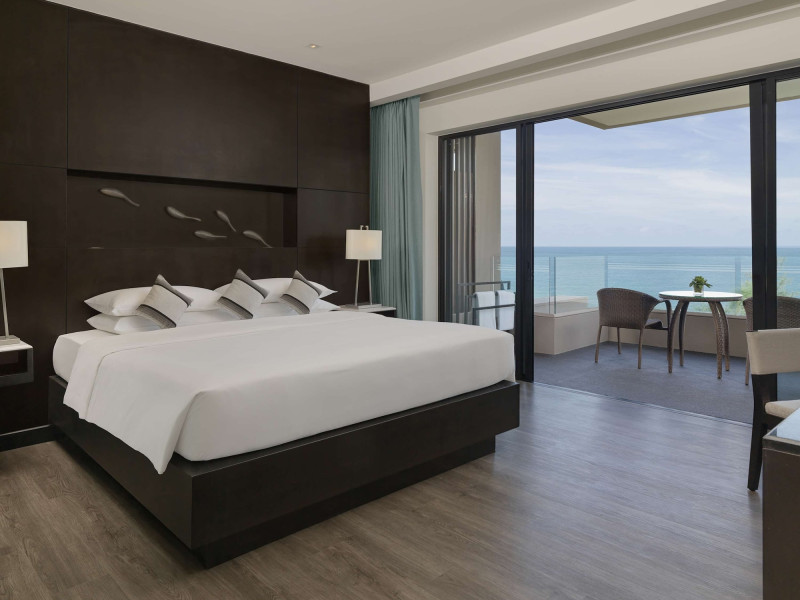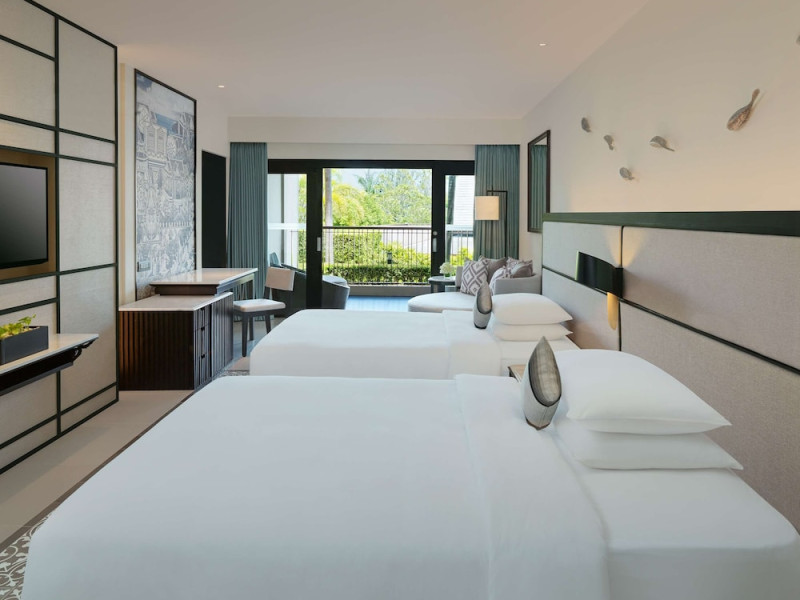 Located near Kamala Beach, the Hyatt Regency Phuket Resort offers a beachfront experience with views of the Andaman Sea. It features multiple dining options including The Pool House Kitchen serving international cuisine, Mizu offering Teppanyaki, 180 Degrees poolside bar, and Casa Boho with Latin American flavors. Guests can enjoy recreational facilities such as an outdoor pool, a 24-hour fitness center, and the Nahm Spa offering massages, body treatments, and facials. Amenities include complimentary wireless internet access, concierge services, babysitting (surcharge), limo/town car service, a computer station, and dry cleaning/laundry services. The resort also offers 2325 square feet of conference space with 6 meeting rooms and event spaces like White Canvas. Buffet breakfasts are available daily (surcharge). Onsite parking is complimentary, and a roundtrip airport shuttle is available (surcharge). The resort has air-conditioned rooms with refrigerators, LCD televisions, private balconies, and bathrooms with separate bathtubs and showers featuring deep soaking bathtubs and rainfall showerheads. The Hyatt Regency Phuket Resort is a Beach Resort, Tourist hotel. The nightlife/restaurants are easily accessible by taxi or bus from the hotel.