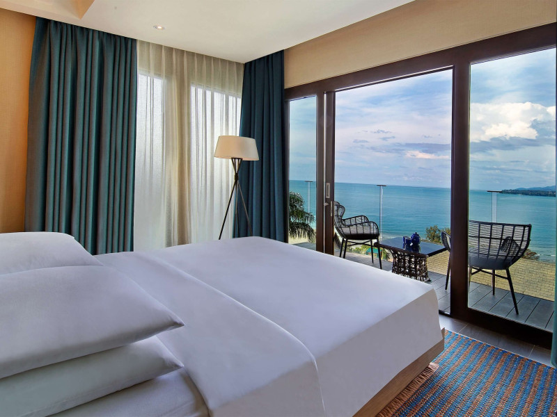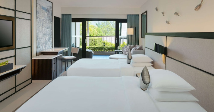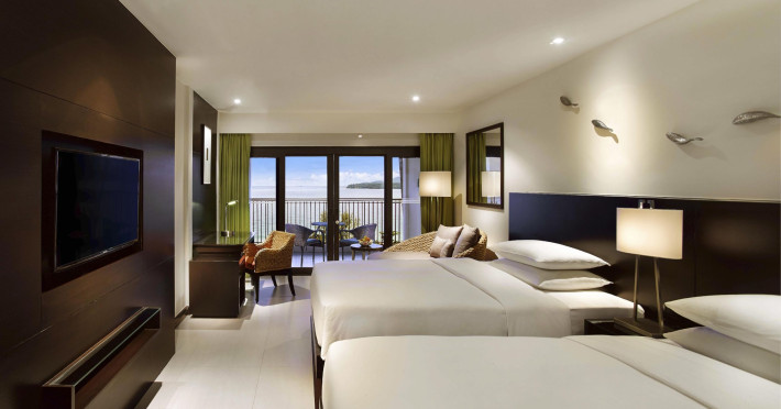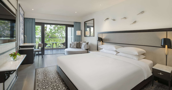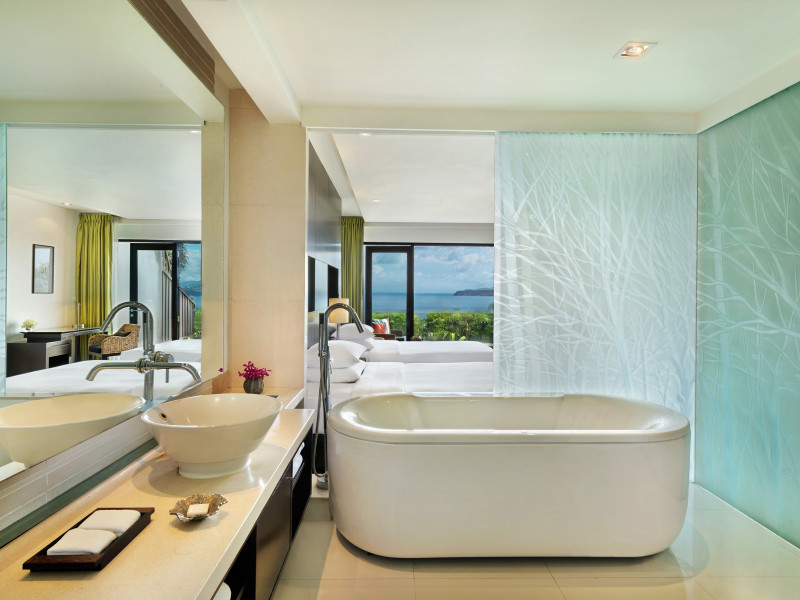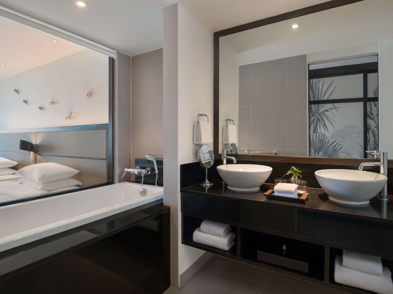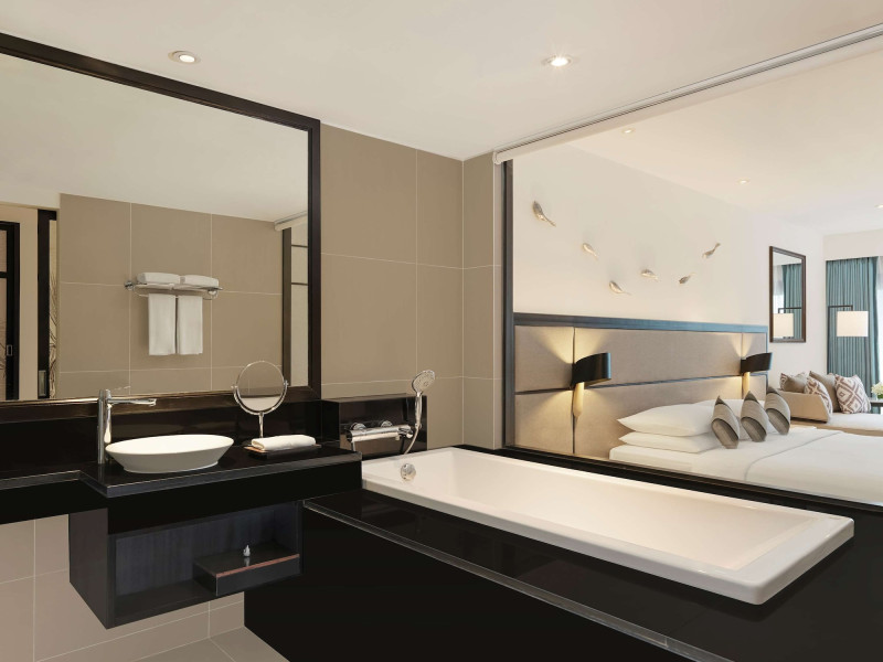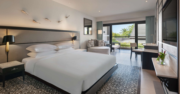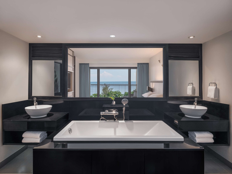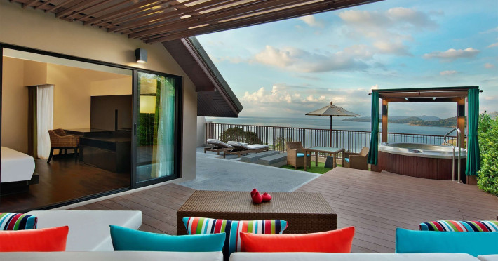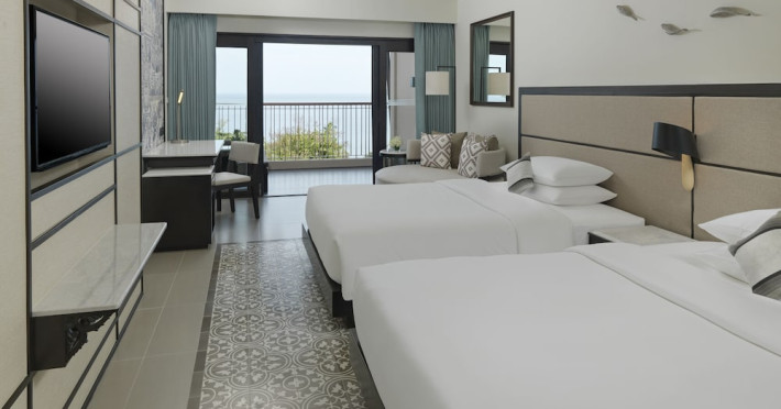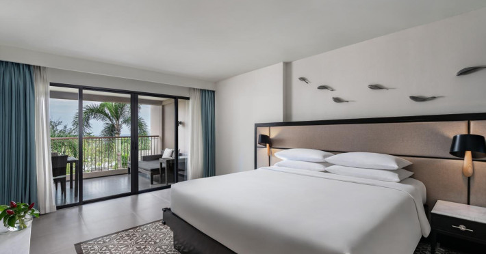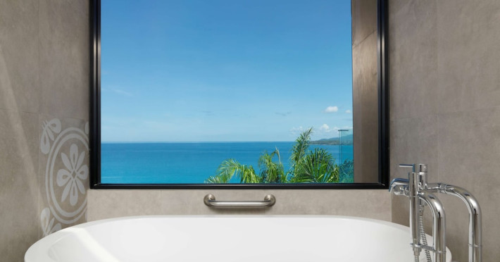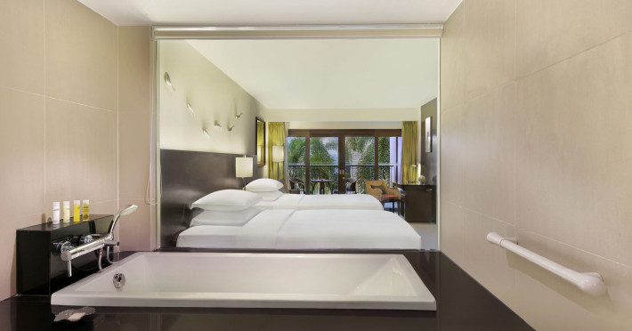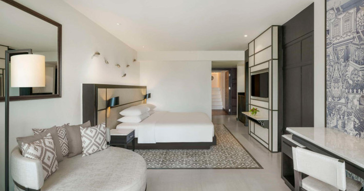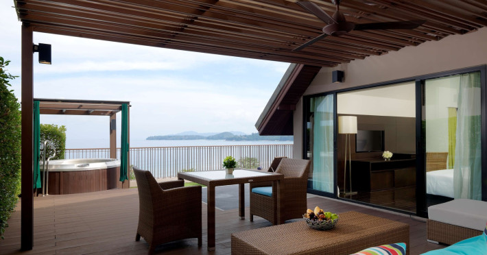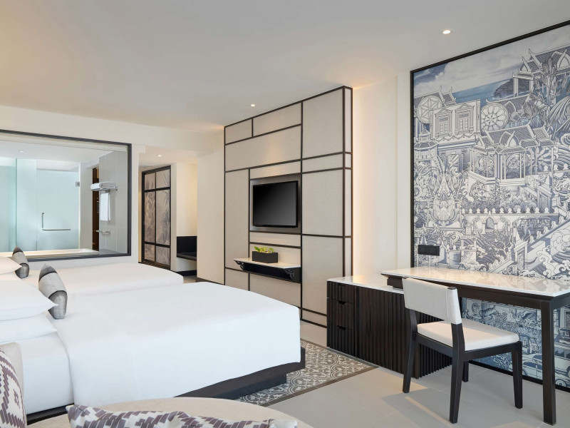 Located near Kamala Beach, the Hyatt Regency Phuket Resort offers a beachfront experience with views of the Andaman Sea. It features multiple dining options including The Pool House Kitchen serving international cuisine, Mizu offering Teppanyaki, 180 Degrees poolside bar, and Casa Boho with Latin American flavors. Guests can enjoy recreational facilities such as an outdoor pool, a 24-hour fitness center, and the Nahm Spa offering massages, body treatments, and facials. Amenities include complimentary wireless internet access, concierge services, babysitting (surcharge), limo/town car service, a computer station, and dry cleaning/laundry services. The resort also offers 2325 square feet of conference space with 6 meeting rooms and event spaces like White Canvas. Buffet breakfasts are available daily (surcharge). Onsite parking is complimentary, and a roundtrip airport shuttle is available (surcharge). The resort has air-conditioned rooms with refrigerators, LCD televisions, private balconies, and bathrooms with separate bathtubs and showers featuring deep soaking bathtubs and rainfall showerheads. The Hyatt Regency Phuket Resort is a Beach Resort, Tourist hotel. The nightlife/restaurants are easily accessible by taxi or bus from the hotel.