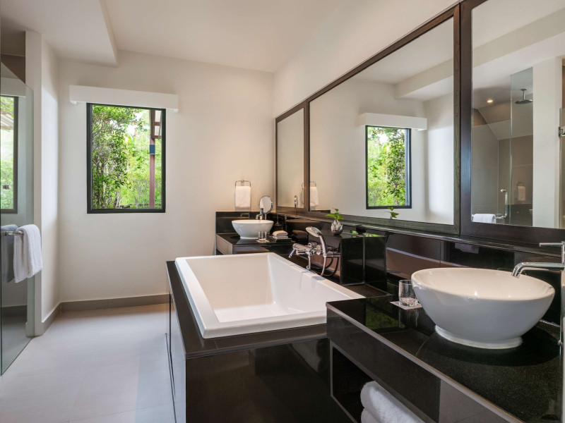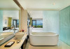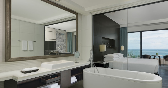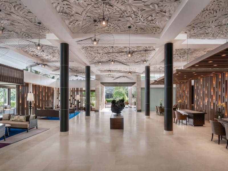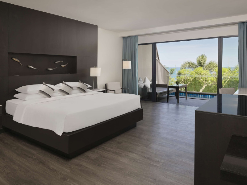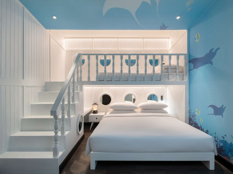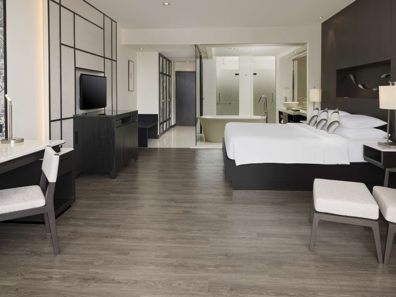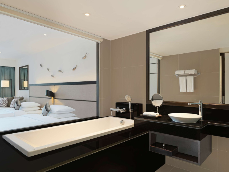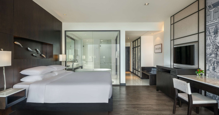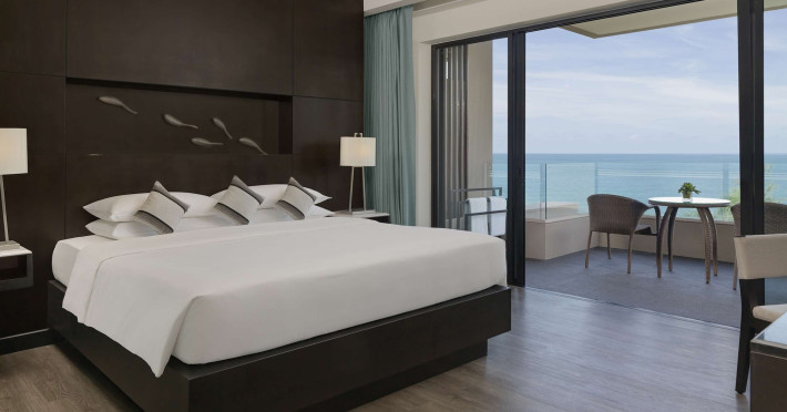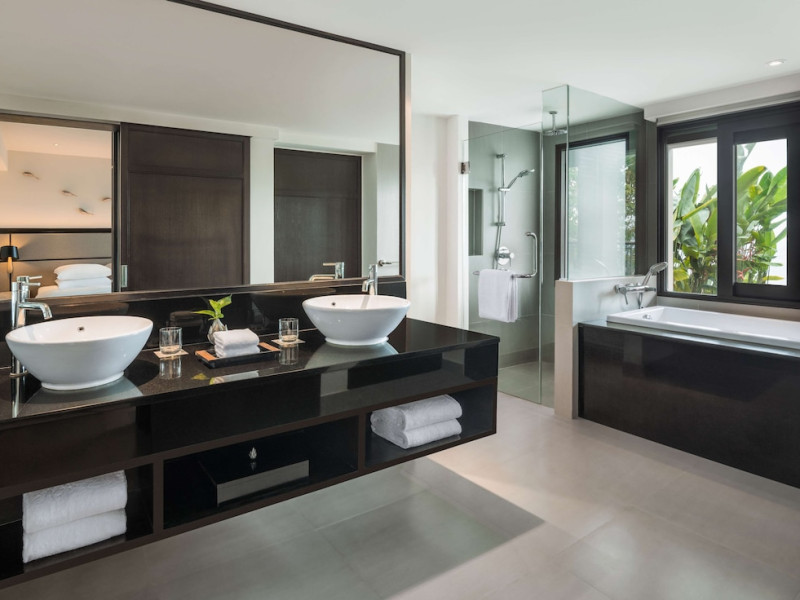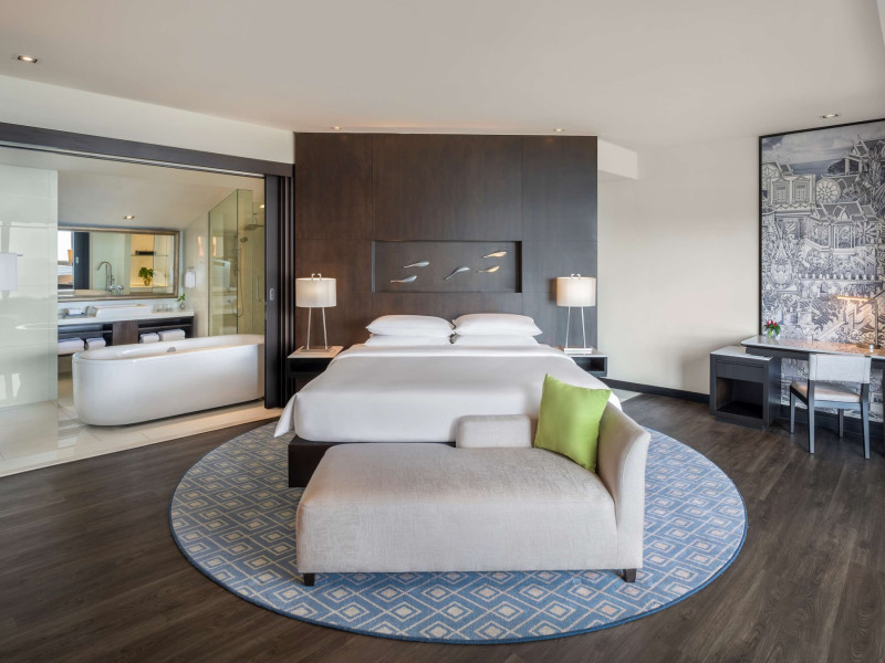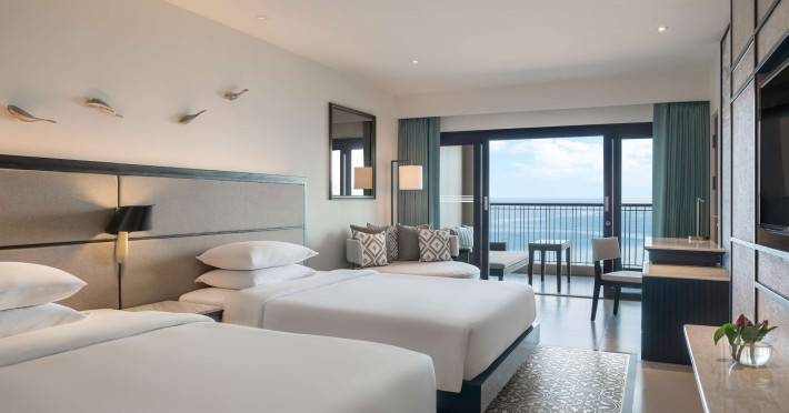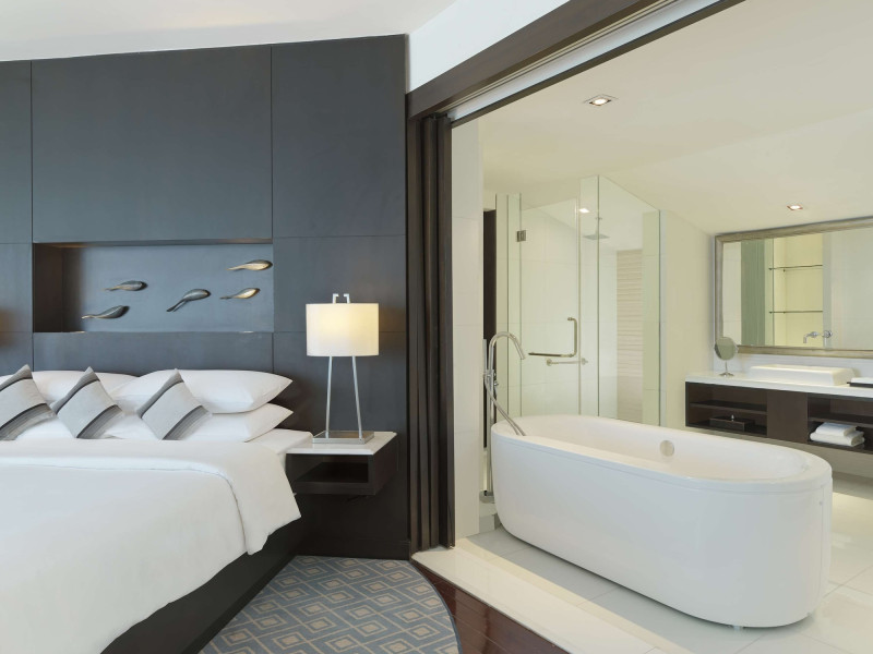 Located near Kamala Beach, the Hyatt Regency Phuket Resort offers a beachfront experience with views of the Andaman Sea. It features multiple dining options including The Pool House Kitchen serving international cuisine, Mizu offering Teppanyaki, 180 Degrees poolside bar, and Casa Boho with Latin American flavors. Guests can enjoy recreational facilities such as an outdoor pool, a 24-hour fitness center, and the Nahm Spa offering massages, body treatments, and facials. Amenities include complimentary wireless internet access, concierge services, babysitting (surcharge), limo/town car service, a computer station, and dry cleaning/laundry services. The resort also offers 2325 square feet of conference space with 6 meeting rooms and event spaces like White Canvas. Buffet breakfasts are available daily (surcharge). Onsite parking is complimentary, and a roundtrip airport shuttle is available (surcharge). The resort has air-conditioned rooms with refrigerators, LCD televisions, private balconies, and bathrooms with separate bathtubs and showers featuring deep soaking bathtubs and rainfall showerheads. The Hyatt Regency Phuket Resort is a Beach Resort, Tourist hotel. The nightlife/restaurants are easily accessible by taxi or bus from the hotel.