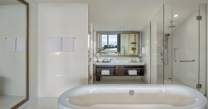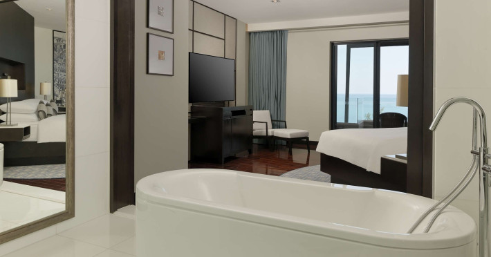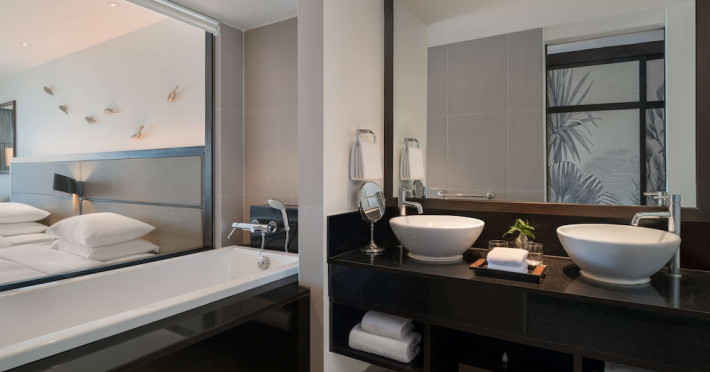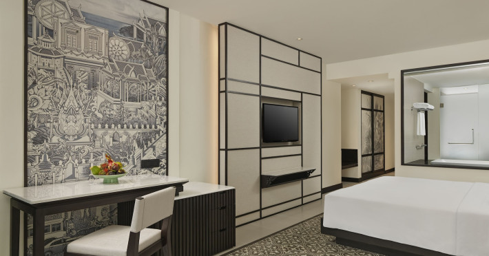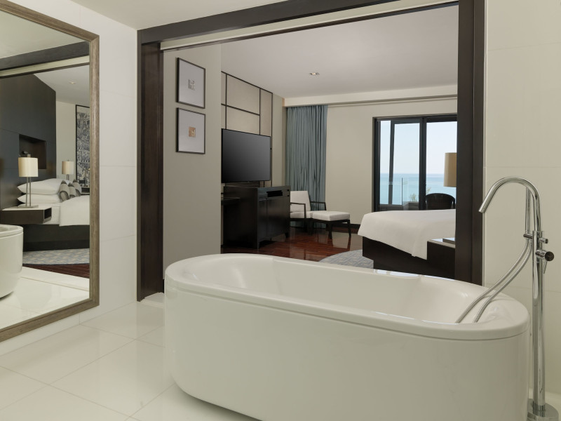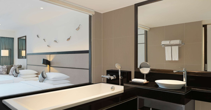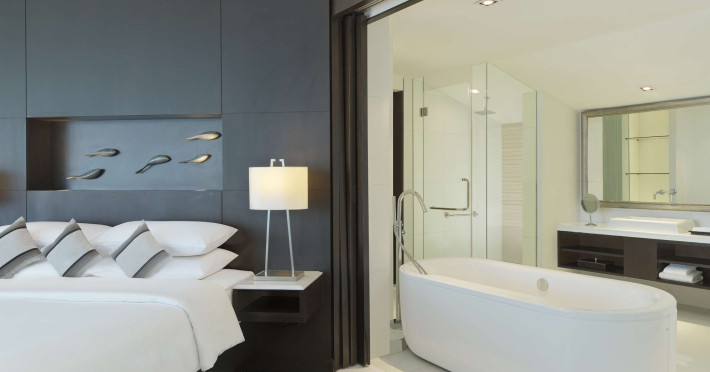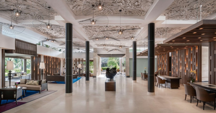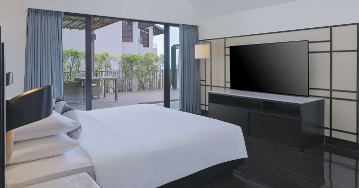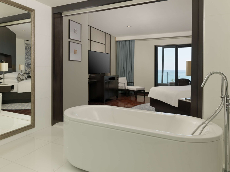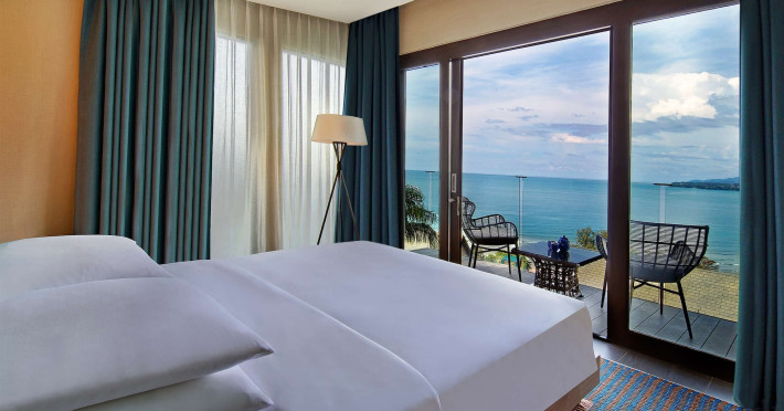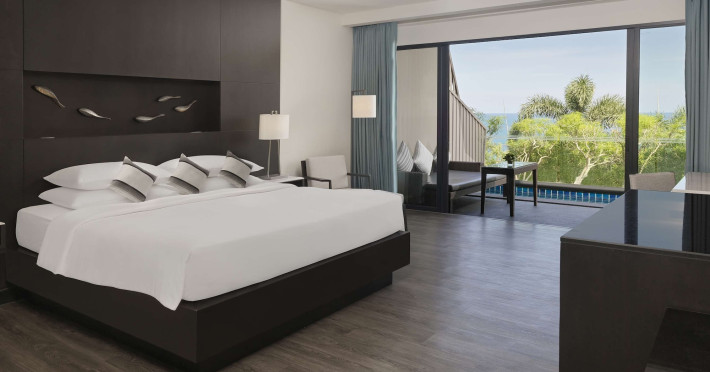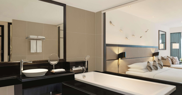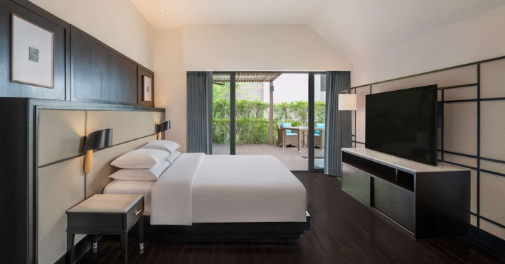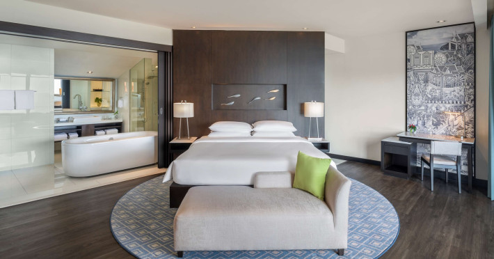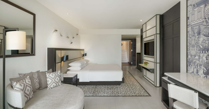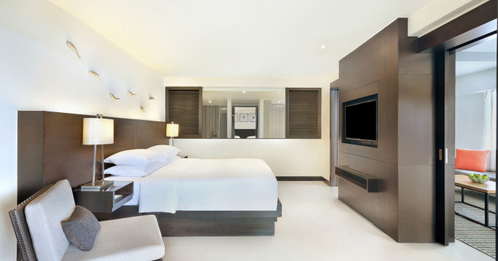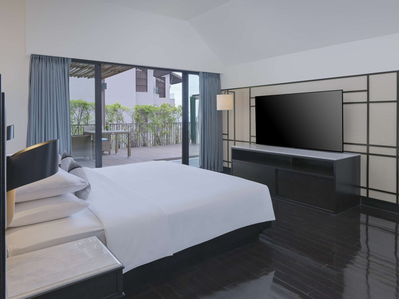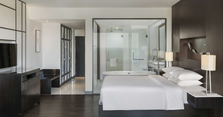 Located near Kamala Beach, the Hyatt Regency Phuket Resort offers a beachfront experience with views of the Andaman Sea. It features multiple dining options including The Pool House Kitchen serving international cuisine, Mizu offering Teppanyaki, 180 Degrees poolside bar, and Casa Boho with Latin American flavors. Guests can enjoy recreational facilities such as an outdoor pool, a 24-hour fitness center, and the Nahm Spa offering massages, body treatments, and facials. Amenities include complimentary wireless internet access, concierge services, babysitting (surcharge), limo/town car service, a computer station, and dry cleaning/laundry services. The resort also offers 2325 square feet of conference space with 6 meeting rooms and event spaces like White Canvas. Buffet breakfasts are available daily (surcharge). Onsite parking is complimentary, and a roundtrip airport shuttle is available (surcharge). The resort has air-conditioned rooms with refrigerators, LCD televisions, private balconies, and bathrooms with separate bathtubs and showers featuring deep soaking bathtubs and rainfall showerheads. The Hyatt Regency Phuket Resort is a Beach Resort, Tourist hotel. The nightlife/restaurants are easily accessible by taxi or bus from the hotel.