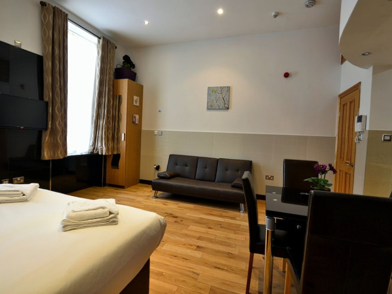 Located in the heart of London, Hyde Park Apartments offers individually decorated apartments with kitchens featuring refrigerators and stovetops. Complimentary Wi-Fi is available, and flat-screen televisions with digital programming provide entertainment. Conveniences include microwaves and coffee/tea makers, with weekly housekeeping provided. The hotel is a short walk from Hyde Park and Kensington Gardens, and Paddington Station is nearby, offering easy access to the city. Guests can enjoy a terrace and garden. Laundry and bicycle rental services are available. The HYDE PARK APARTMENTS is a hotel. Located in City Centre - Westminster area.