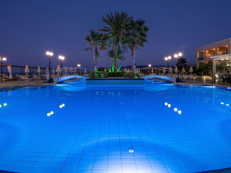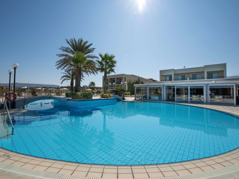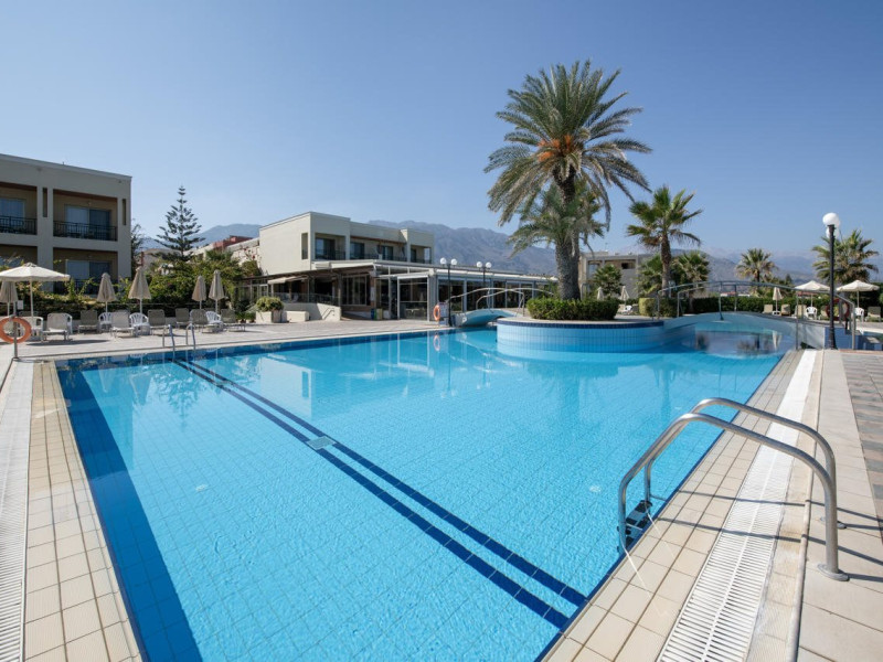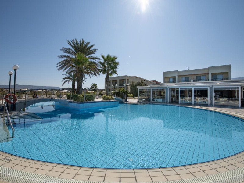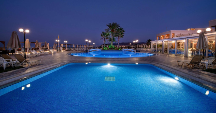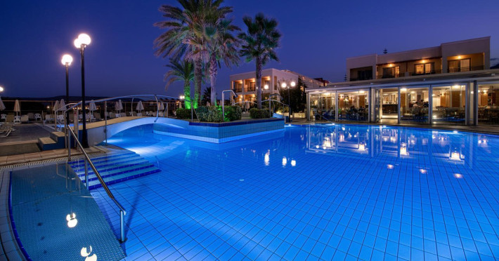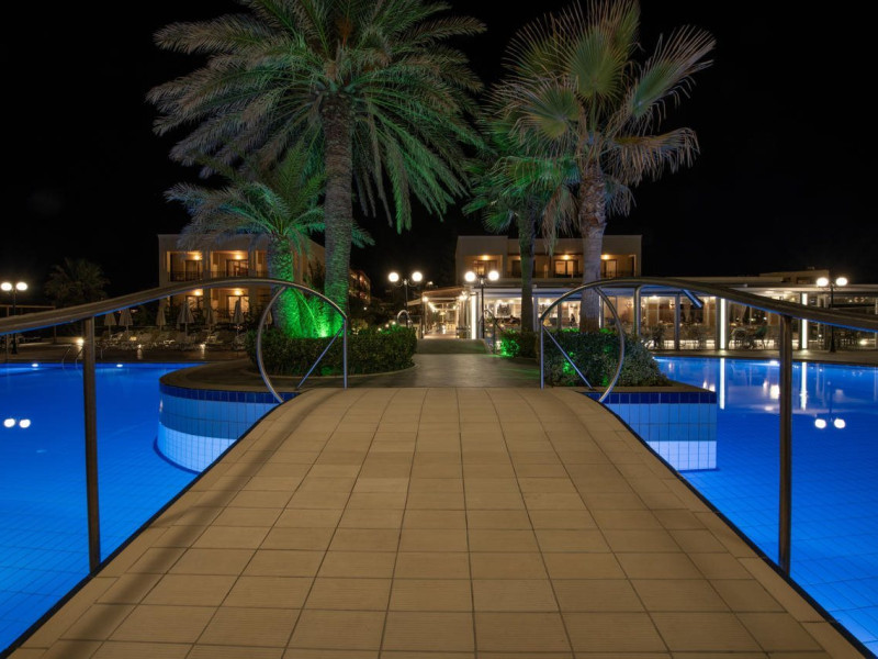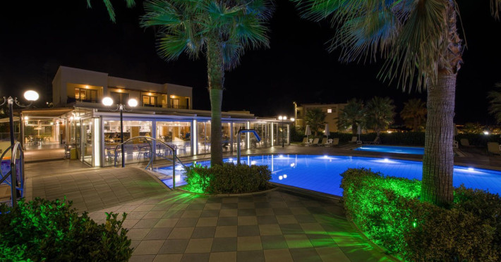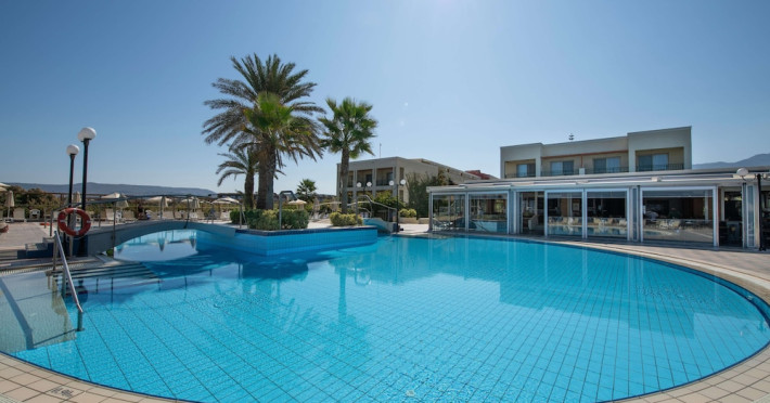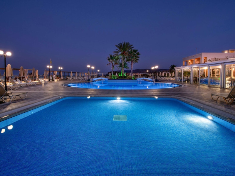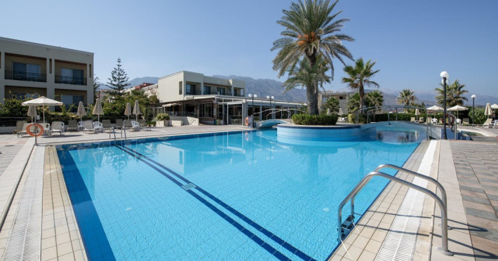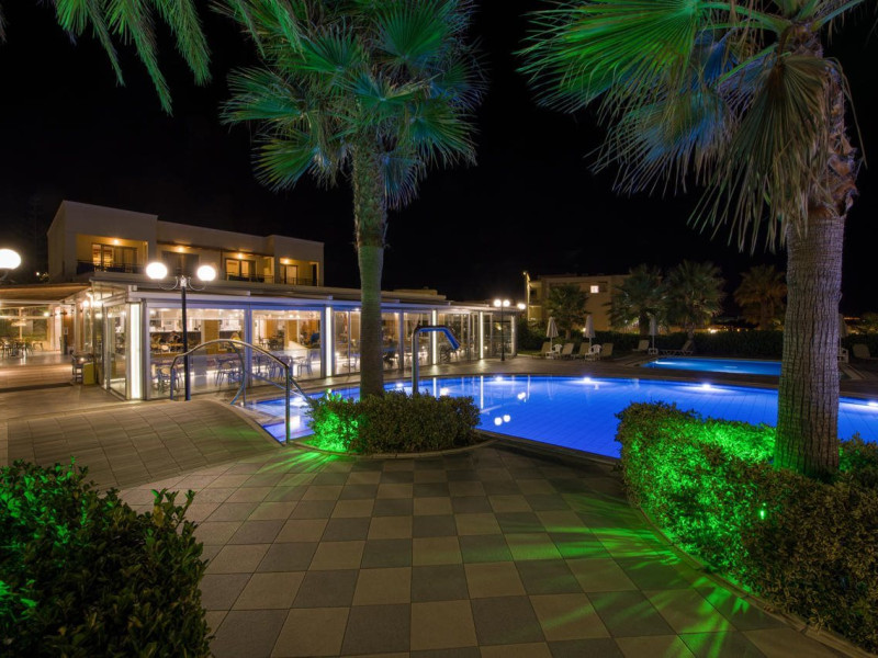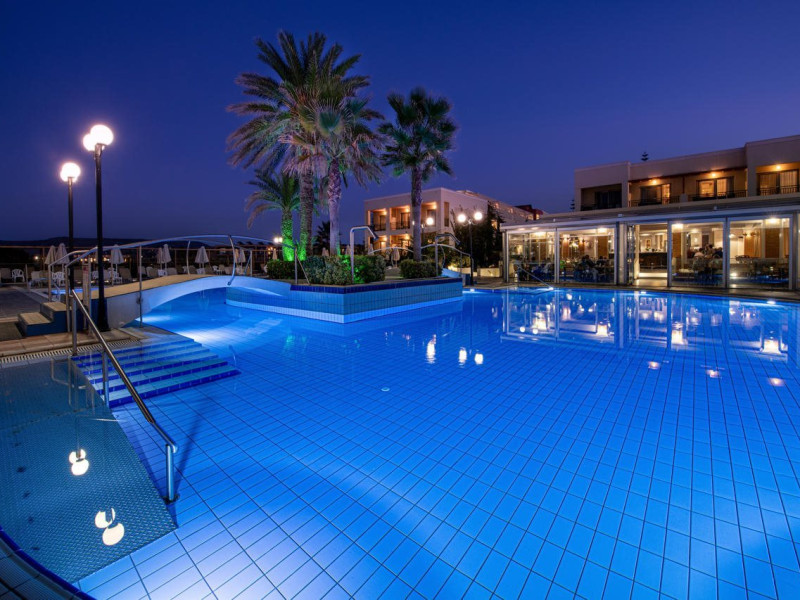 Facilities and services include 24-hour reception, lobby, lounge with terrace, elevators, satellite TV corner, internet corner (extra charge), Wi-Fi in some public areas, outdoor swimming pool, sunbeds & umbrellas (free at the pool & the beach), pool/beach towels (free of charge), outdoor shower, changing cabin, mini market, souvenir shop, boutique, conference room with audio-visual equipment (up to 230 seats), car rental, garden, amphitheater, on-site parking, first aid (on request), doctor on call (extra charge), a restaurant with terrace, a bar, a pool snack bar, babysitting service (on request with extra charge), children’s pool, outdoor playground, mini disco & mini club, a fitness room, a spa center with massage room (extra charge), beauty treatments (extra charge), hair salon (extra charge), and a nail salon (extra charge).Sports facilities include table tennis, billiards (extra charge), tennis court (extra charge for floodlight), mini football court (extra charge for floodlight), basketball court (extra charge for floodlight), and beach volleyball court (extra charge for floodlight).Rooms feature air-conditioning/central heating (operates June-September), internet access, direct-dial telephone, electronic safety deposit box (extra charge), flat-screen TV (with satellite channels), mini fridge, bathtub/WC or shower/WC, hairdryer, cosmetic mirror, bathroom amenities, bathroom telephone, balcony/terrace, room service (08:00- 22:00, with extra charge), maid service (daily), towel change (3 times per week), linen change (3 times per week), laundry & ironing service (extra charge), a baby cot (on request, free of charge), highchair (on request),Please note that some of the services/facilities might not be available due to seasonal / weather conditions.Address: Apokoronas area, 73007 Georgioupolis, Chania, Crete, Greece.
