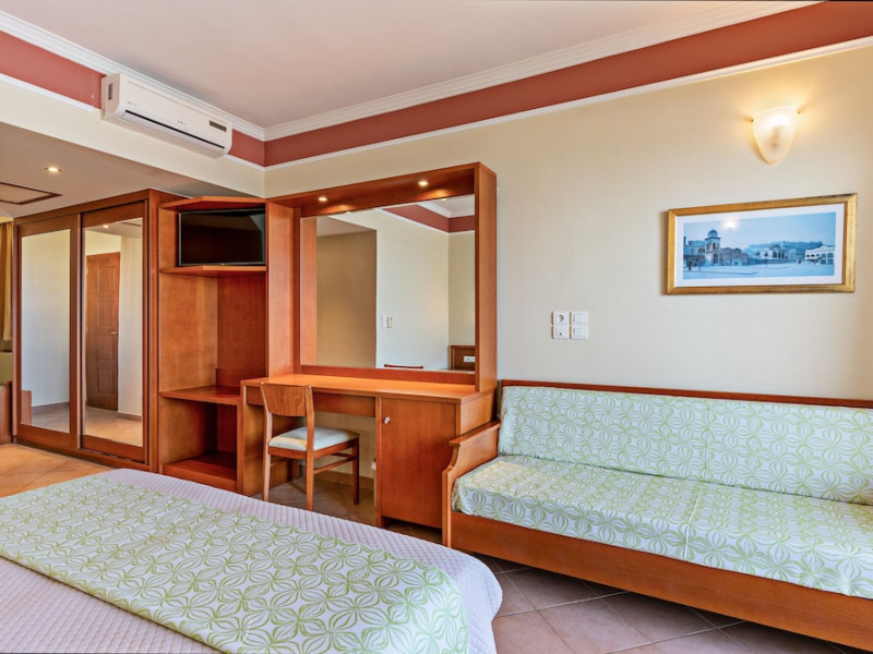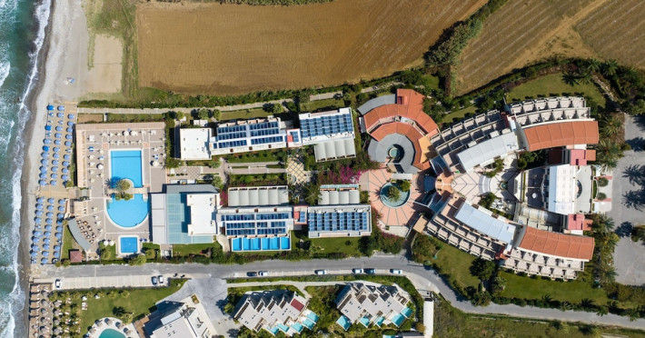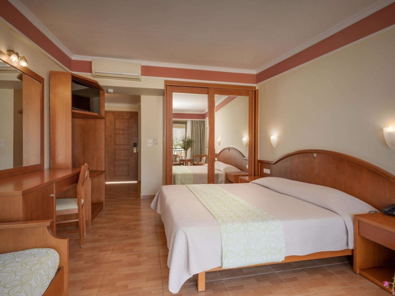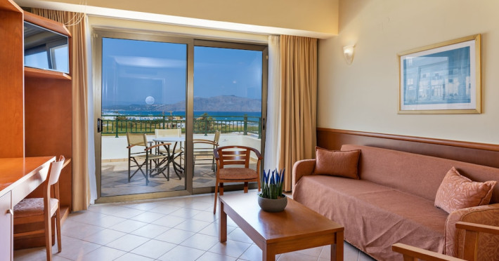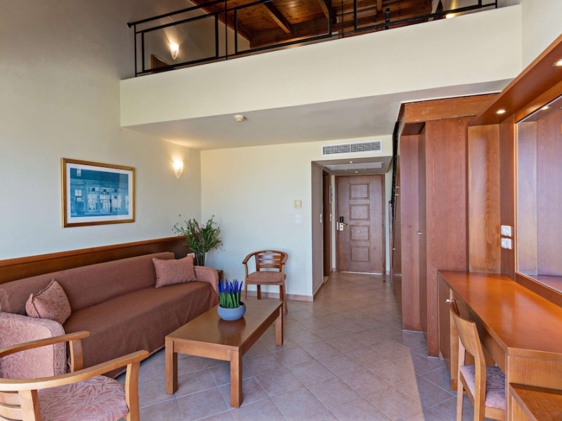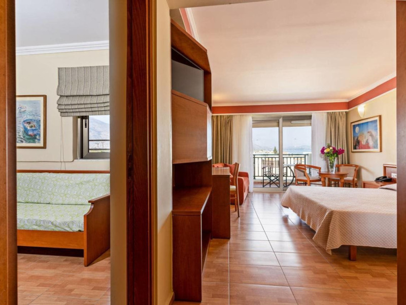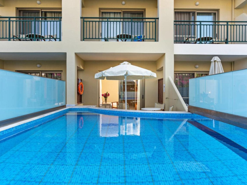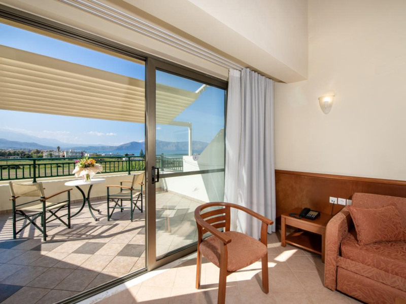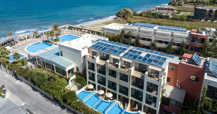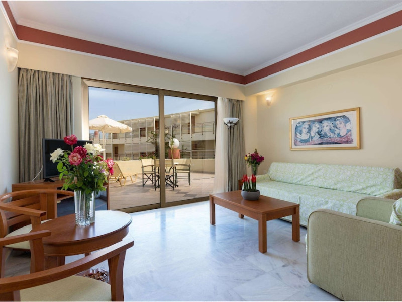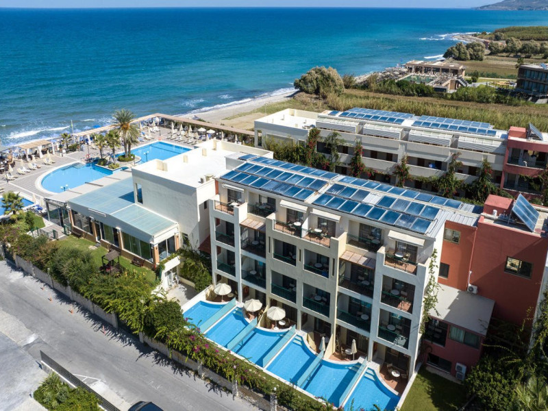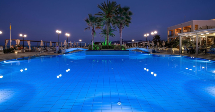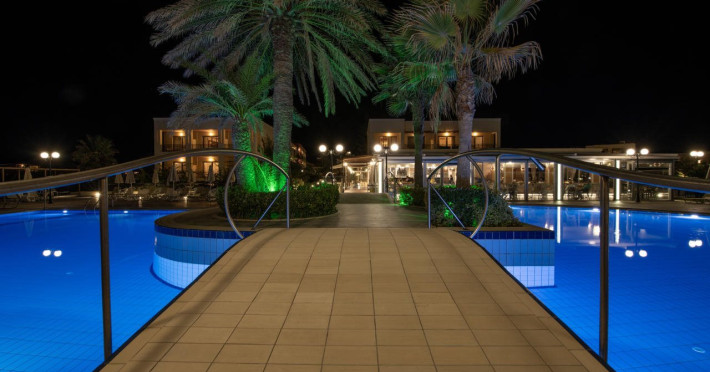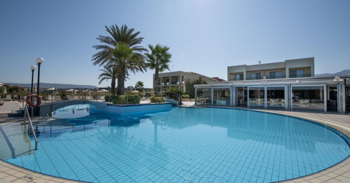 Facilities and services include 24-hour reception, lobby, lounge with terrace, elevators, satellite TV corner, internet corner (extra charge), Wi-Fi in some public areas, outdoor swimming pool, sunbeds & umbrellas (free at the pool & the beach), pool/beach towels (free of charge), outdoor shower, changing cabin, mini market, souvenir shop, boutique, conference room with audio-visual equipment (up to 230 seats), car rental, garden, amphitheater, on-site parking, first aid (on request), doctor on call (extra charge), a restaurant with terrace, a bar, a pool snack bar, babysitting service (on request with extra charge), children’s pool, outdoor playground, mini disco & mini club, a fitness room, a spa center with massage room (extra charge), beauty treatments (extra charge), hair salon (extra charge), and a nail salon (extra charge).Sports facilities include table tennis, billiards (extra charge), tennis court (extra charge for floodlight), mini football court (extra charge for floodlight), basketball court (extra charge for floodlight), and beach volleyball court (extra charge for floodlight).Rooms feature air-conditioning/central heating (operates June-September), internet access, direct-dial telephone, electronic safety deposit box (extra charge), flat-screen TV (with satellite channels), mini fridge, bathtub/WC or shower/WC, hairdryer, cosmetic mirror, bathroom amenities, bathroom telephone, balcony/terrace, room service (08:00- 22:00, with extra charge), maid service (daily), towel change (3 times per week), linen change (3 times per week), laundry & ironing service (extra charge), a baby cot (on request, free of charge), highchair (on request),Please note that some of the services/facilities might not be available due to seasonal / weather conditions.Address: Apokoronas area, 73007 Georgioupolis, Chania, Crete, Greece.
