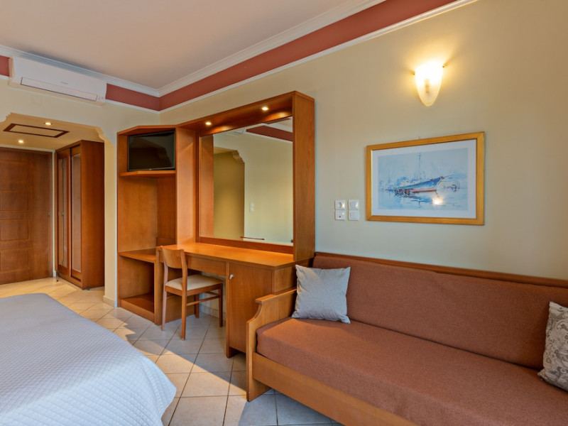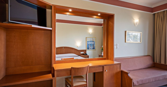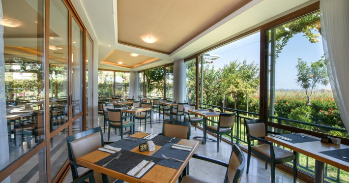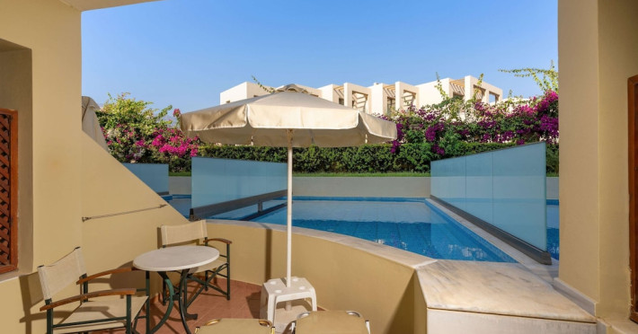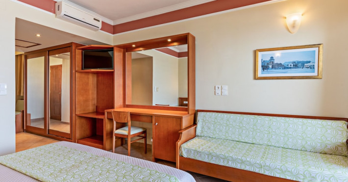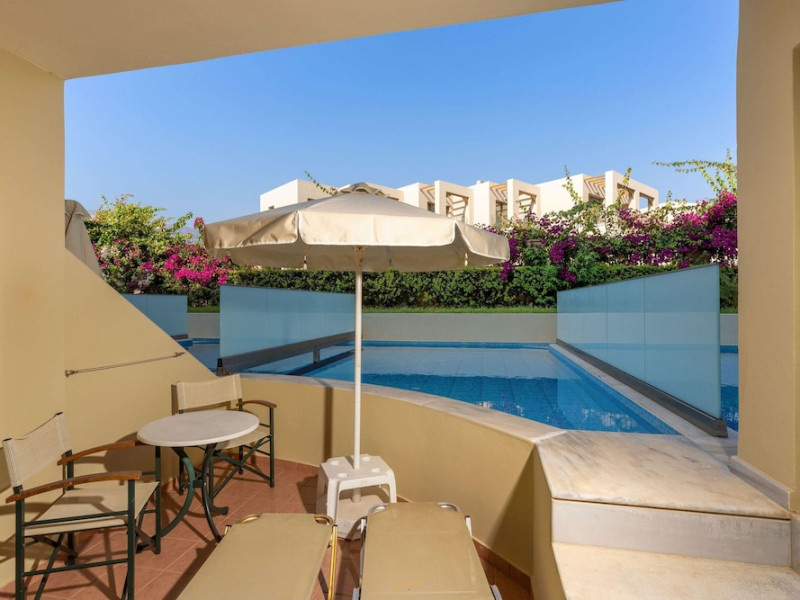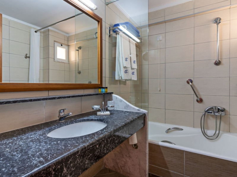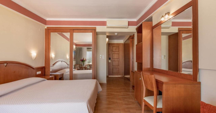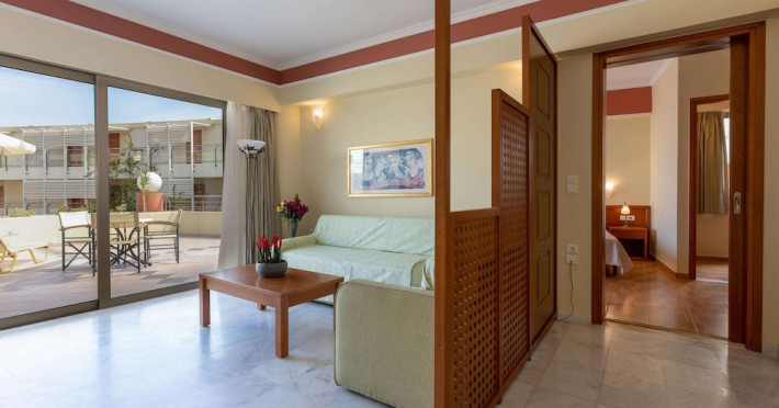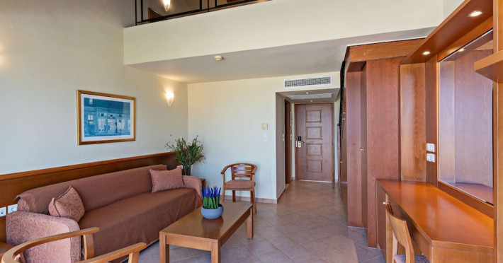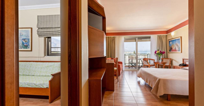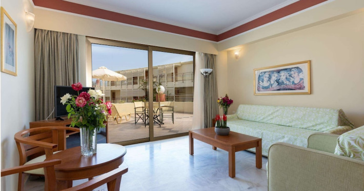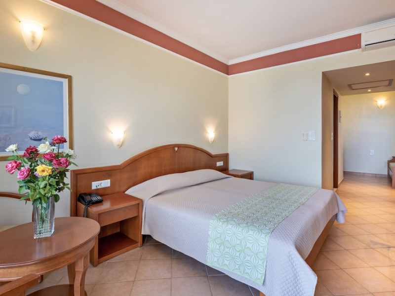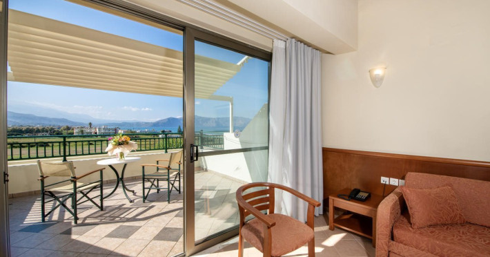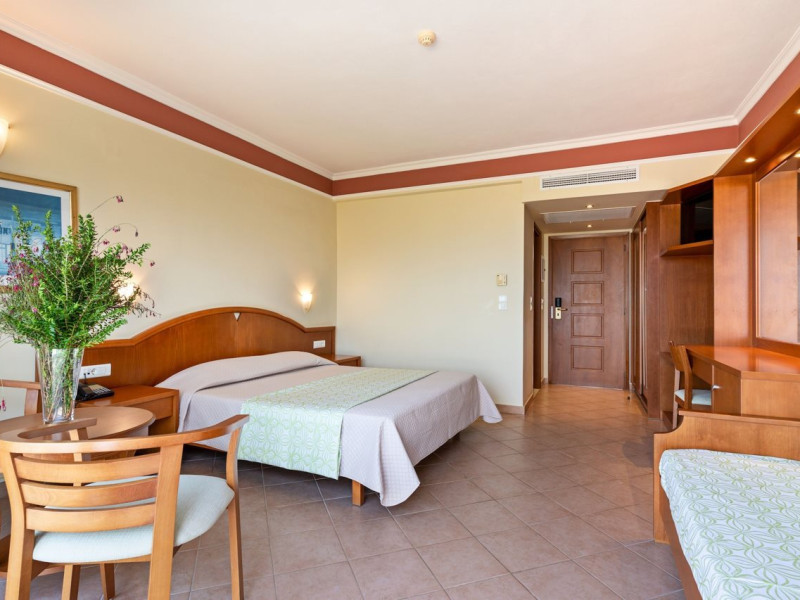 Facilities and services include 24-hour reception, lobby, lounge with terrace, elevators, satellite TV corner, internet corner (extra charge), Wi-Fi in some public areas, outdoor swimming pool, sunbeds & umbrellas (free at the pool & the beach), pool/beach towels (free of charge), outdoor shower, changing cabin, mini market, souvenir shop, boutique, conference room with audio-visual equipment (up to 230 seats), car rental, garden, amphitheater, on-site parking, first aid (on request), doctor on call (extra charge), a restaurant with terrace, a bar, a pool snack bar, babysitting service (on request with extra charge), children’s pool, outdoor playground, mini disco & mini club, a fitness room, a spa center with massage room (extra charge), beauty treatments (extra charge), hair salon (extra charge), and a nail salon (extra charge).Sports facilities include table tennis, billiards (extra charge), tennis court (extra charge for floodlight), mini football court (extra charge for floodlight), basketball court (extra charge for floodlight), and beach volleyball court (extra charge for floodlight).Rooms feature air-conditioning/central heating (operates June-September), internet access, direct-dial telephone, electronic safety deposit box (extra charge), flat-screen TV (with satellite channels), mini fridge, bathtub/WC or shower/WC, hairdryer, cosmetic mirror, bathroom amenities, bathroom telephone, balcony/terrace, room service (08:00- 22:00, with extra charge), maid service (daily), towel change (3 times per week), linen change (3 times per week), laundry & ironing service (extra charge), a baby cot (on request, free of charge), highchair (on request),Please note that some of the services/facilities might not be available due to seasonal / weather conditions.Address: Apokoronas area, 73007 Georgioupolis, Chania, Crete, Greece.