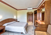Camere 213 camere: - Standard (max. 2+1, Garden View la parter). - Side Sea View la etaj. - Dotari: aer conditionat individual, telefon, balcon/terasa, baie (dus/WC), uscator de par, frigider, TV satelit. - Contra cost: seif.