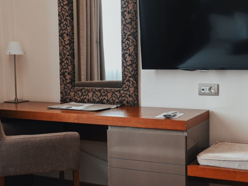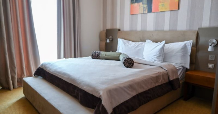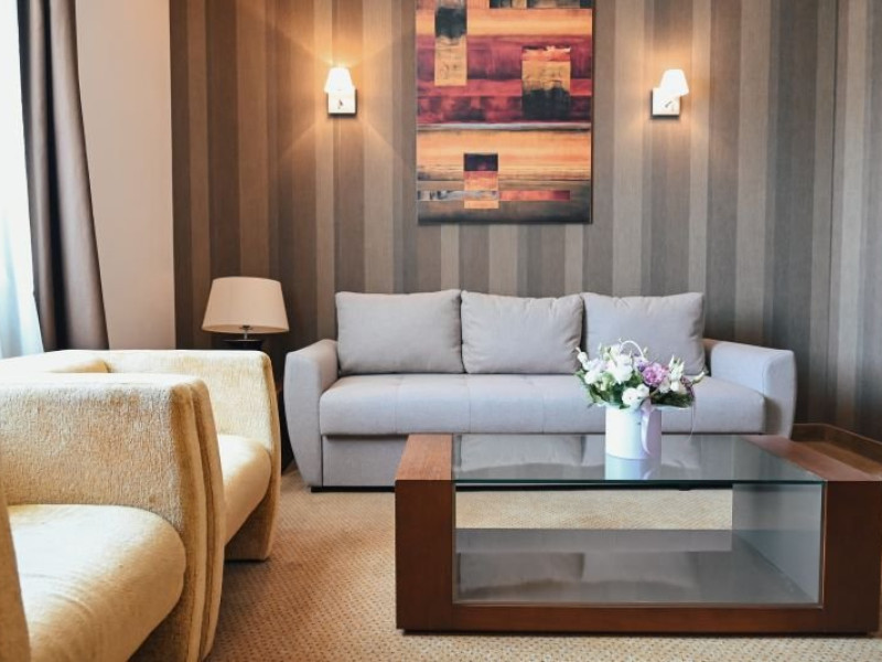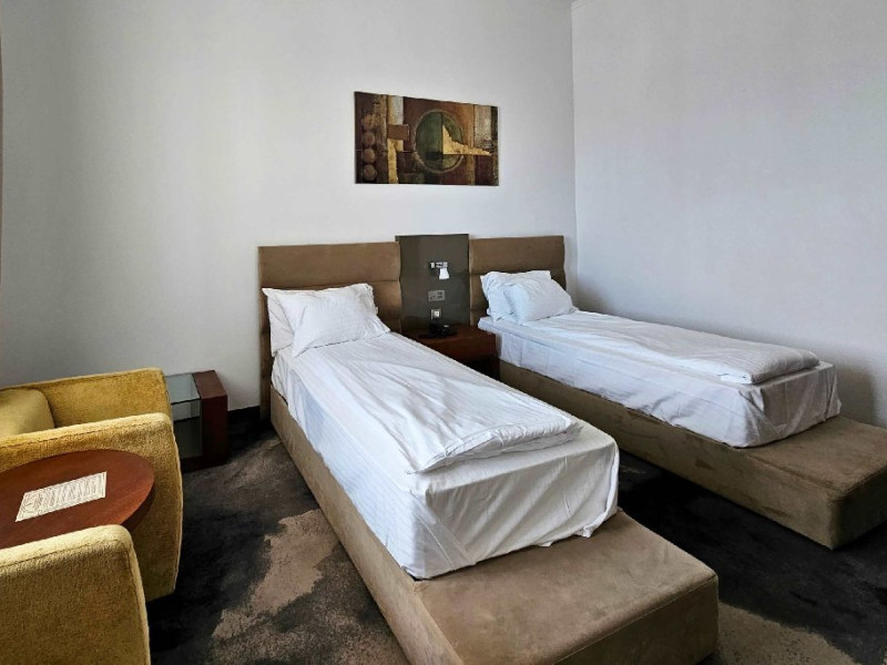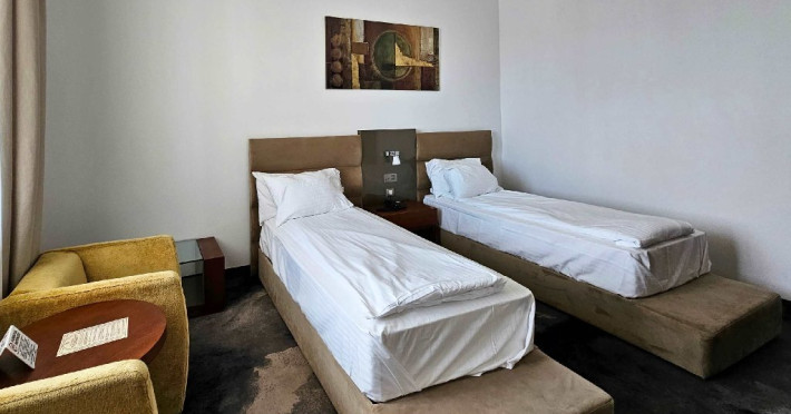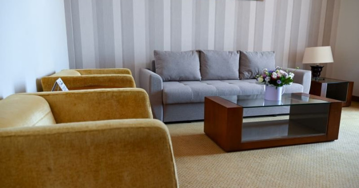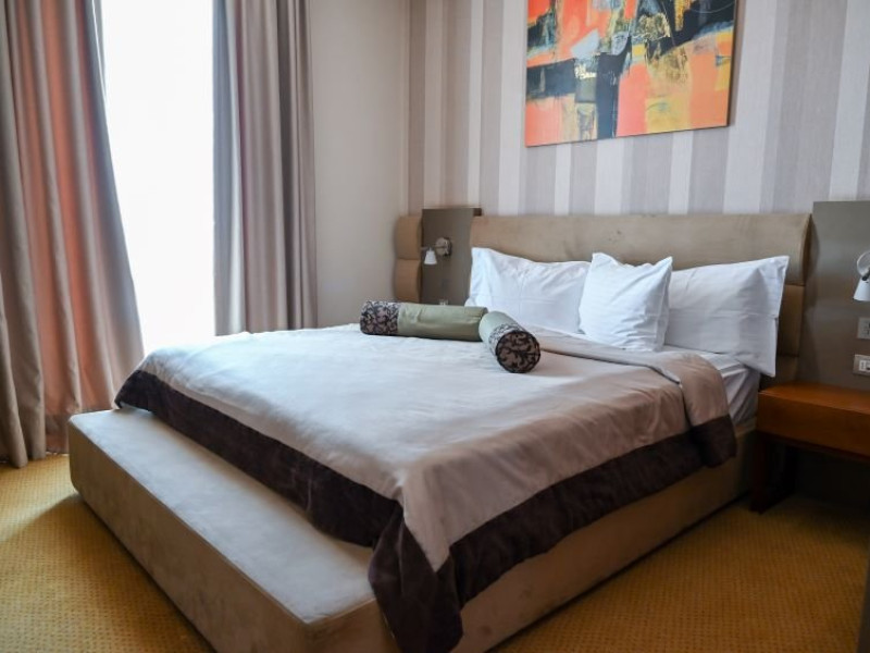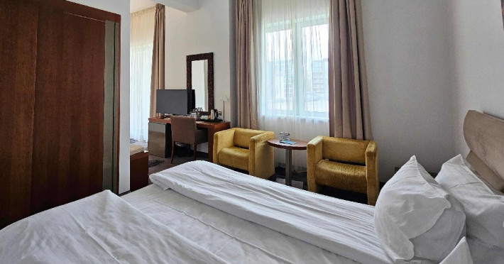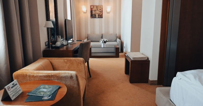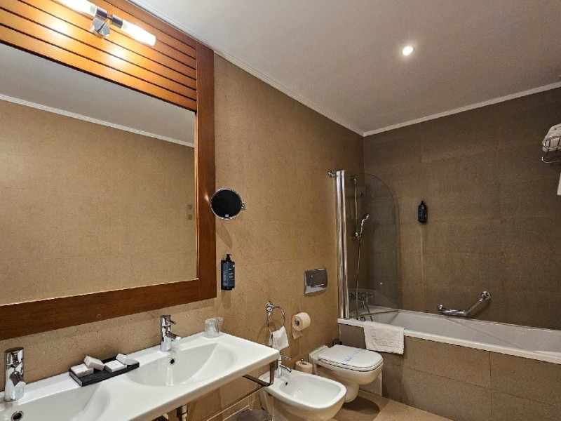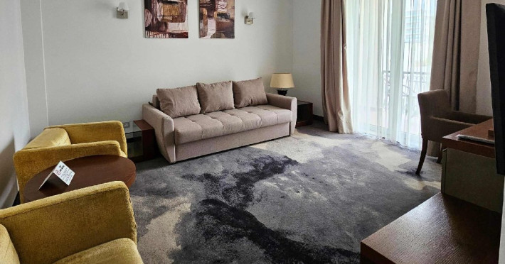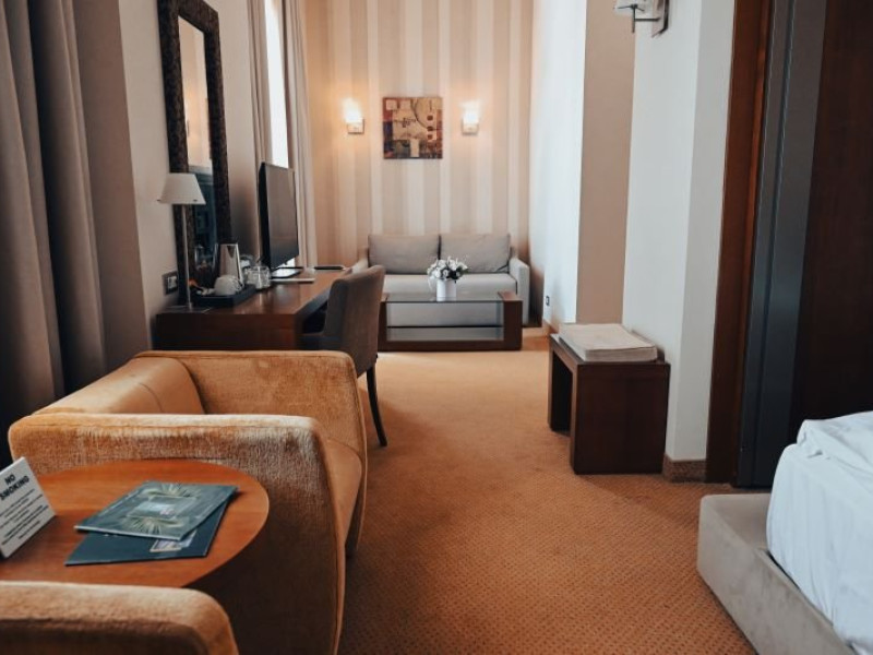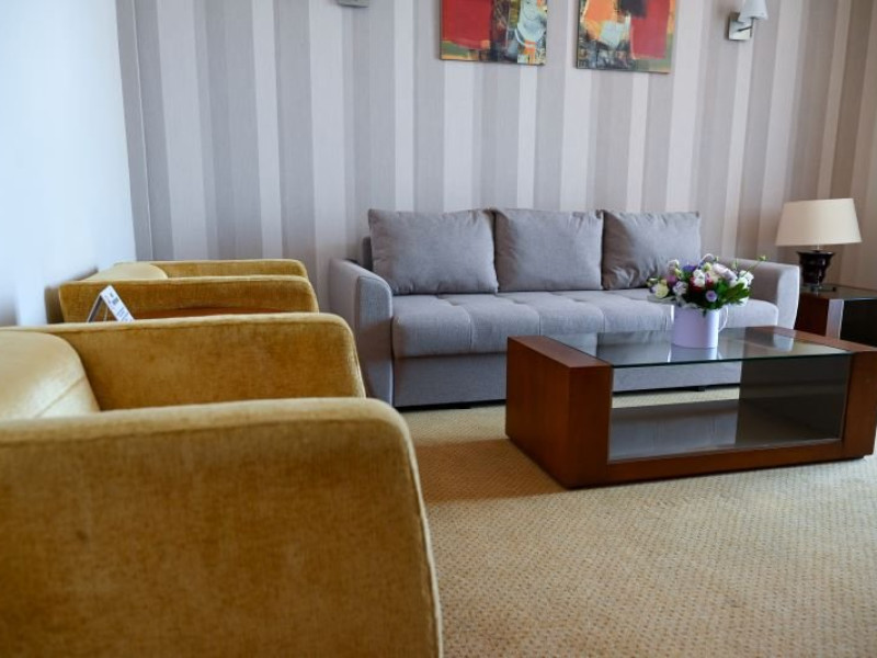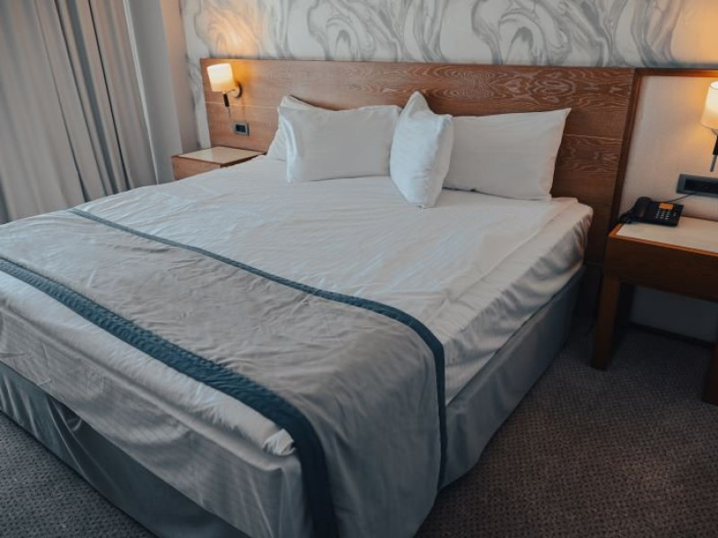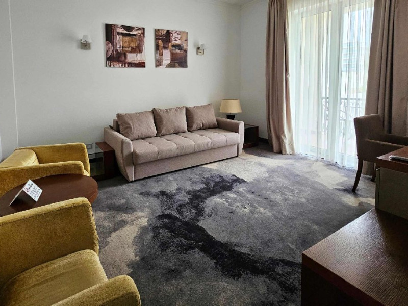 DOTARI CAMERE: Toate camerele au aer conditionat, TV, minibar, seif, baie cu dus, internet, uscator par, telefon. Camerele duble standard cu paturi twin sau matrimonial - Suprafata - 27 mp Camere duble superioare cu 2 paturi(se pot uni), canapea extensibila, hol mic cu fotolii si masuta - Suprafata - 29 mp Camere duble executive cu 2 paturi twin (se pot uni), canapea extensibila,nu au vedere la mare. Apartamente standard cu 2 paturi twin (se pot uni) si living cu canapea extensibila, cu usa la dormitor. Apartamentele cu vedere mare au in dotare un pat matrimonial - Suprafata - 42 mp Apartamente superioare - sunt formate din dormitor cu pat matrimonial si living cu canapea extensibila, hol - Suprafata - 48 mp. Nu au vedere frontala la mare. Apartamente executive cu paturi matrimoniale si canapea extensibila, cu usa la dormitor si terasa.Nu au vedere la mare - Suprafata 39 mp + terasa 35 mp Apartamente prezidentiale au 2 dormitoare (unul cu paturi twin si unul cu pat matrimonial) living cu canapea extensibila si 2 bai.
