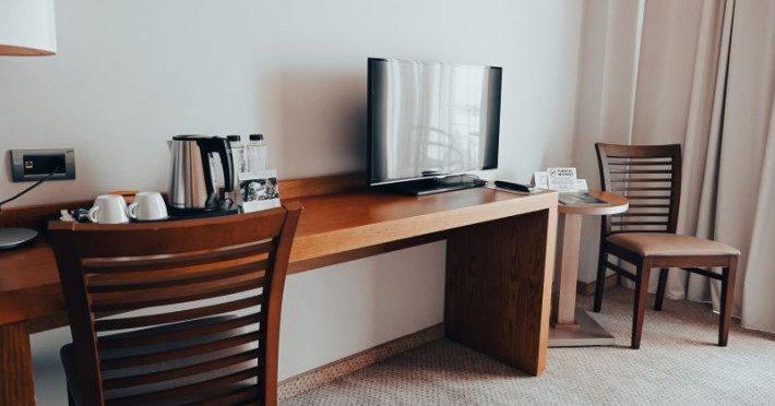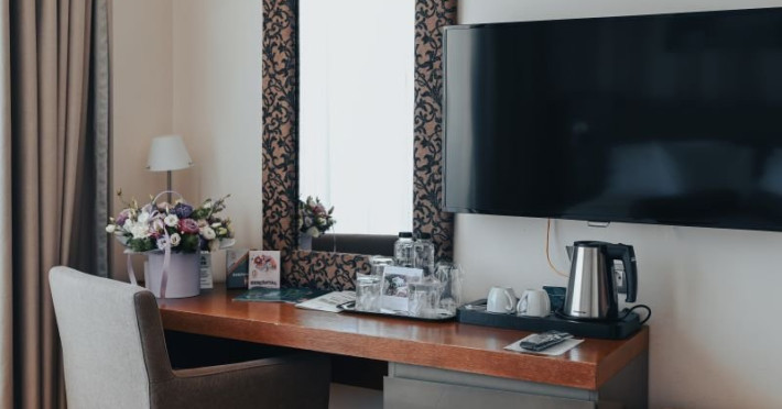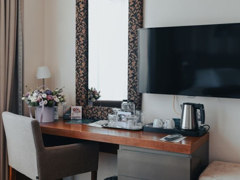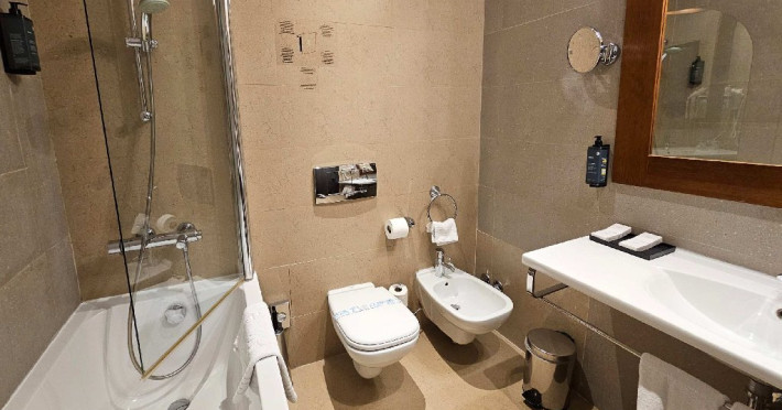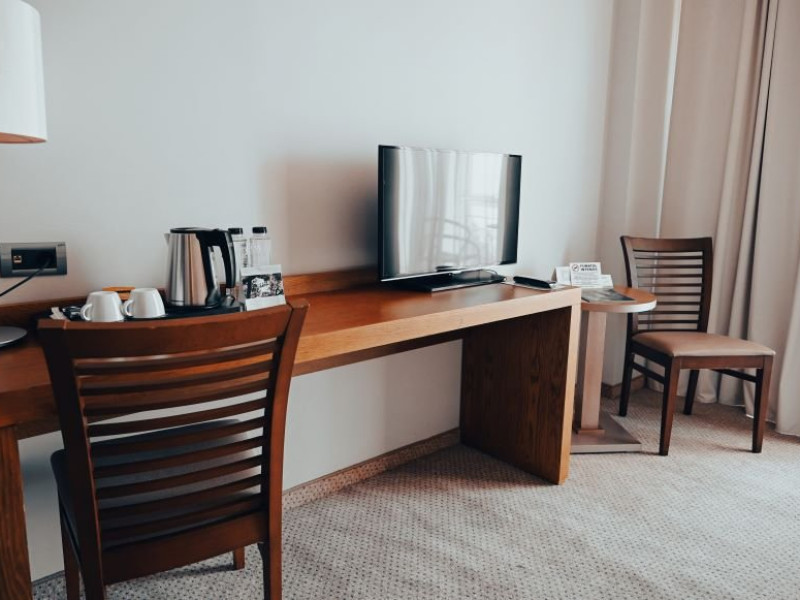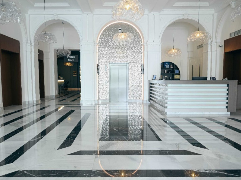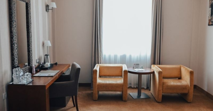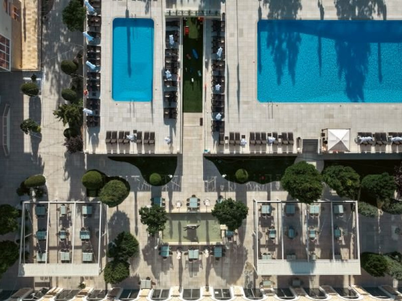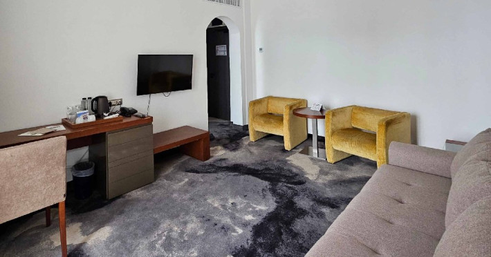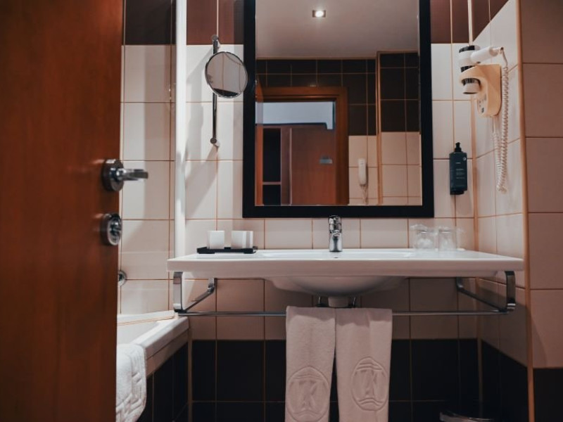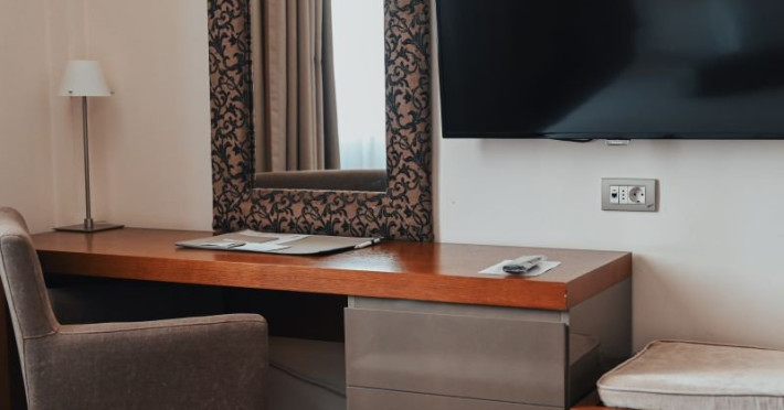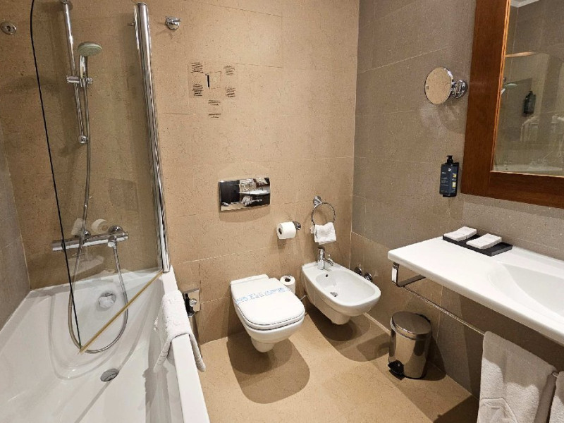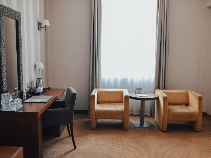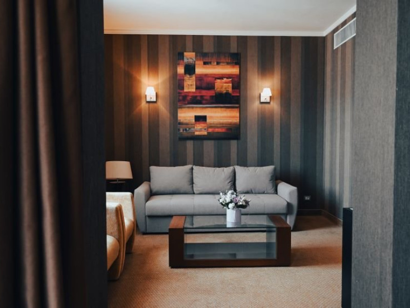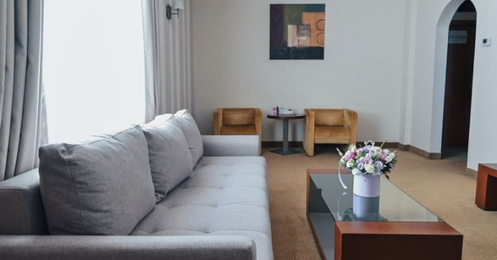 DOTARI CAMERE: Toate camerele au aer conditionat, TV, minibar, seif, baie cu dus, internet, uscator par, telefon. Camerele duble standard cu paturi twin sau matrimonial - Suprafata - 27 mp Camere duble superioare cu 2 paturi(se pot uni), canapea extensibila, hol mic cu fotolii si masuta - Suprafata - 29 mp Camere duble executive cu 2 paturi twin (se pot uni), canapea extensibila,nu au vedere la mare. Apartamente standard cu 2 paturi twin (se pot uni) si living cu canapea extensibila, cu usa la dormitor. Apartamentele cu vedere mare au in dotare un pat matrimonial - Suprafata - 42 mp Apartamente superioare - sunt formate din dormitor cu pat matrimonial si living cu canapea extensibila, hol - Suprafata - 48 mp. Nu au vedere frontala la mare. Apartamente executive cu paturi matrimoniale si canapea extensibila, cu usa la dormitor si terasa.Nu au vedere la mare - Suprafata 39 mp + terasa 35 mp Apartamente prezidentiale au 2 dormitoare (unul cu paturi twin si unul cu pat matrimonial) living cu canapea extensibila si 2 bai.