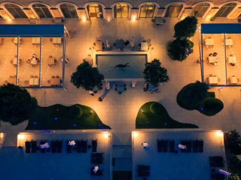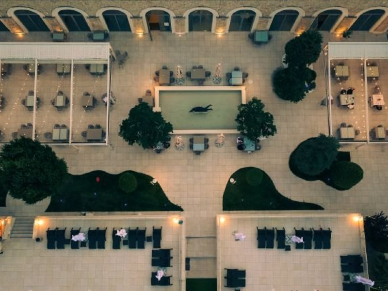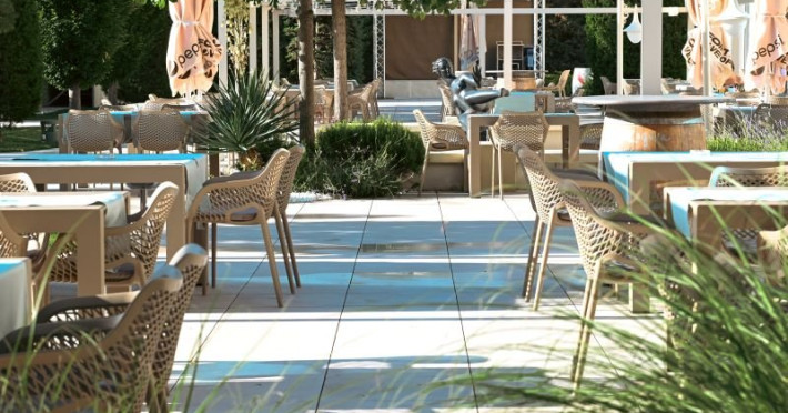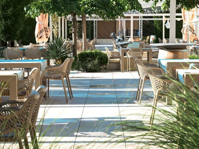 MASA: Restaurant propriu 4*. Mic dejun - bufet suedez; Demipensiune - mic dejun bufet suedez + pranz; Pensiune completa - mic dejun bufet suedez + pranz + cina. Pranzul si cina pot fi servite in sistem serviciu la farfurie sau bufet (pentru minim 30 persoane). Bauturi incluse la bufet: mic dejun (apa, sucuri, cafea espresso), pranz (apa, sucuri), cina(apa). Demipensiunea/ Pensiunea completa se serveste in interiorul celor doua restaurante, terasa restaurantului fiind destinata doar clientilor a la carte.