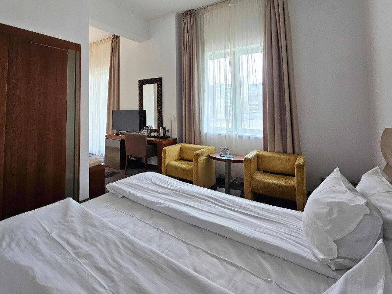 DOTARI SI SERVICII: Hotelul Iaki detine un total de 122 de camere, dintre care 84 sunt camere duble si 38 sunt apartamente. In perioada 2024-2025, o parte a hotelului a intrat intr-un amplu proces de renovare, avand ca scop modernizarea facilitatilor si cresterea nivelului de confort oferit oaspetilor. Imbunatatirile includ: Aripa istorica (etajele 1-3): inlocuirea mochetei, a usilor (interioare si exterioare) si modernizarea tamplariei ferestrelor cu sisteme din aluminiu cu geam tripan si protectie UV pentru izolare fonic si confort termic superior. De asemenea, sistemul de acces in camere si ventilatia au fost actualizate. Piscinele exterioare: renovate in 2024, sunt dotate cu un sistem de filtrare si incalzire a apei (Mai-Septembrie, min. 15C), fiind concepute pentru intreaga familie, cu zone separate pentru adulti si copii, dusuri si pool bar. Hotelul dispune de trei restaurante elegante: Restaurant Ballroom (200 locuri): bucatarie internationala a la carte, cu acces la terasa. Restaurant Casino (150 locuri): dedicat evenimentelor private (nunti, botezuri, corporate), cu meniuri personalizate. Restaurant Coriolis (120 locuri): ideal pentru mic dejun, pranz si cina, oferind preparate internationale si locale. Centru de conferinte: sala principala este modulara (50, 100 sau 150 locuri), iar recent au fost adaugate doua sali pentru intalniri private (Londra si Praga). Clientii hotelului beneficiaza de gratuitate la sezlongurile de pe plaja precum si la cele de la piscina. Prosoapele pentru plaja/piscina se acorda in schimbul unui card special - achizitionat de la receptie in baza unui depozit drept garantie (100 lei/ card). Supliment vedere la mare: 92 lei inperioada (04.05 - 04.06. 24.08- 01.10.2026) si 147 lei/ camera/ noapte (05.06 - 23.08.2026); Accesul copiilor la piscina se face doar sub supravegherea unui adult, iar la sala de fitness accesul acestora este permis dupa varsta de 17 ani. Sejururile cu pensiune completainclud si accesul gratuit la Spa Center, pentru celelalte oferte cu masaaccesul Spa este contra cost, 85 lei/persoana/zi, copii 3-5.99 (GRATUIT) si 57 lei/copil/zi (6-12.99 ani), doar pentru clientii cazati in hotel. Parcare gratuita in limita locurilor disponibile.Nu pot fi rezervate locuri de parcare, la iesirea din parcarea hotelului, oricand pe durata sejurului, locul de parcare nu poate fi retinut, la intoarcere accesul fiind posibil numai daca mai exista disponibilitate.Hotelul are o statie de incarcare a masinilor electrice EnelX. Hotelul nu accepta animale de companie. In perioada 27.06-12.07.2026 (inclusiv) - Centrul Spa va fi inchis pentru mentenanta anuala. Oaspetii sunt obligati sa prezinte la check-in un card de credit valid pentru garantare, hotelul isi rezerva dreptul de a preautoriza suma aferenta cazarii sau minibaruui (500 lei). Check in de la ora 16:00, iar check out pana in ora 12:00