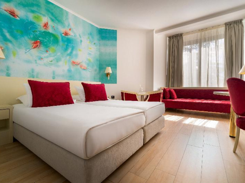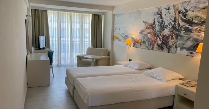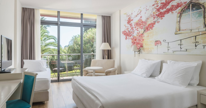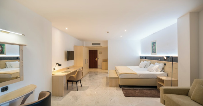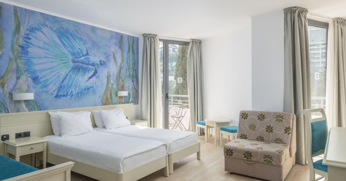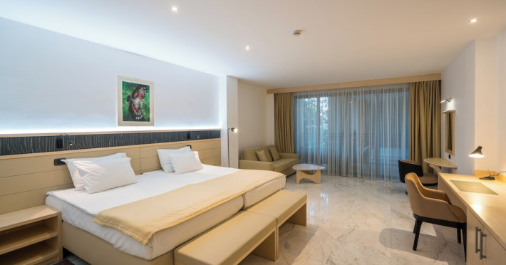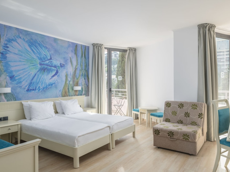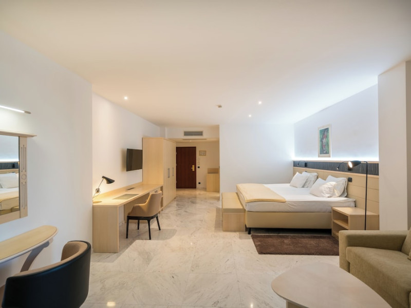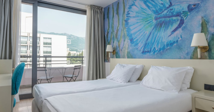 Located on the beach in Bečići, Iberostar Bellevue offers an all-inclusive experience within a 15-minute walk of Becici Beach and Aqua Park Mediteran. This hotel features 583 air-conditioned rooms, each with a balcony and satellite television. Guests can enjoy local cuisine at one of the 3 restaurants and relax with a drink at the poolside bar or one of the 6 bars/lounges. The hotel boasts 3 outdoor swimming pools, a spa offering massages, a sauna, and a fitness center. Complimentary wireless internet access is available. Additional amenities include a 24-hour front desk, multilingual staff, an ATM, laundry facilities, and a banquet hall. Free self-parking is available onsite. The nearest airports are Tivat (TIV) and Podgorica (TGD), with Podgorica being the preferred airport. The Iberostar Waves Bellevue is a Tourist hotel. The nightlife/restaurants are located in the hotel.