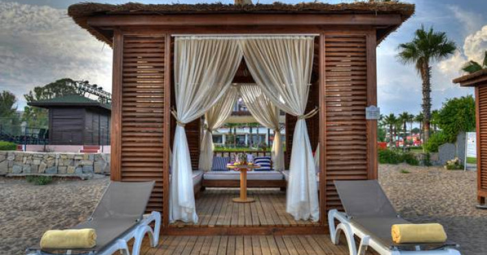 Hotelul este situat la 30 km de aeroportul Antalya, la 40 km de centrul orasului Antalya, la 6 km de localitatea Kadriye, pe malul marii. Construit in anul 1995, suprafata totala - 94 240 mp, ultima renovare a avut loc in anul 2012.