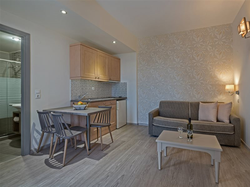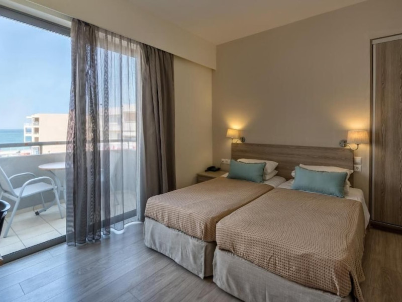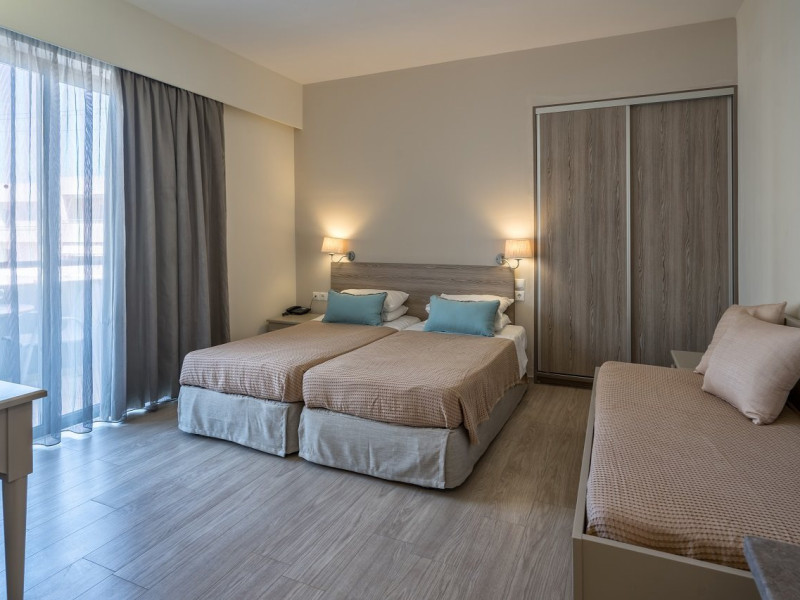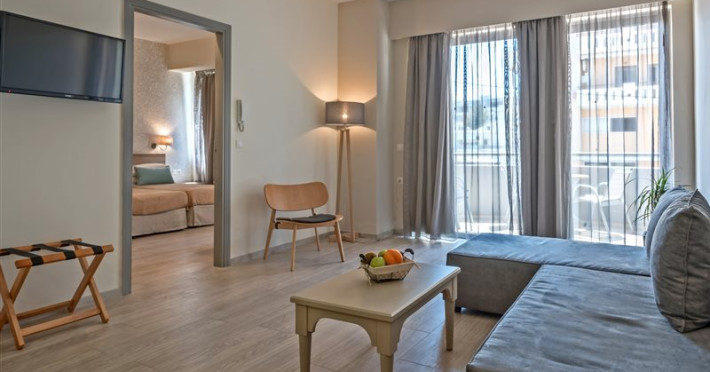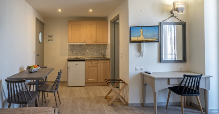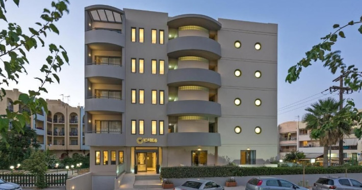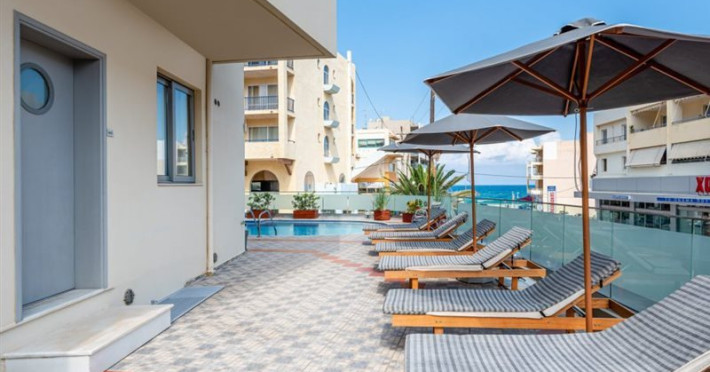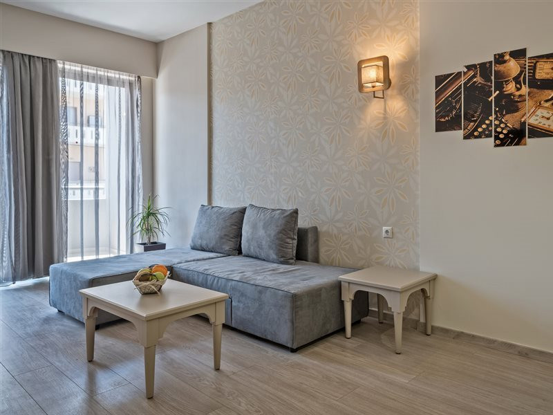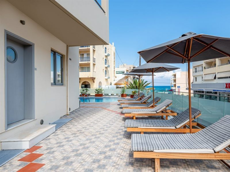 Services and amenities include 24 hour reception, bar, restaurant, car parking, air conditioning, Wi-Fi, elevator, gym/fitness facilities, swimming pool and children's pool. The studios feature air conditioning, Wi-Fi, safe (extra charge), TV, telephone, hairdryer, kitchenette, fridge, coffee/tea maker, mini bar and balcony/terrace. Address : 28 Oktovriou and Eleftherias street, 74100, Rethymno, Greece.