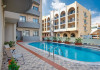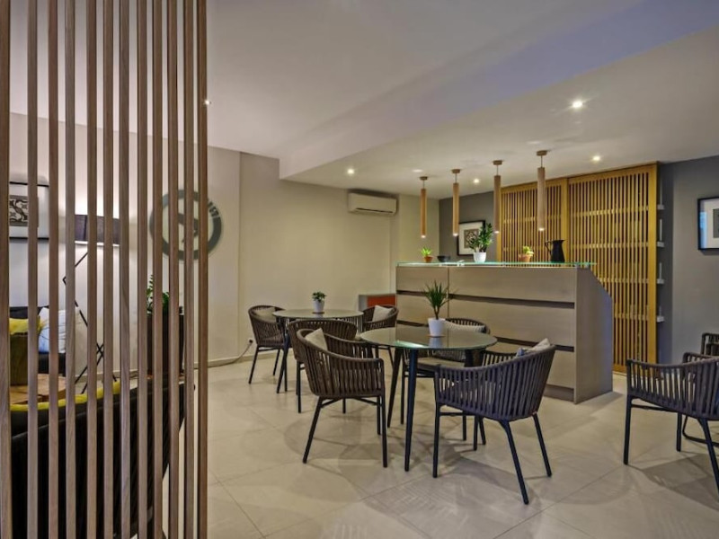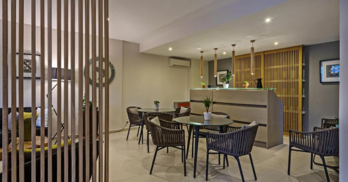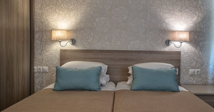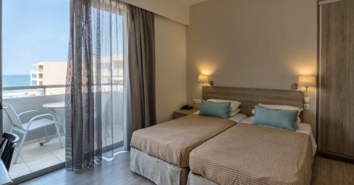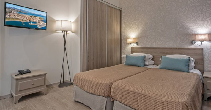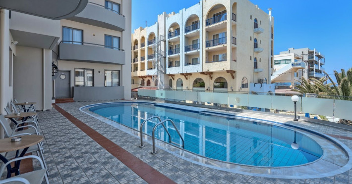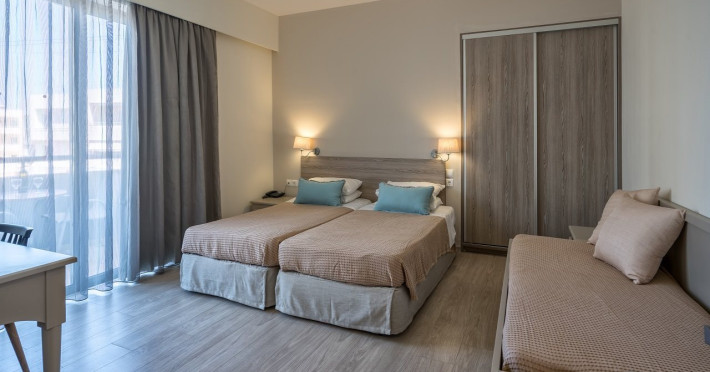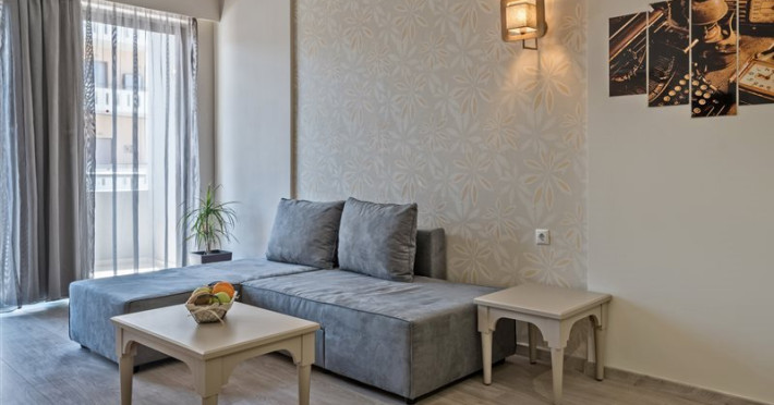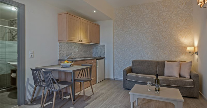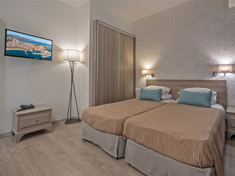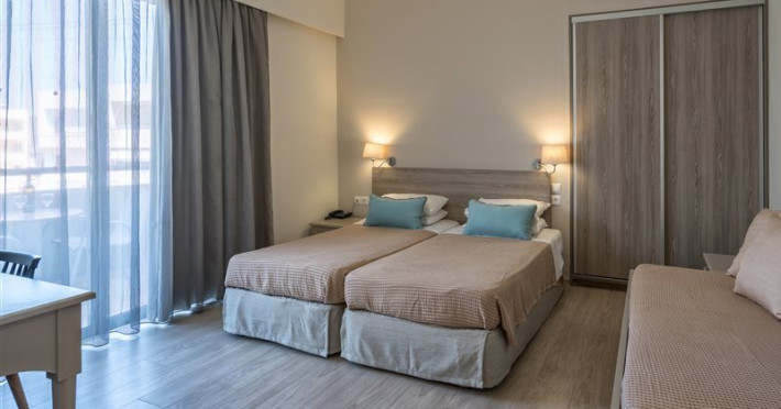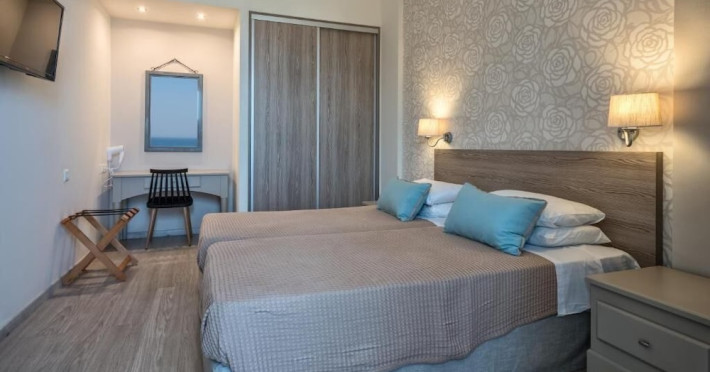 Services and amenities include 24 hour reception, bar, restaurant, car parking, air conditioning, Wi-Fi, elevator, gym/fitness facilities, swimming pool and children's pool. The studios feature air conditioning, Wi-Fi, safe (extra charge), TV, telephone, hairdryer, kitchenette, fridge, coffee/tea maker, mini bar and balcony/terrace. Address : 28 Oktovriou and Eleftherias street, 74100, Rethymno, Greece.
