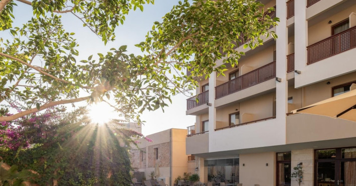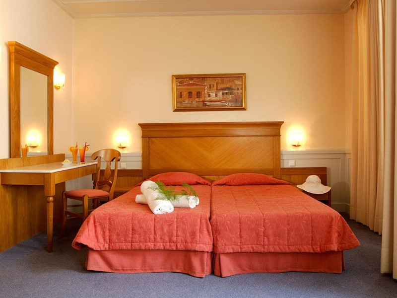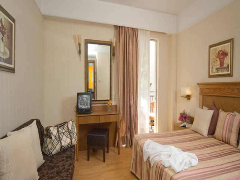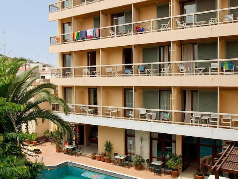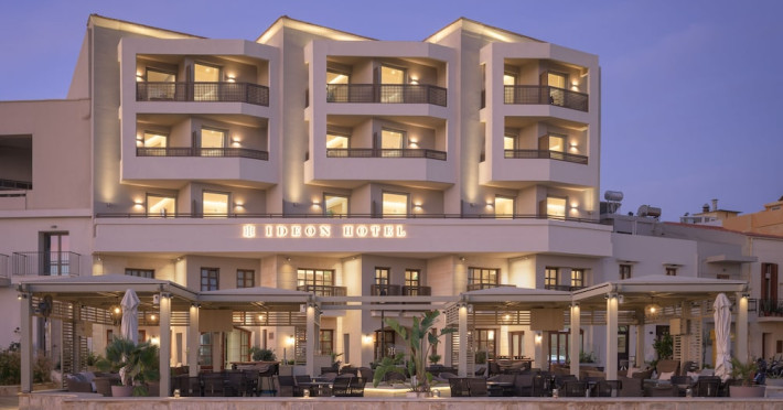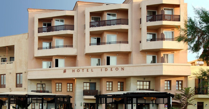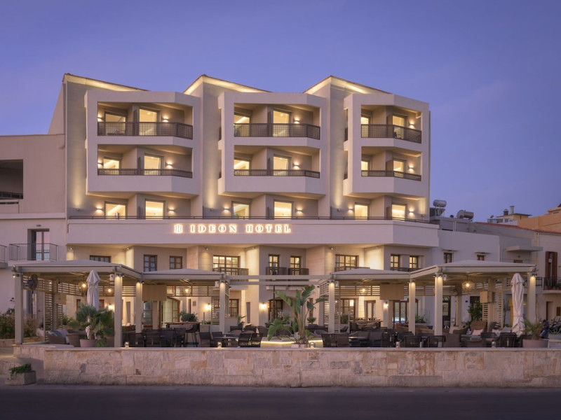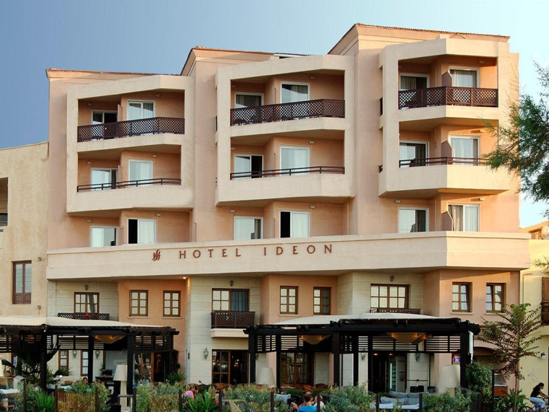 The hotel Ideon is located close to the centre of the old town, just across the road from the city port and within easy reach of the commercial and cosmopolitan centre. All famous tourist attractions, including the old Turkish Venetian town and the Venetian port, monuments and the magnificent fortress are near the hotel. The hotel facilities includes reception, conference room, restaurant, bar and lounge, cafeteria with terrace, outdoor pool surrounded by a nice garden and snack bar. The rooms are equipped with bathroom with bathtub or/and shower, A/C, safe (both with extra charge), telephone and balcony or terrace.**Air conditioning is working from June to September with extra charge.**Address: 10 N. Plastira Sq., Rethymno, Crete, Greece.