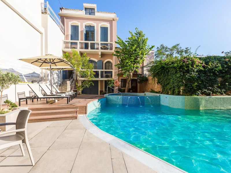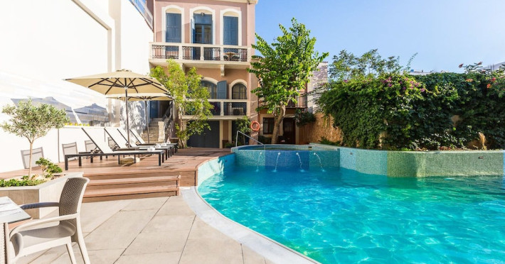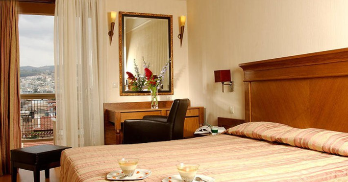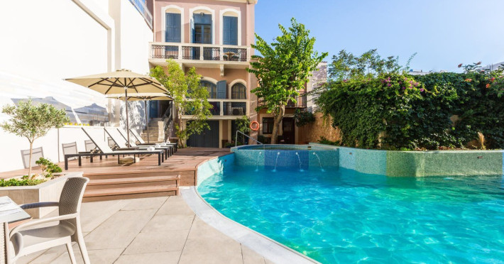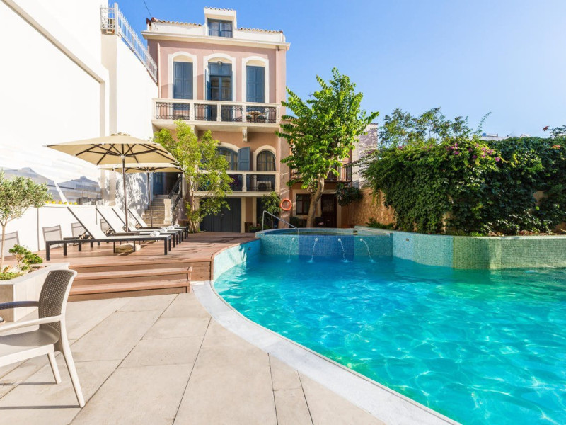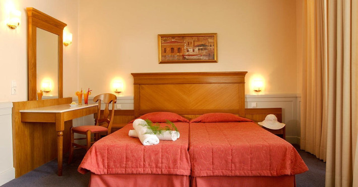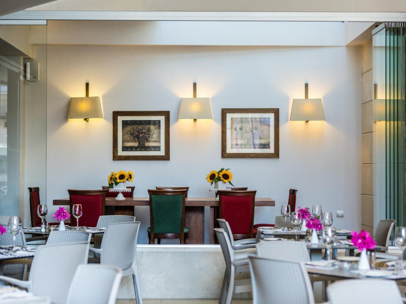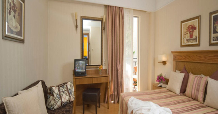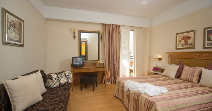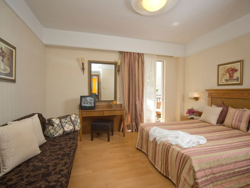 The hotel Ideon is located close to the centre of the old town, just across the road from the city port and within easy reach of the commercial and cosmopolitan centre. All famous tourist attractions, including the old Turkish Venetian town and the Venetian port, monuments and the magnificent fortress are near the hotel. The hotel facilities includes reception, conference room, restaurant, bar and lounge, cafeteria with terrace, outdoor pool surrounded by a nice garden and snack bar. The rooms are equipped with bathroom with bathtub or/and shower, A/C, safe (both with extra charge), telephone and balcony or terrace.**Air conditioning is working from June to September with extra charge.**Address: 10 N. Plastira Sq., Rethymno, Crete, Greece.